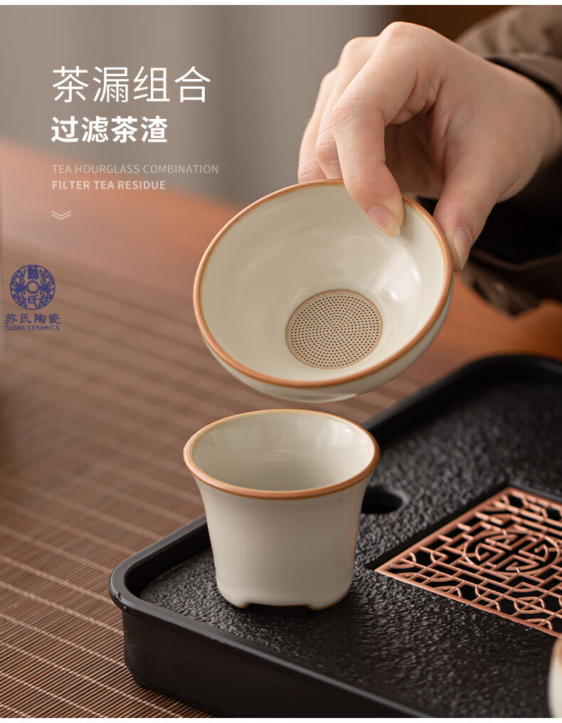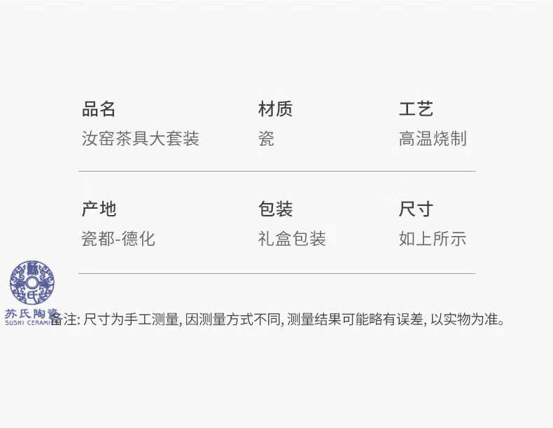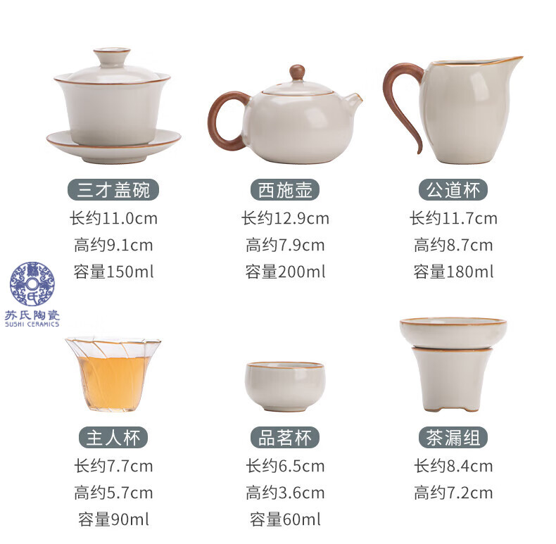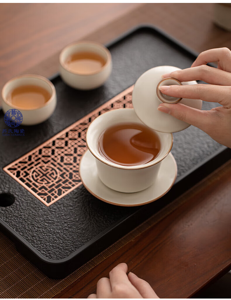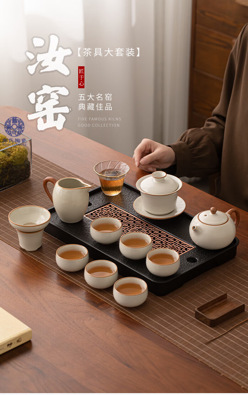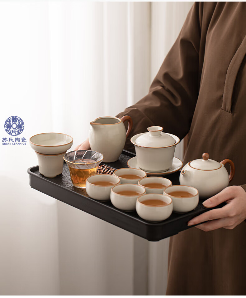 苏氏陶瓷(SUSHI CERAMICS)汝窑茶具套装家用办公礼品功夫茶具茶盘盖碗泡茶壶平价团购款