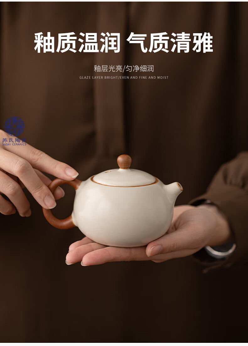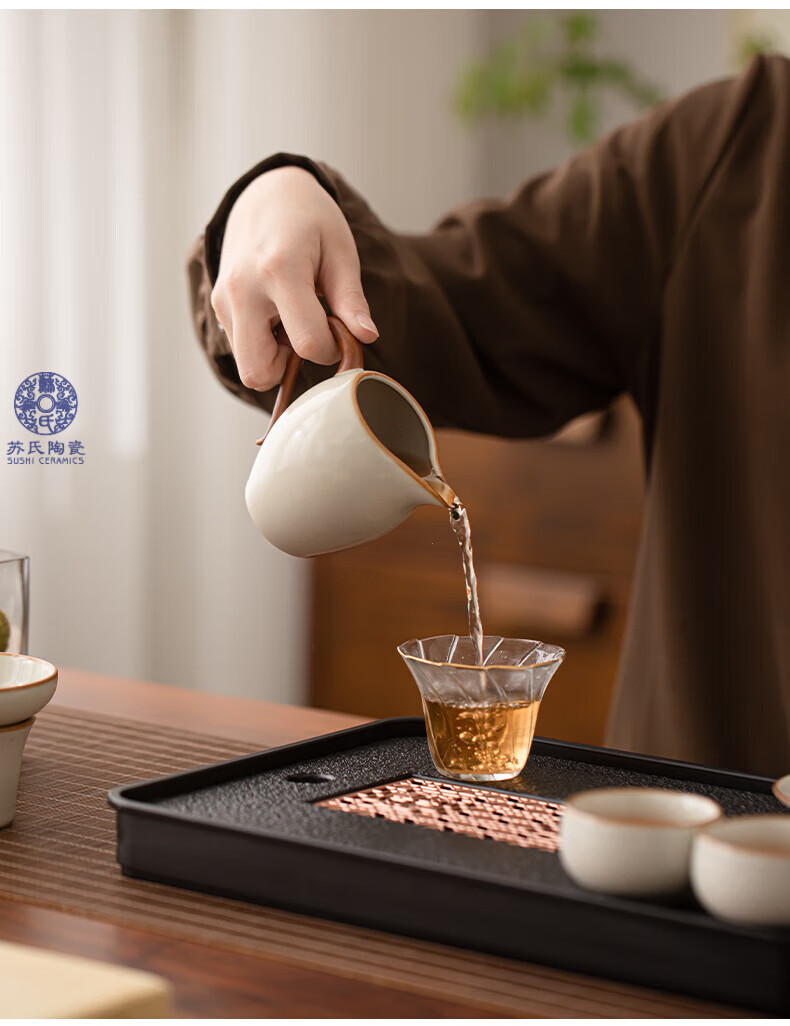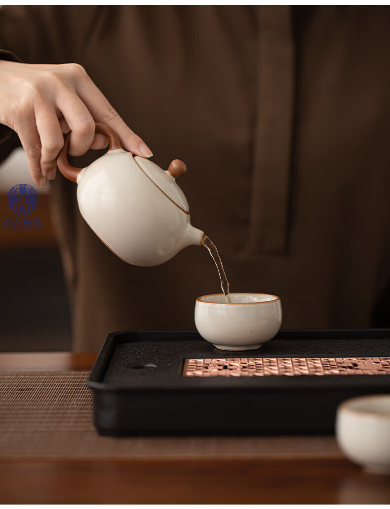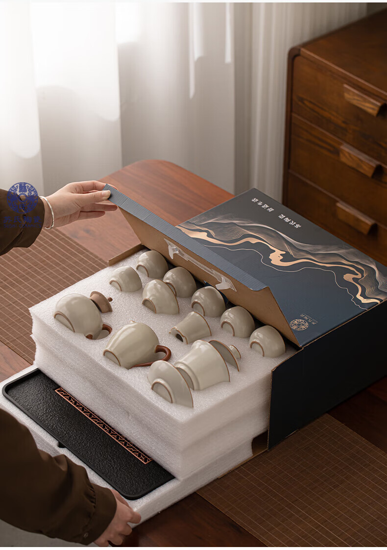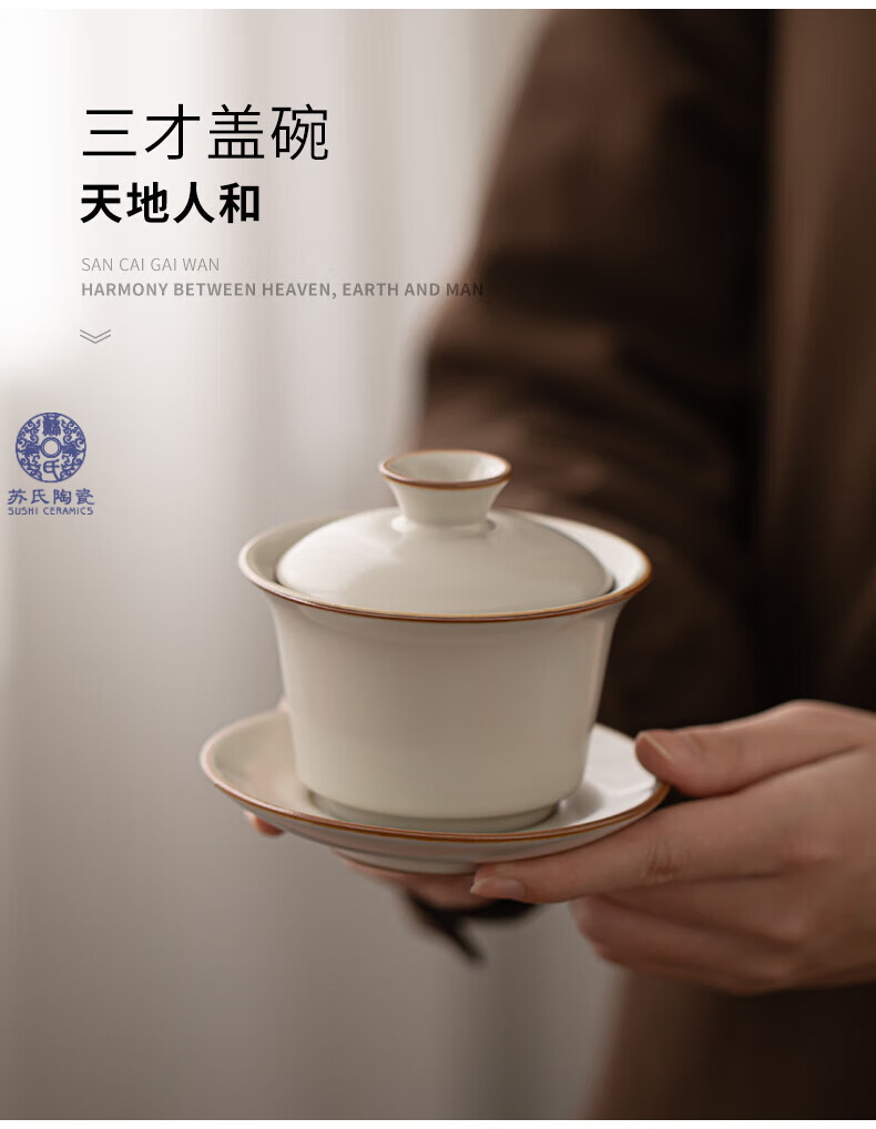 苏氏陶瓷(SUSHI CERAMICS)汝窑茶具套装家用办公礼品功夫茶具茶盘盖碗泡茶壶平价团购款