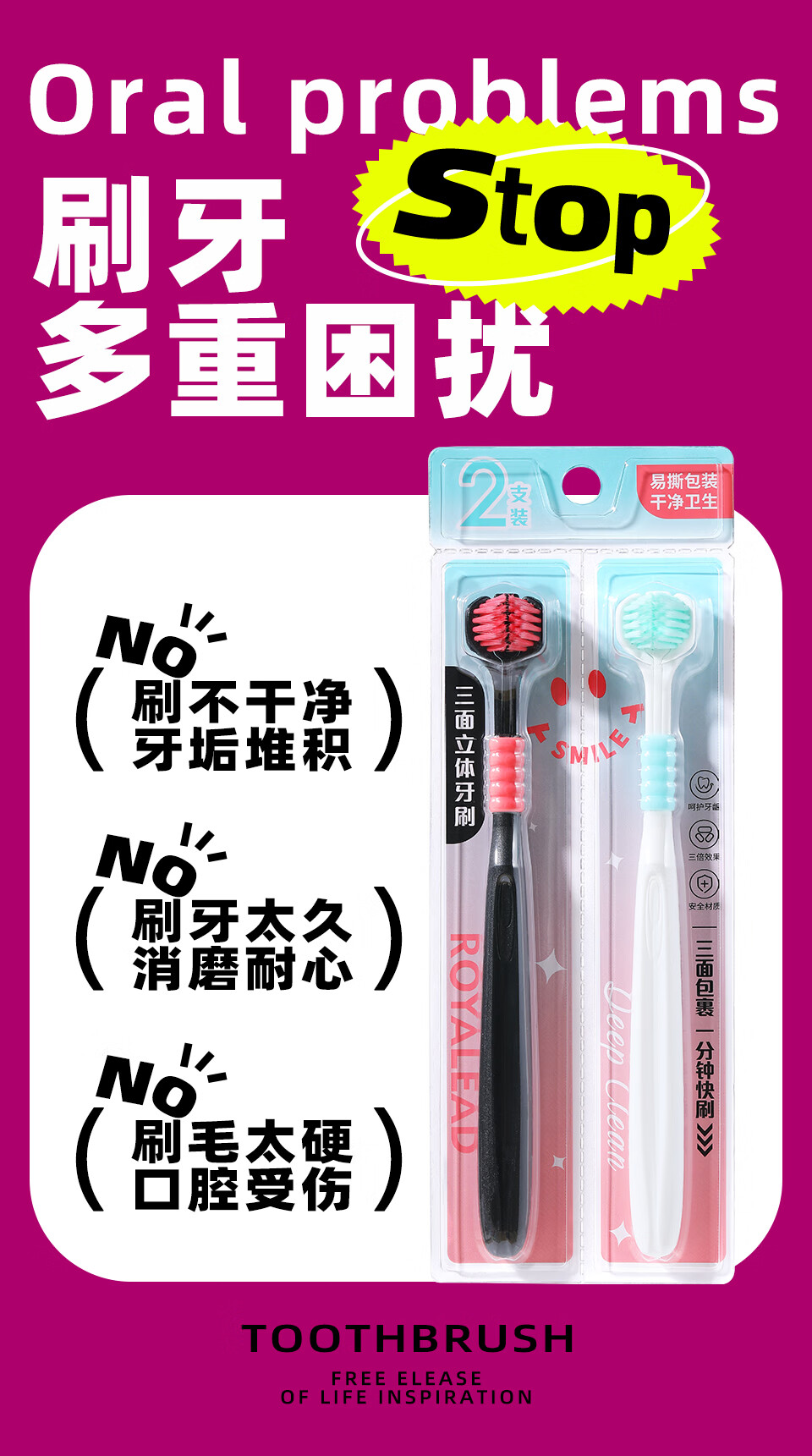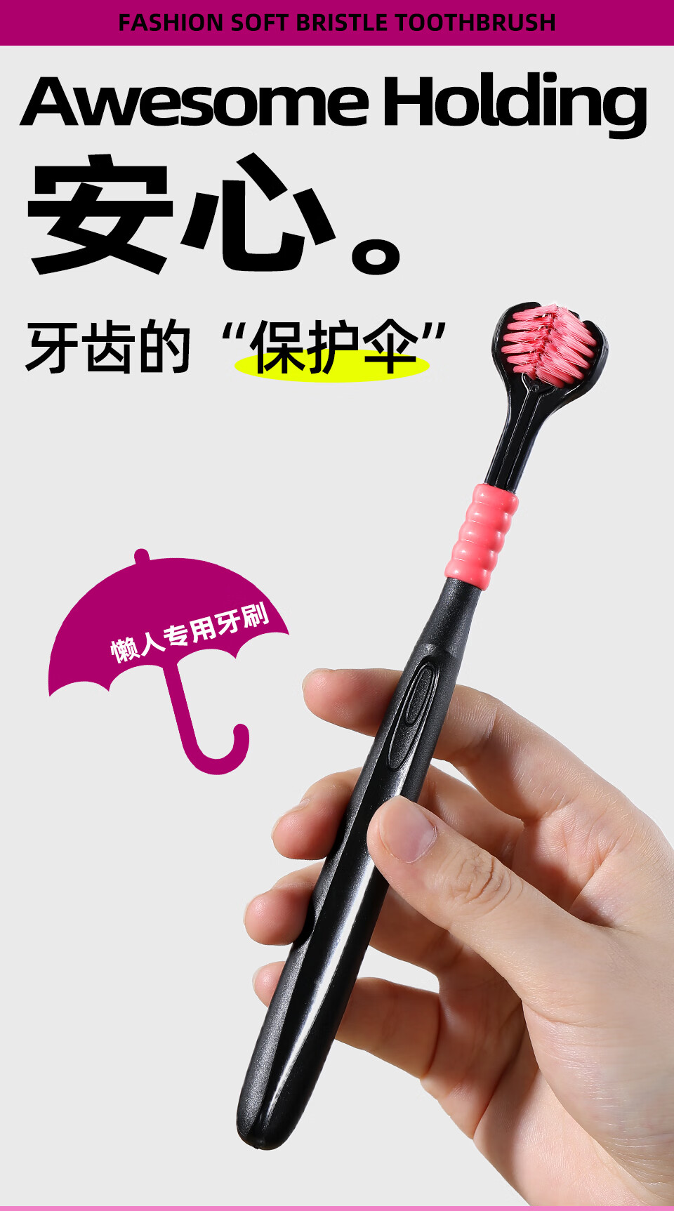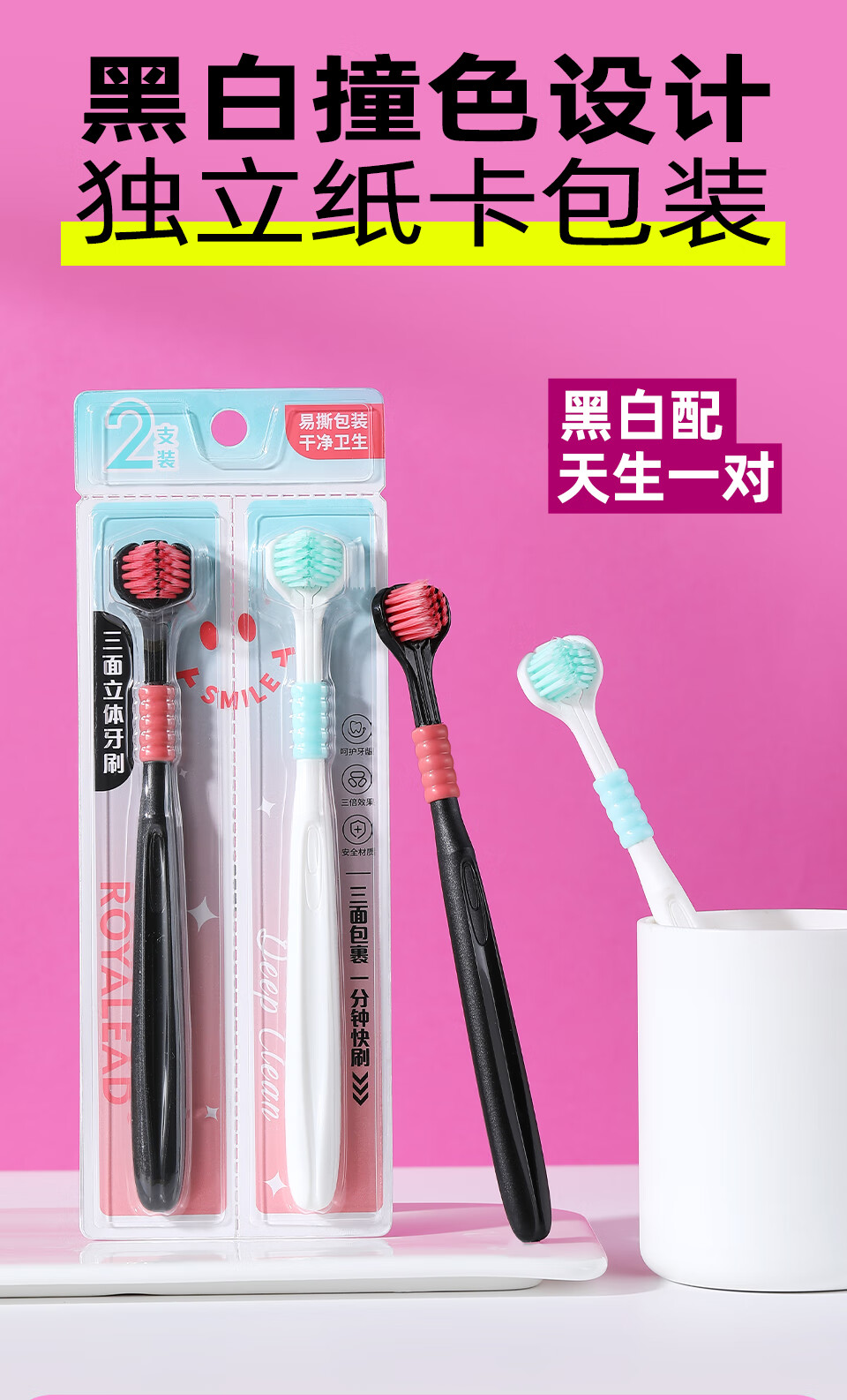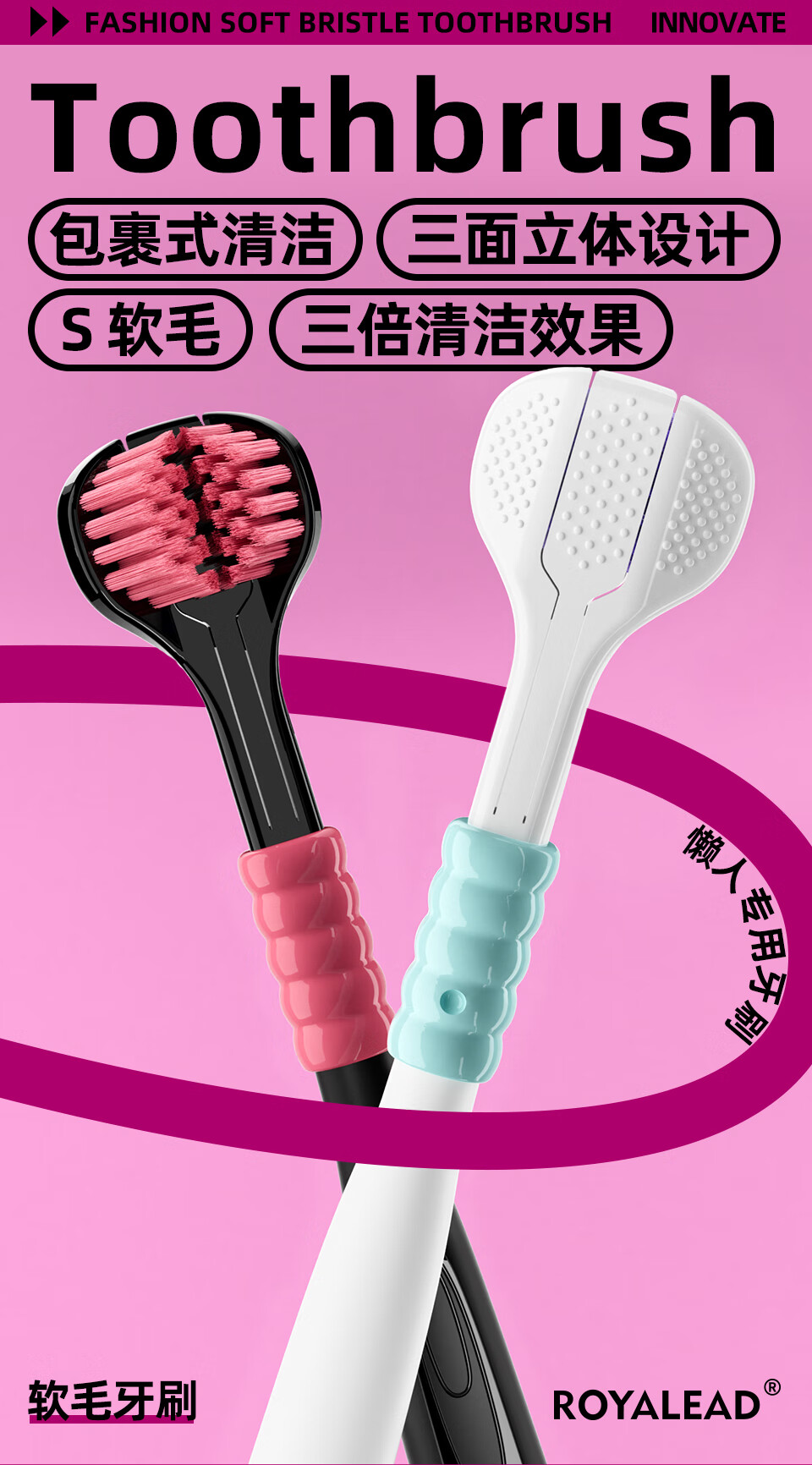 RAOYI三面牙刷软毛成人男女士专用护龈360°清洁包裹式牙刷2支