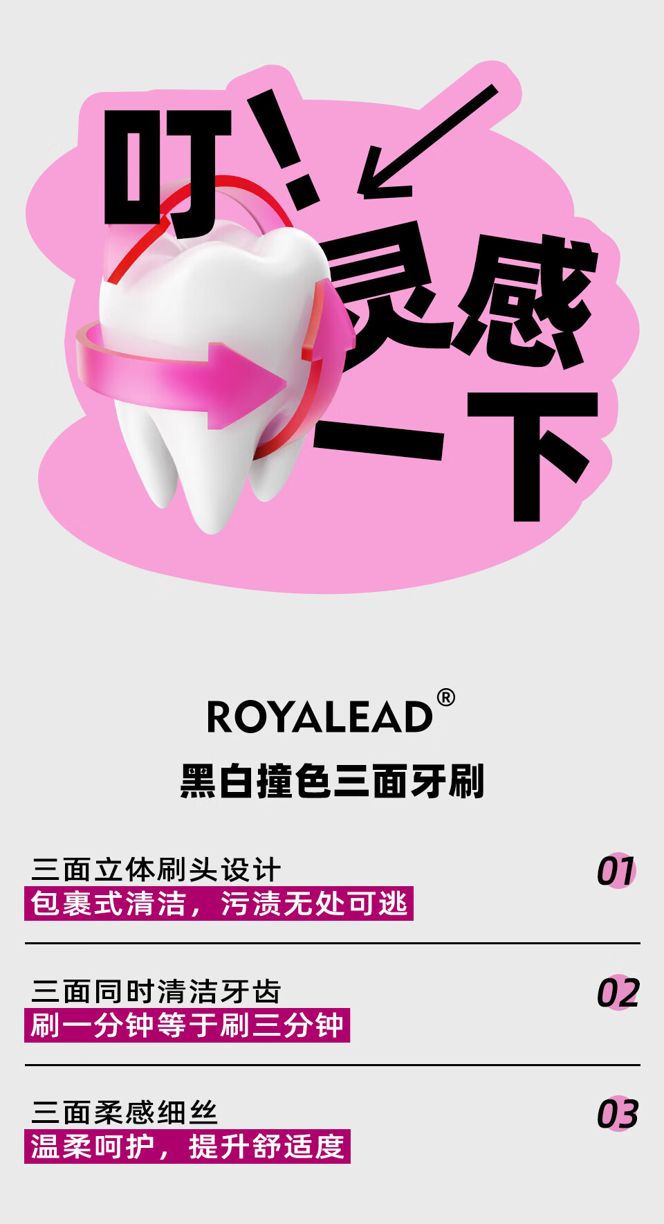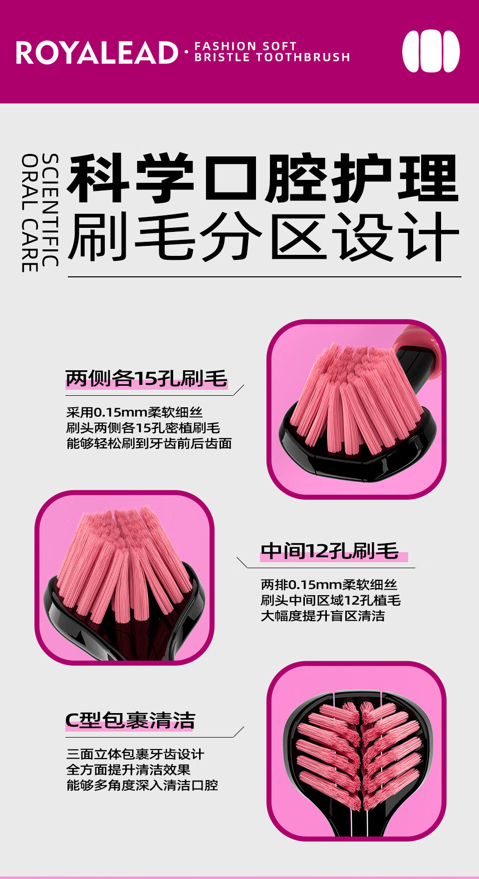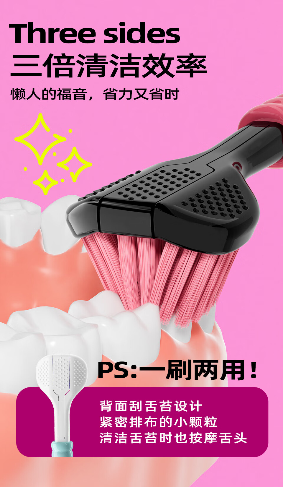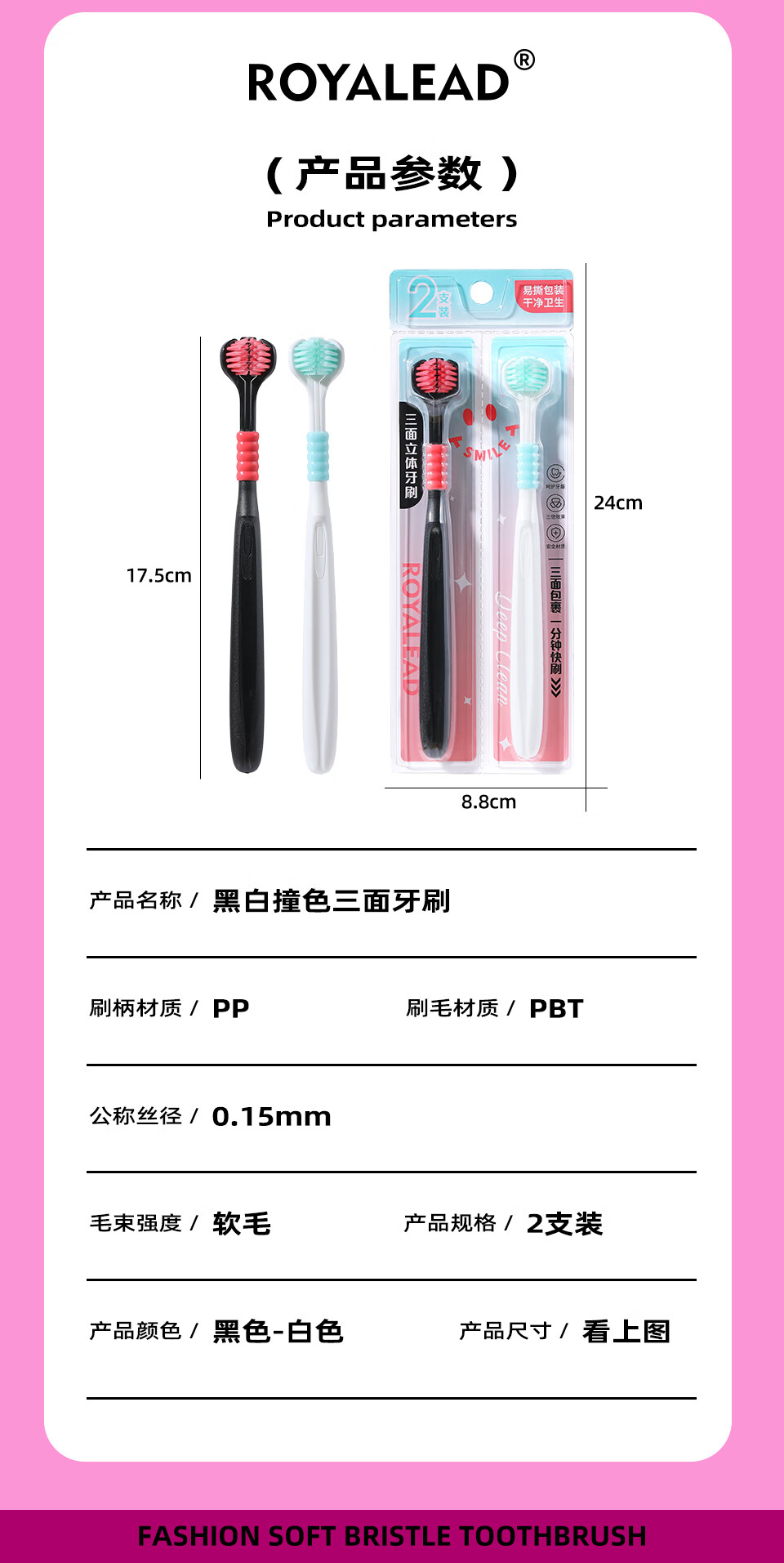 RAOYI三面牙刷软毛成人男女士专用护龈360°清洁包裹式牙刷2支