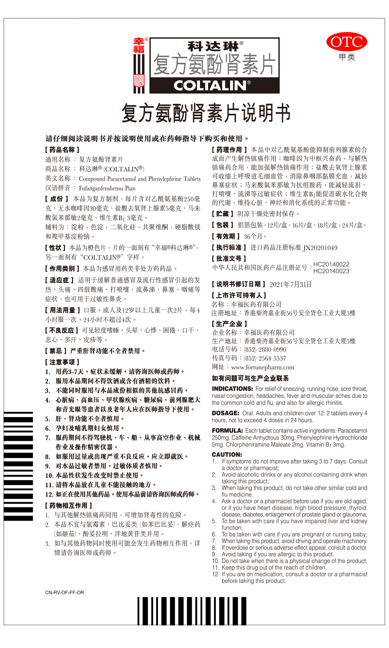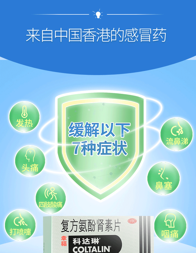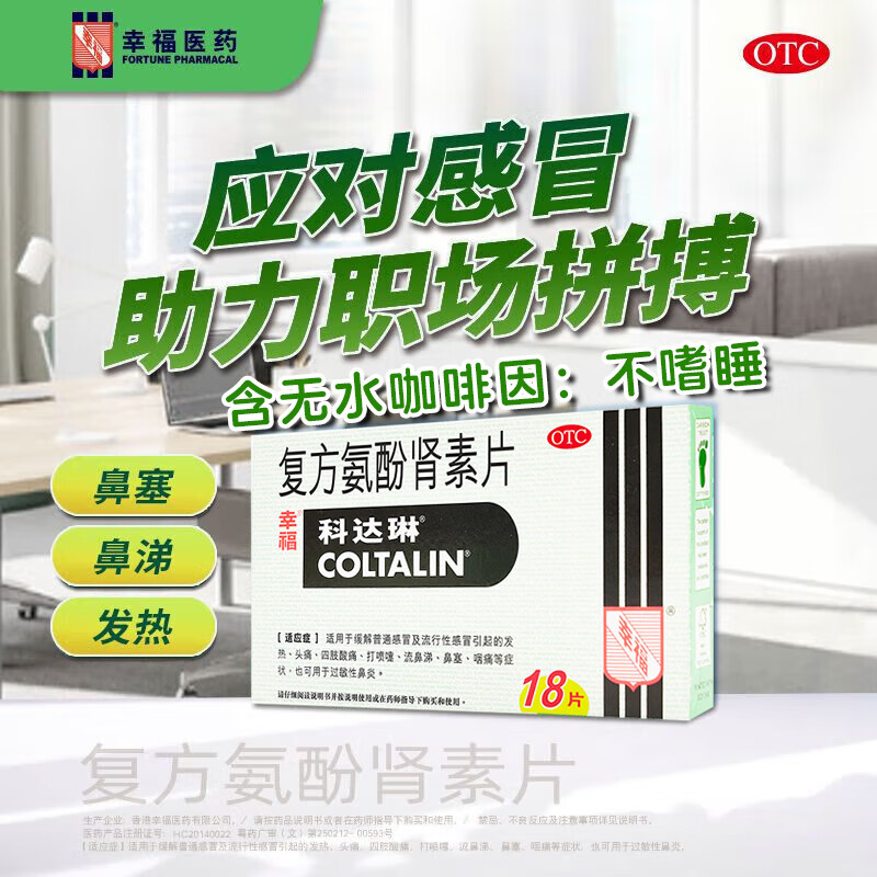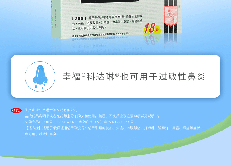 幸福科达琳[原研进口]幸福科达琳 复方氨酚肾素片18片 感冒咳嗽 过敏性鼻炎 幸福伤风素
