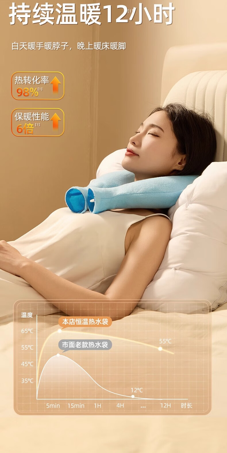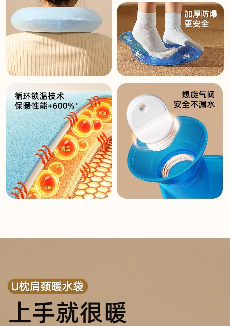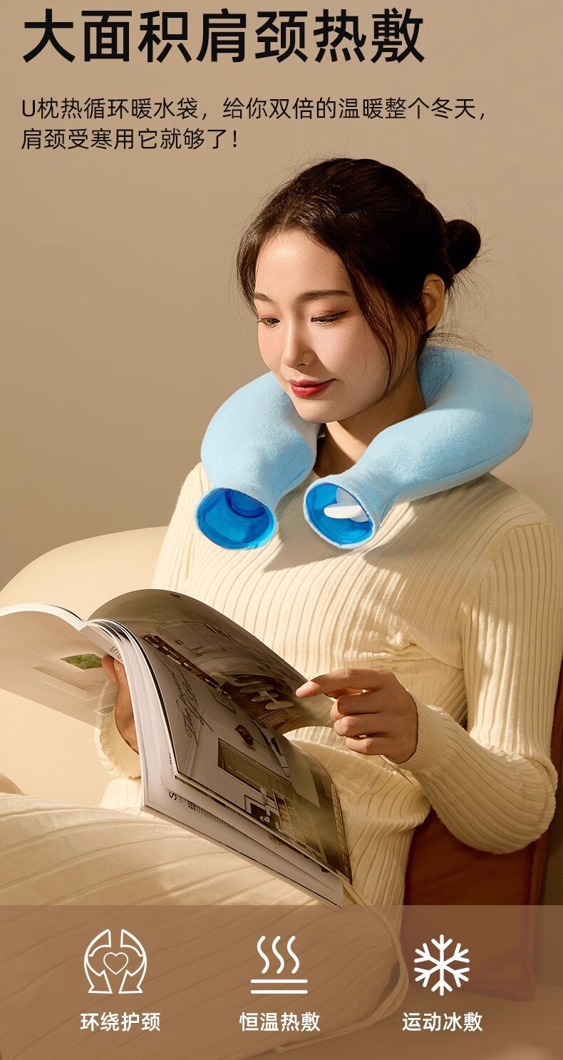 DEATKN德国u型枕注水式热水袋冲水暖水袋加厚热敷脖子颈椎颈部肩膀 热敷颈椎粉【1400毫升】+随机内胆