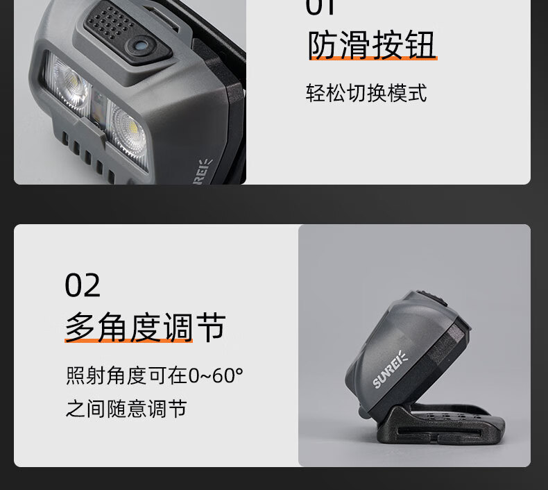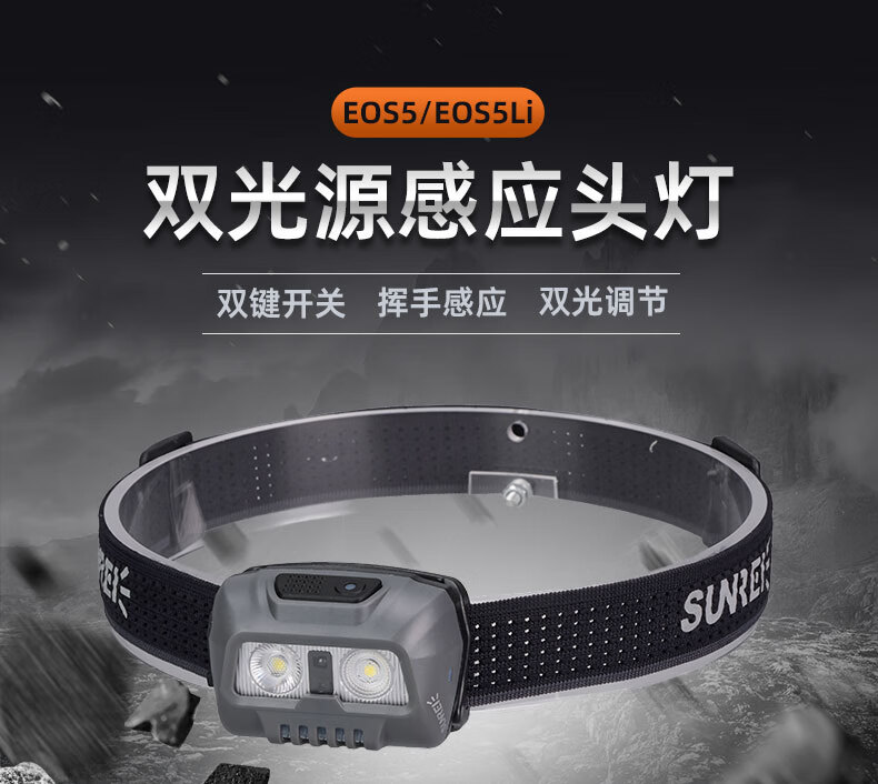 山力士EOS5户外登山头戴式强光头灯超长续航徒步防水钓鱼越野跑 EOS5充电款