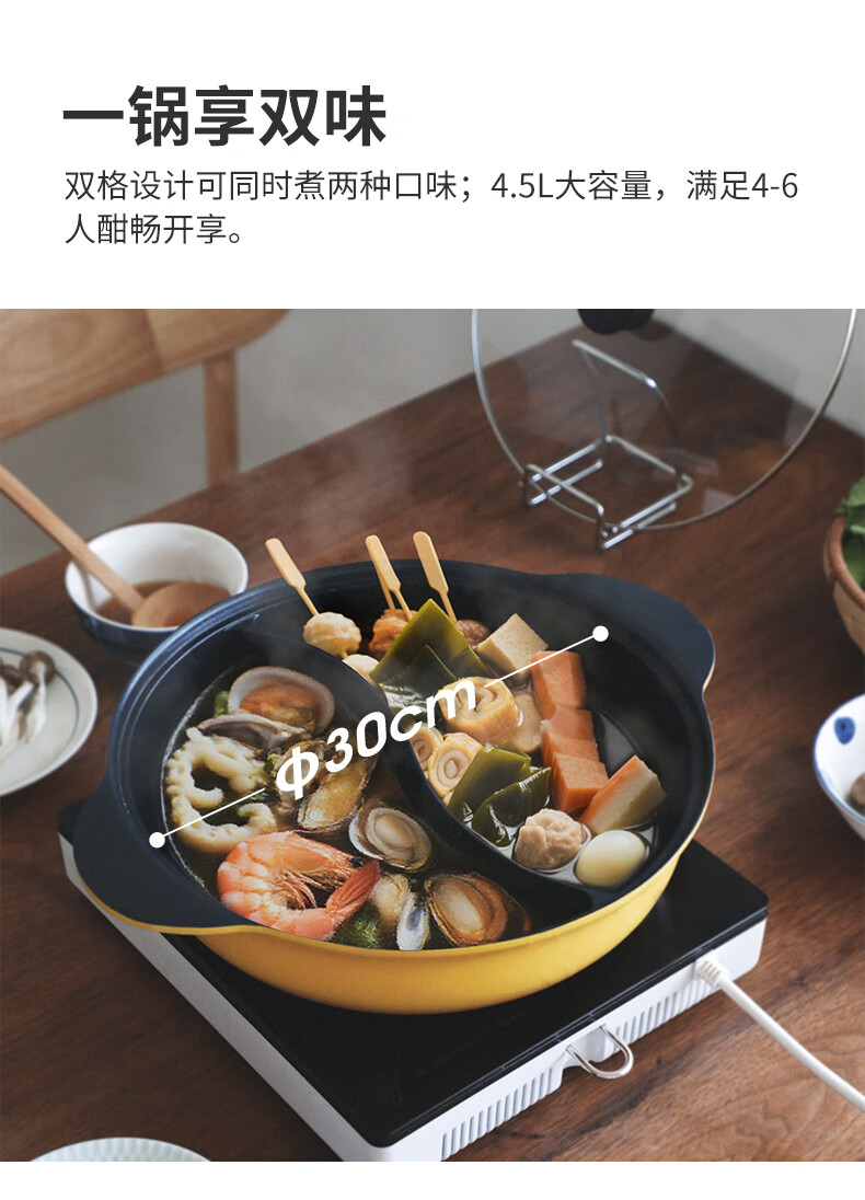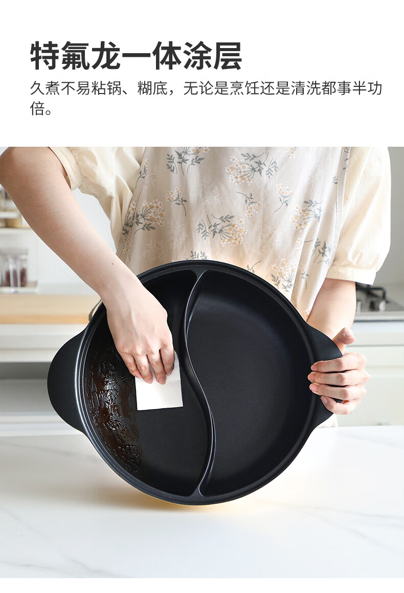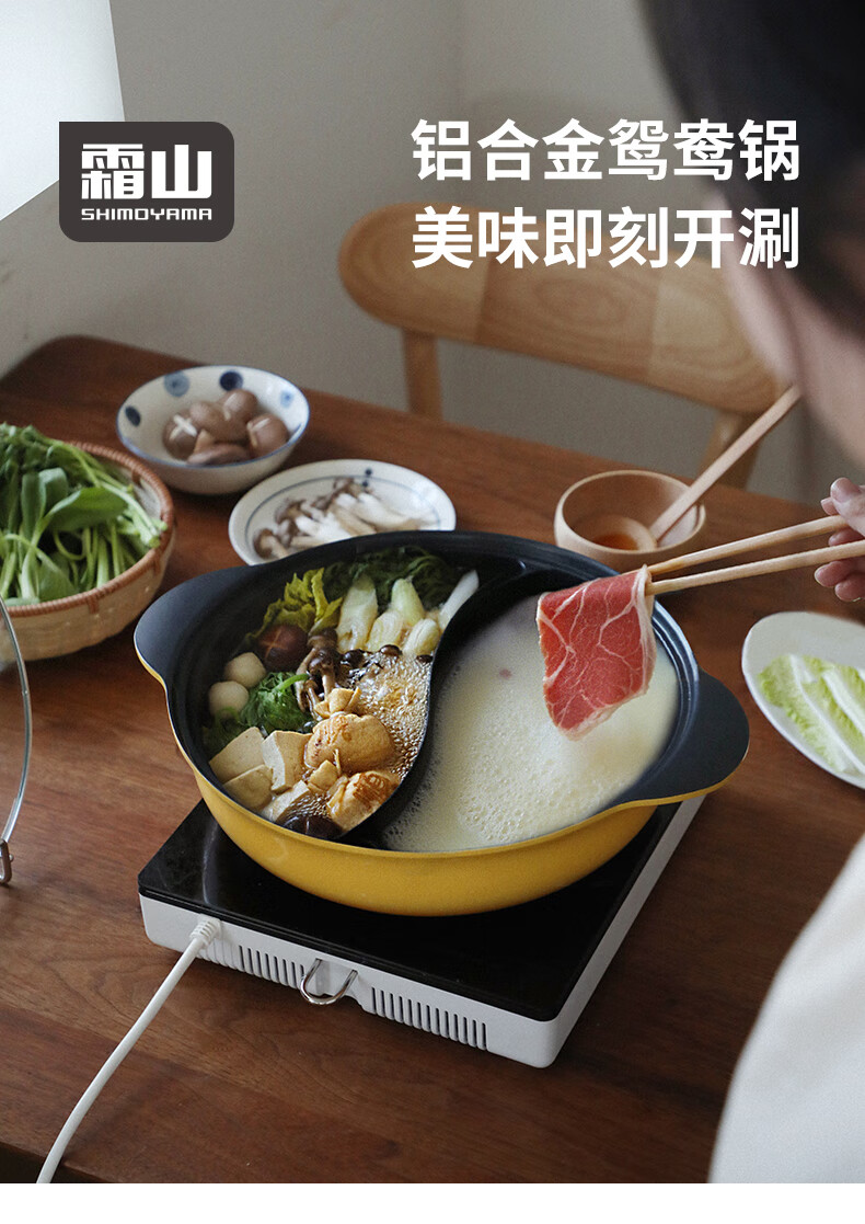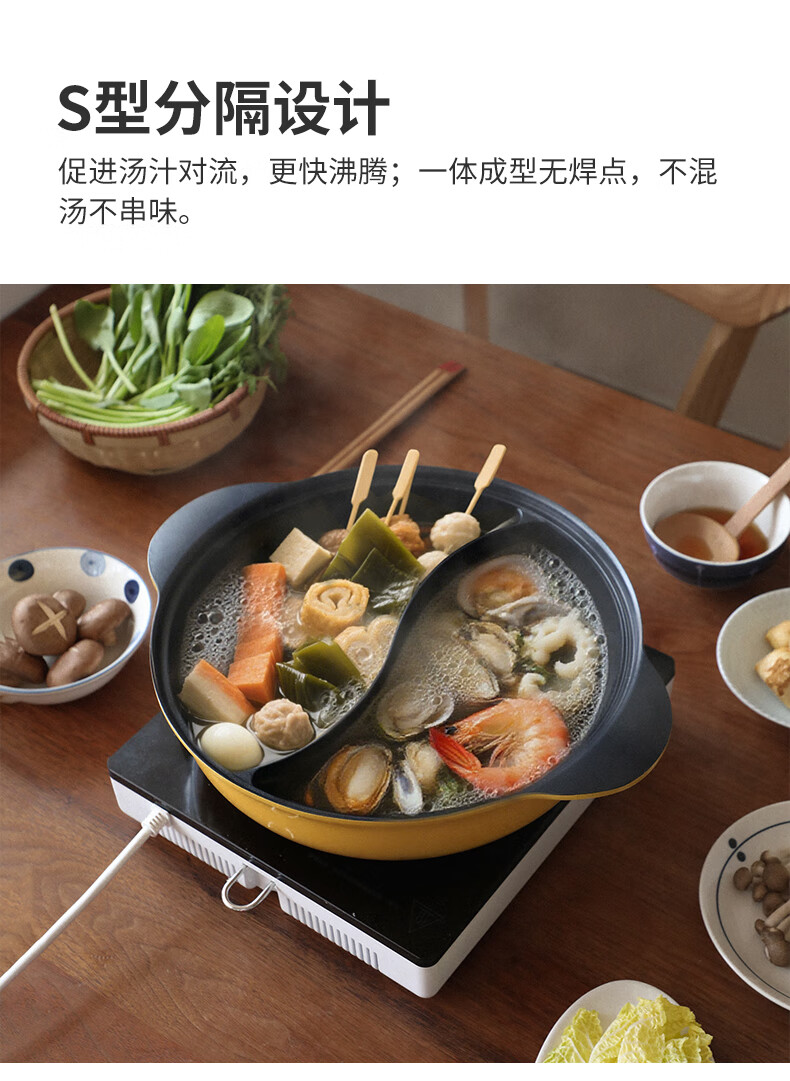 霜山鸳鸯锅家用铝合金火锅专用双耳带盖不粘锅汤锅大容量一体涮锅 S型分格鸳鸯锅-直径 30cm