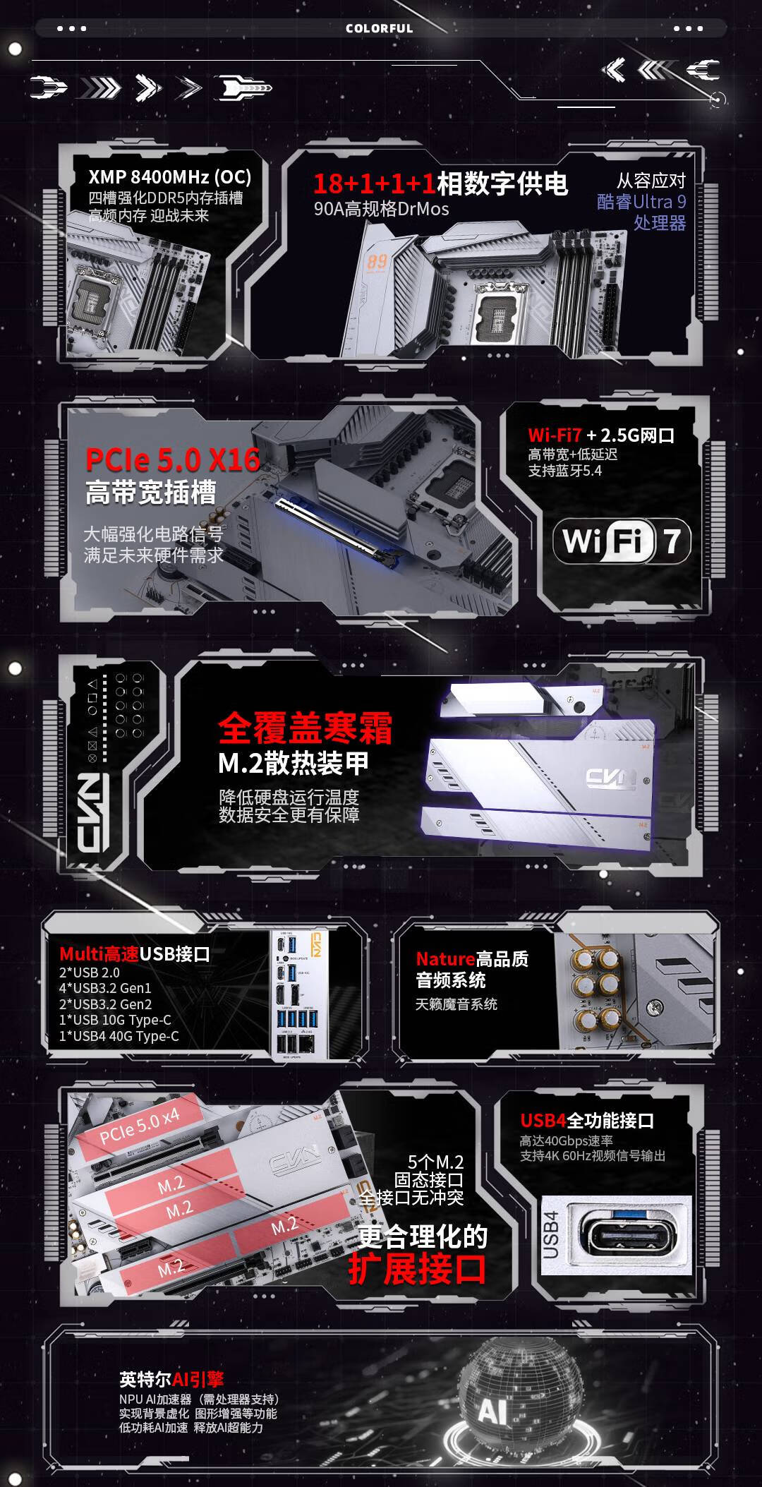 七彩虹(Colorful)CVN Z890 ARK FROZEN V20 DDR5 方舟主板 支持285K/265K/245K(Intel Z890/LGA 1851)