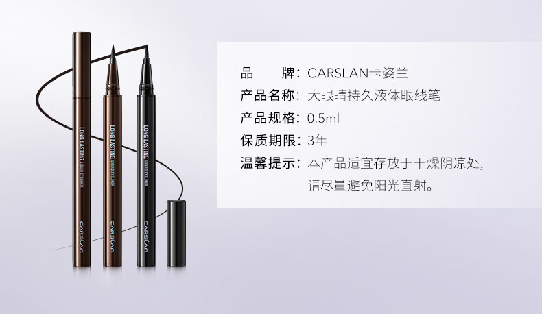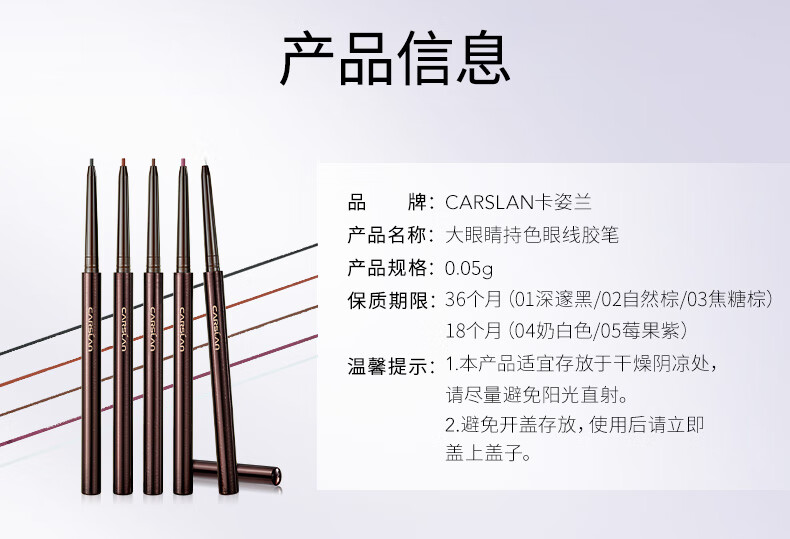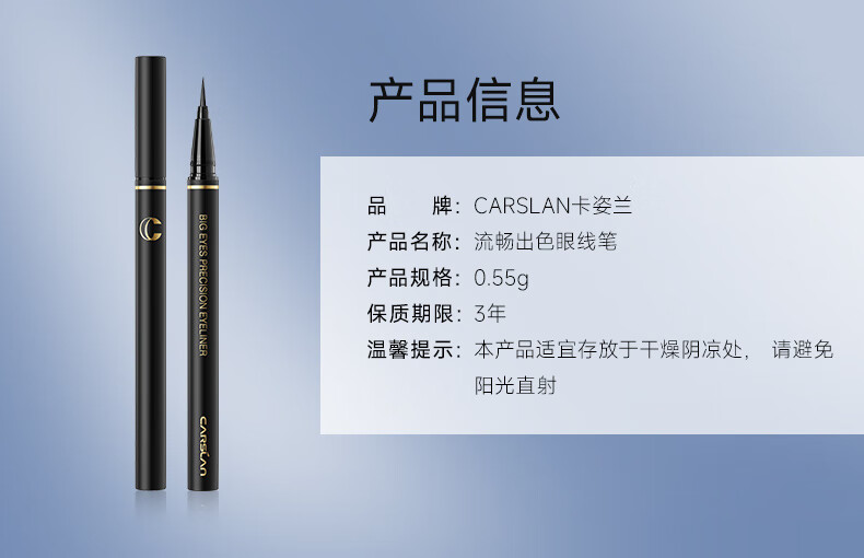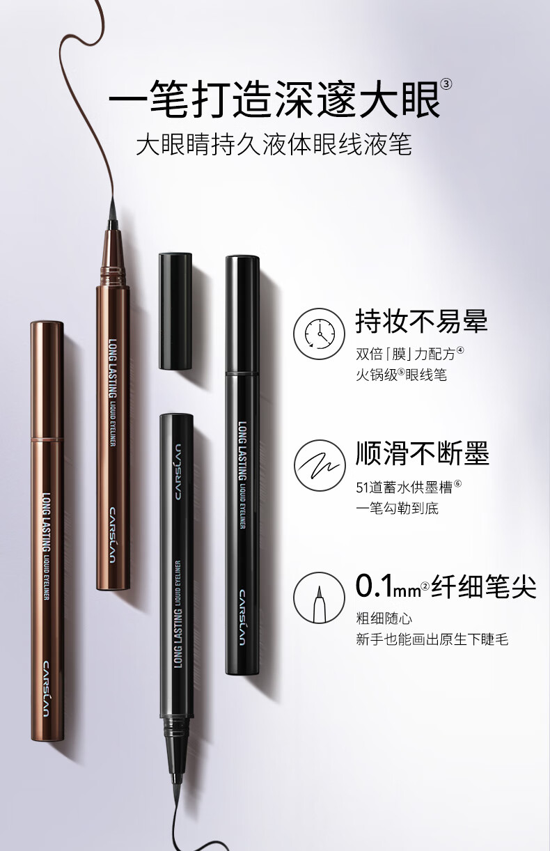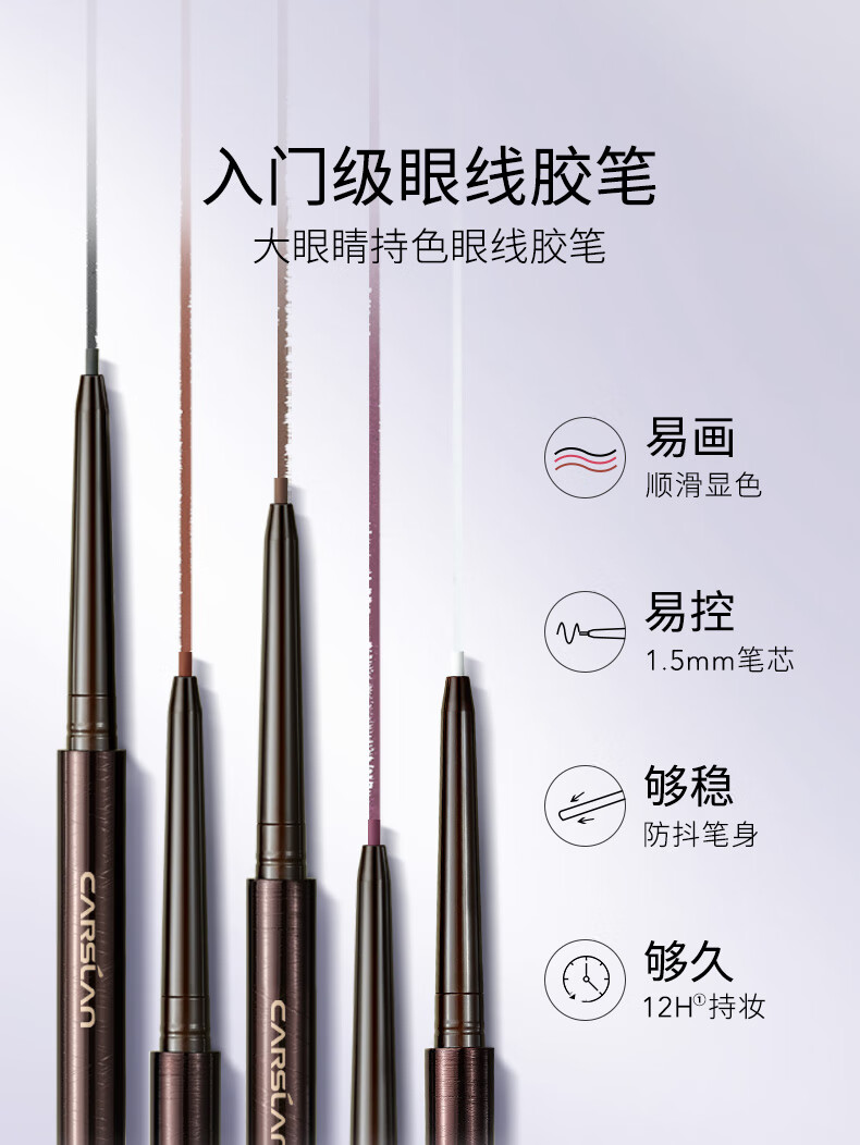 卡姿兰(Carslan) 大眼睛持色眼线笔 不易晕染防水防汗初学者不易脱妆初学者送女生 持色眼线胶笔01深邃黑