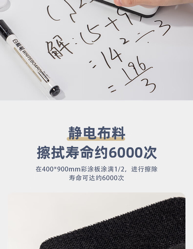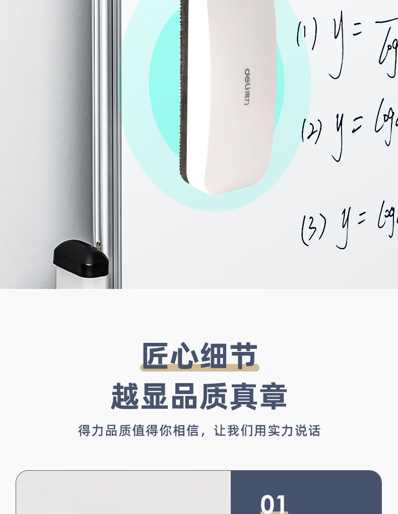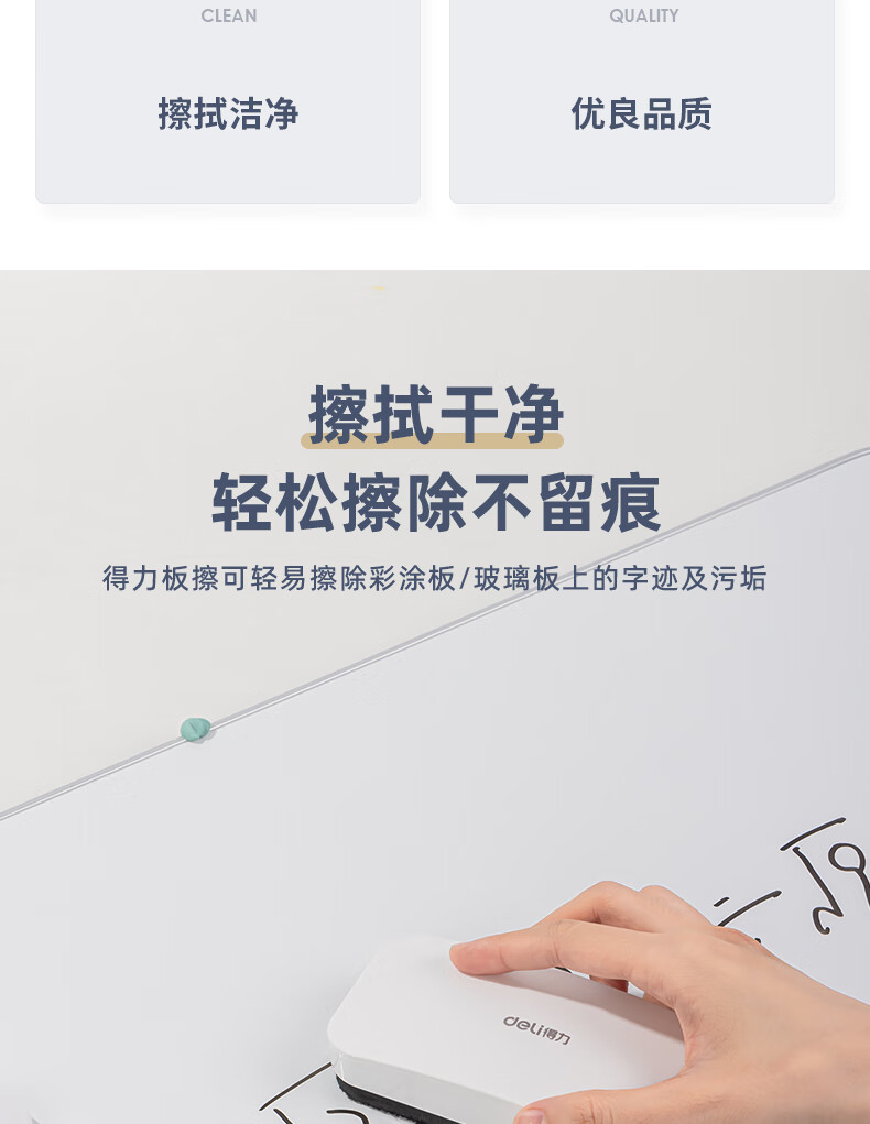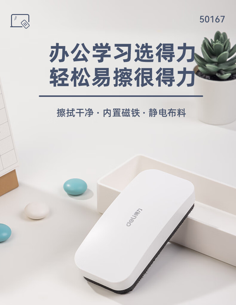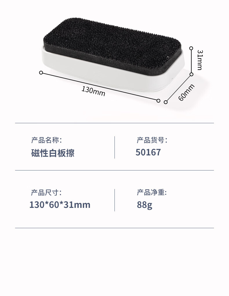 得力130*60*31mm白板磁性白板擦 时尚办公板擦白板配件 白板笔可用擦黑板擦绒布学校黑板擦玻璃50167
