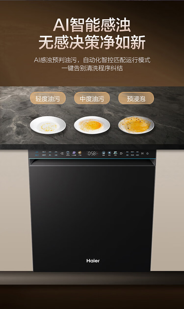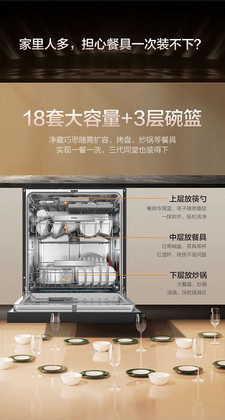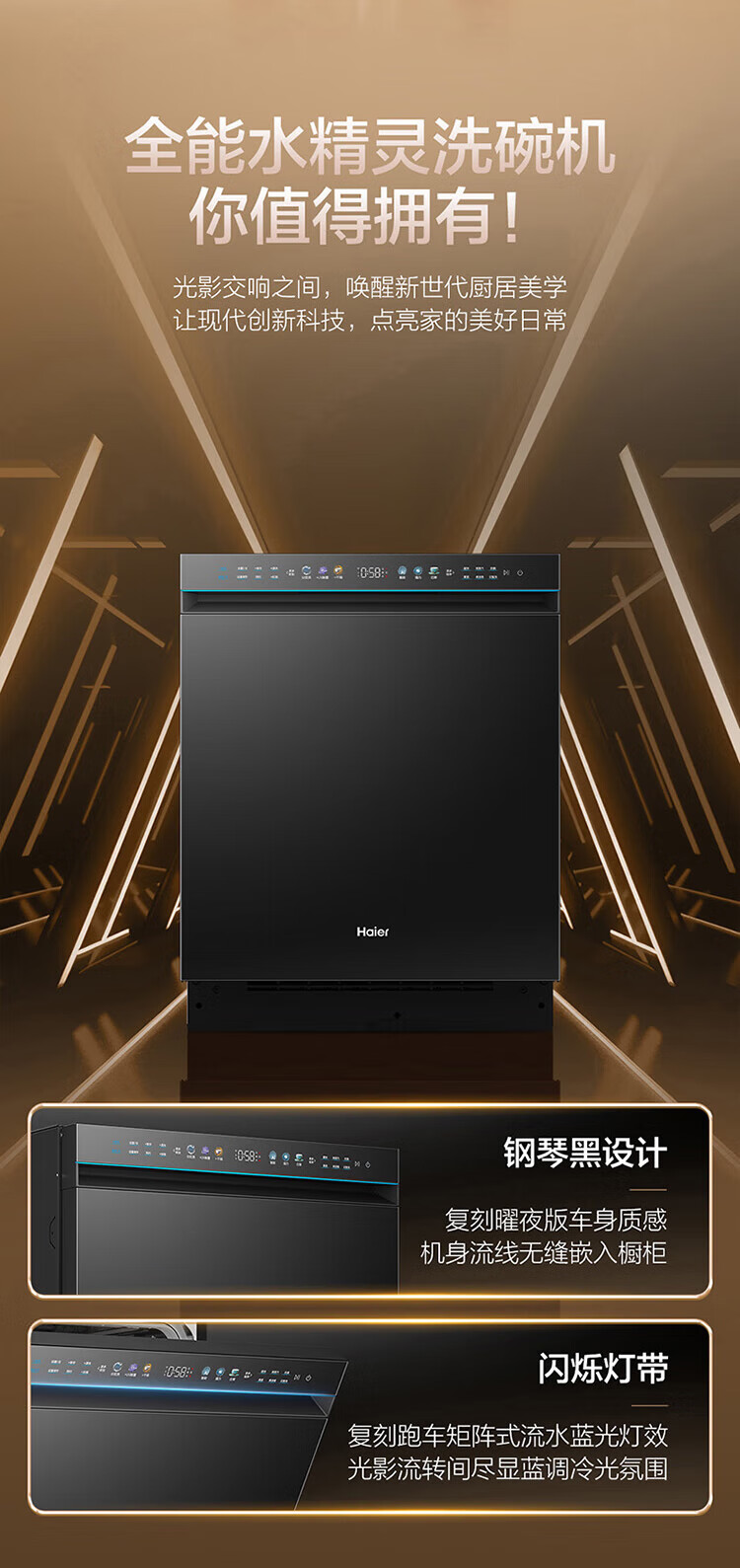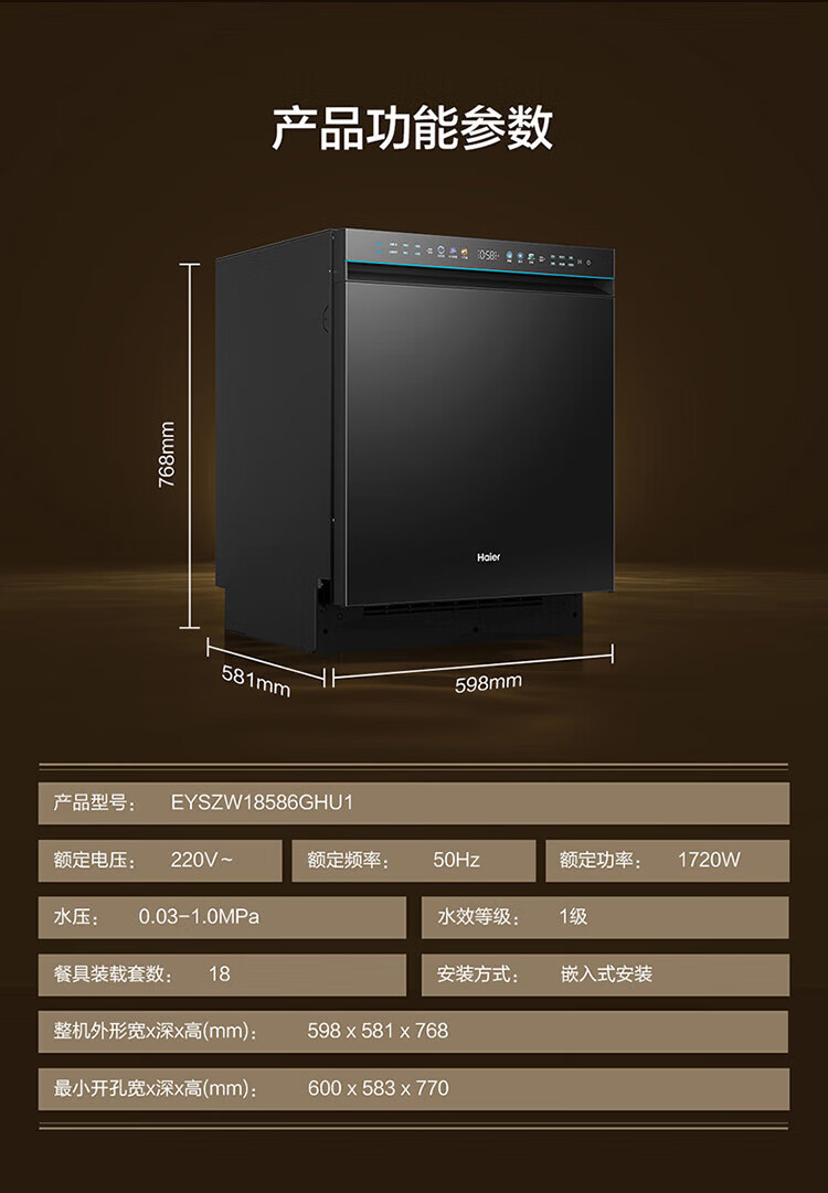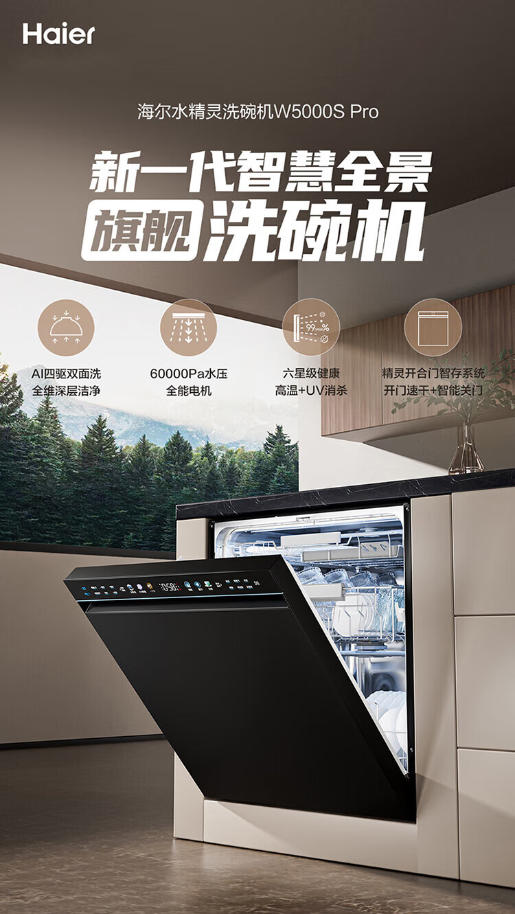 海尔(Haier)嵌入式洗碗机W5000S Pro水精灵系列 一级水效 18套+3大容量 UV双重除菌 智能门热风烘干 【新品】W5000SPro六星消杀18套+3容量