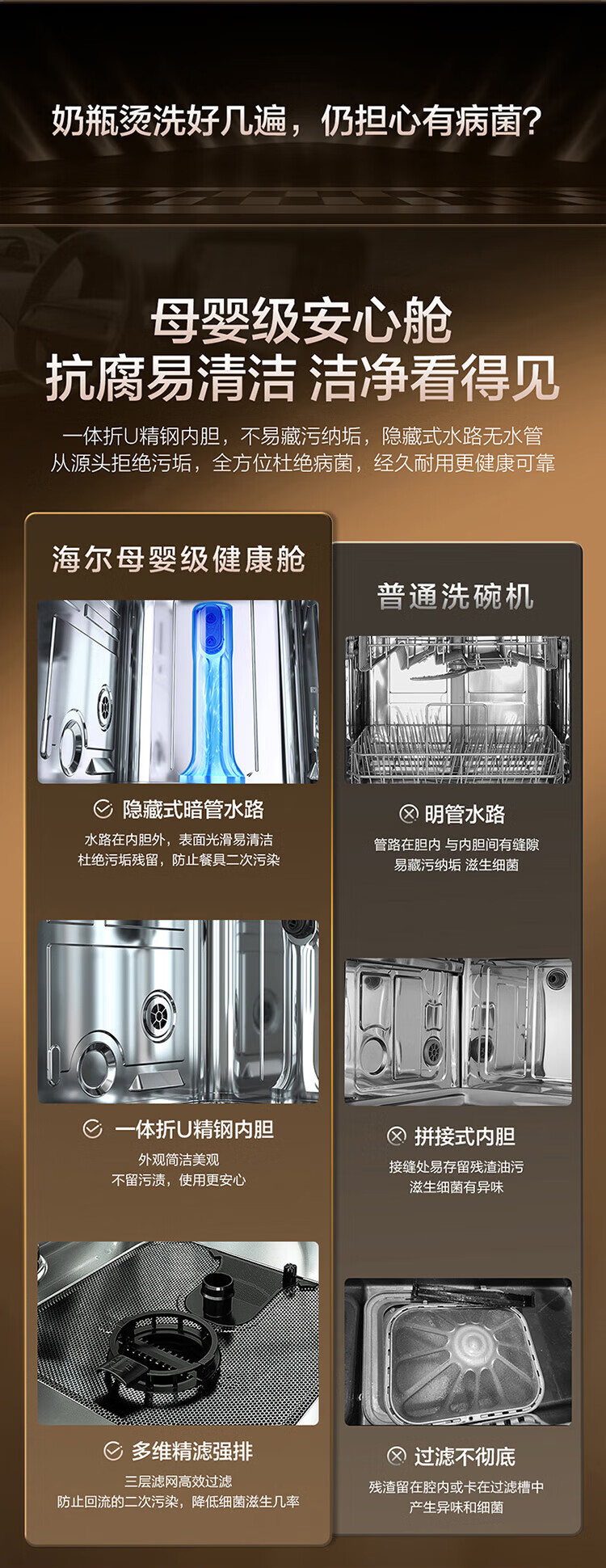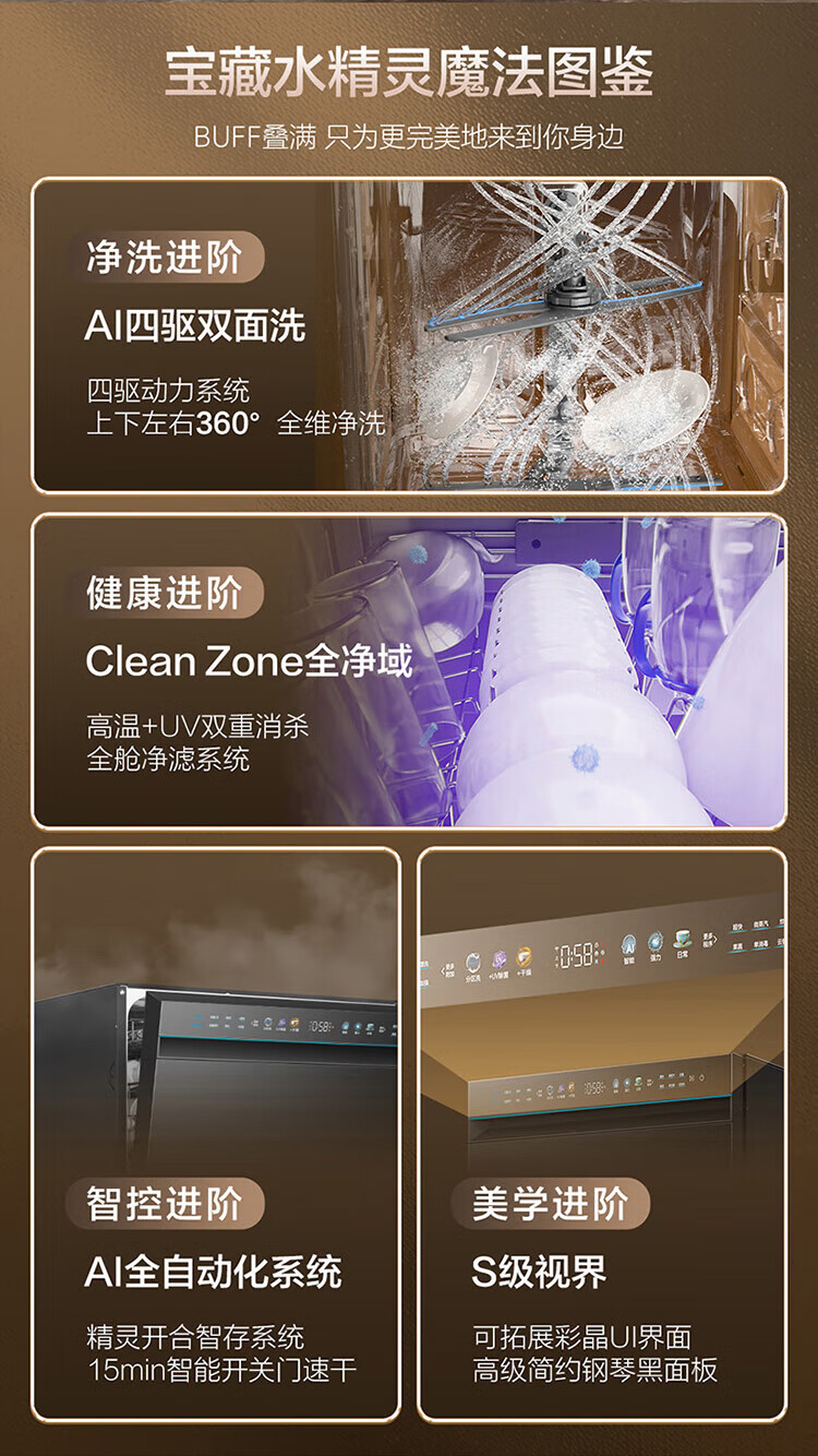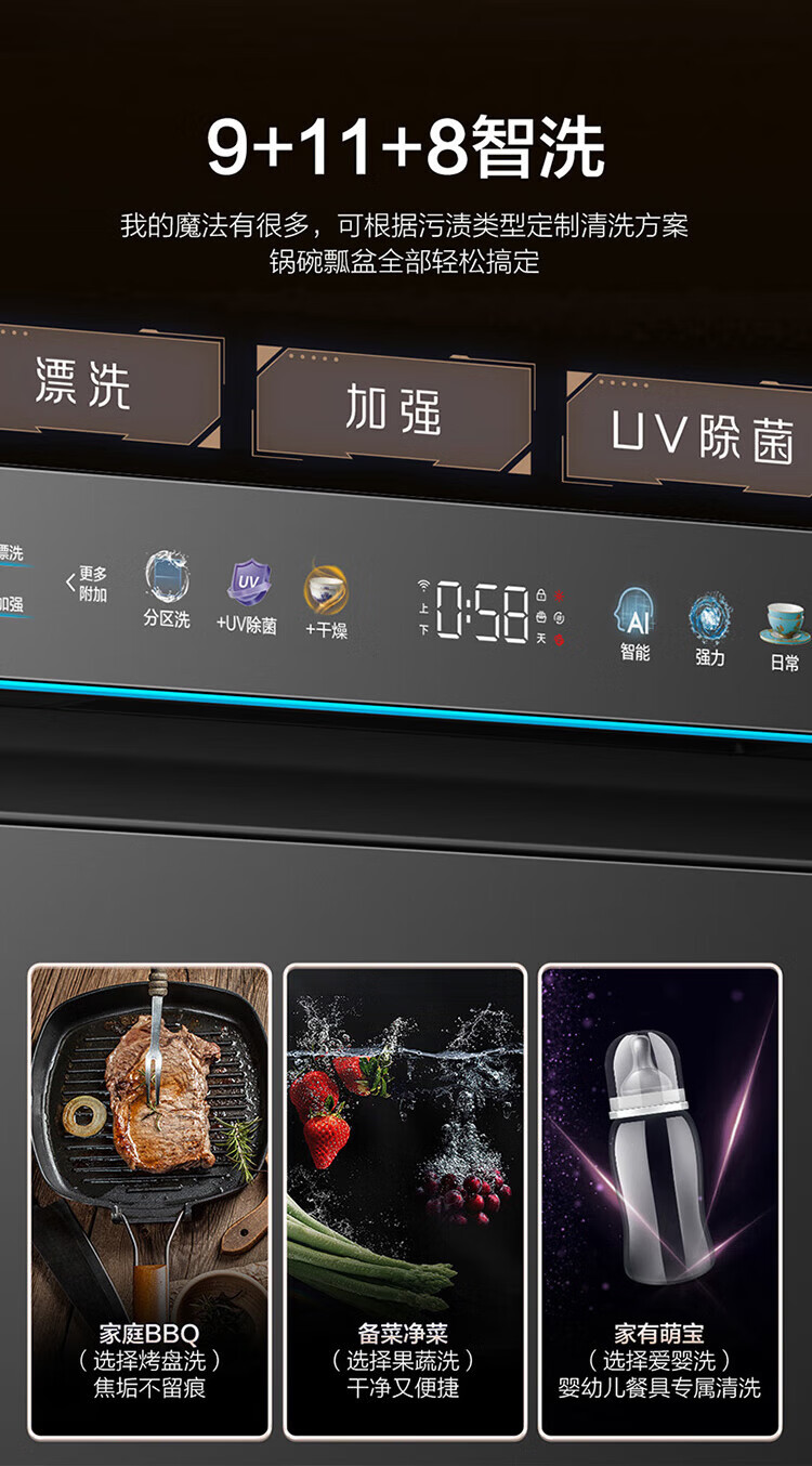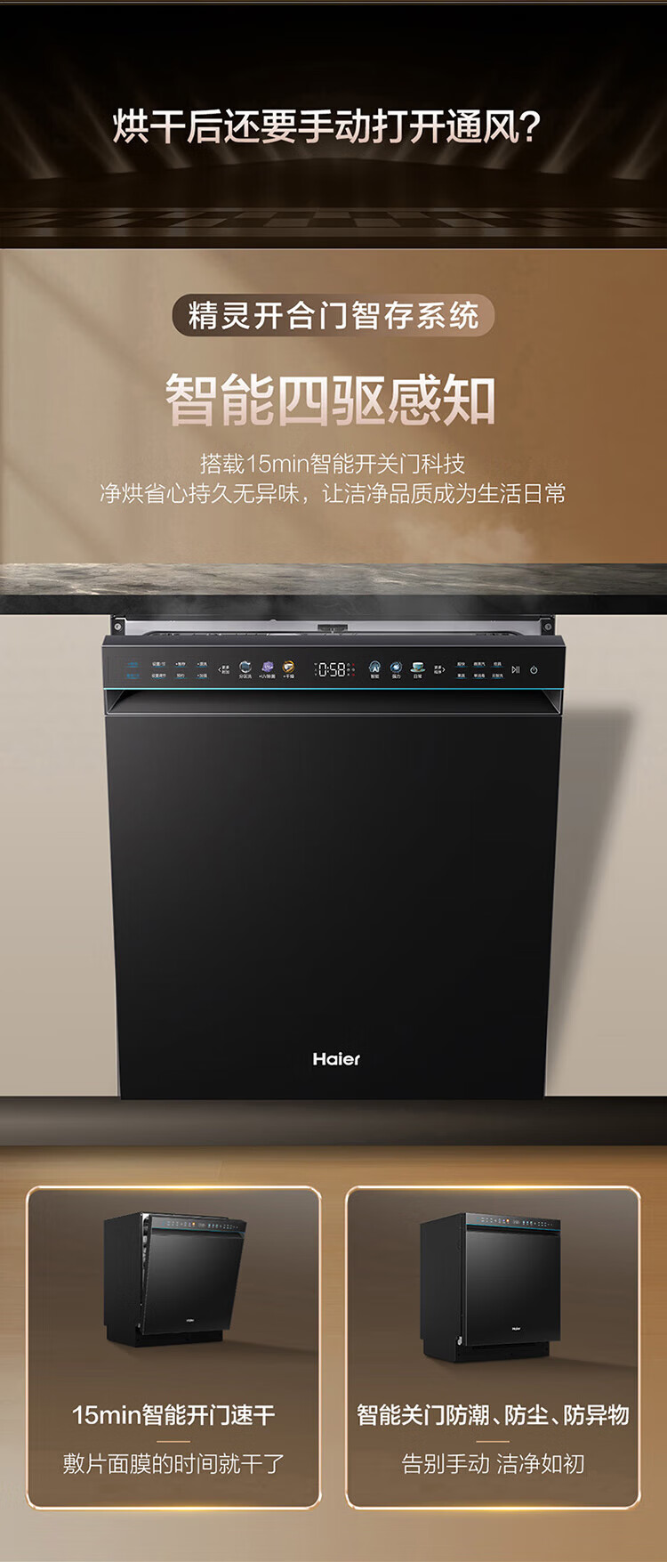 海尔(Haier)嵌入式洗碗机W5000S Pro水精灵系列 一级水效 18套+3大容量 UV双重除菌 智能门热风烘干 【新品】W5000SPro六星消杀18套+3容量