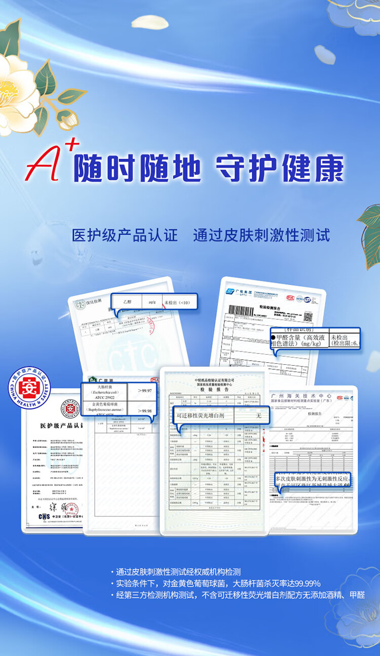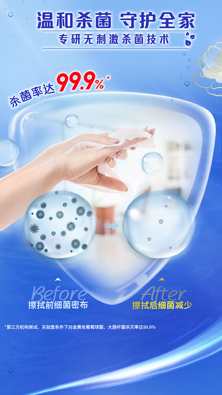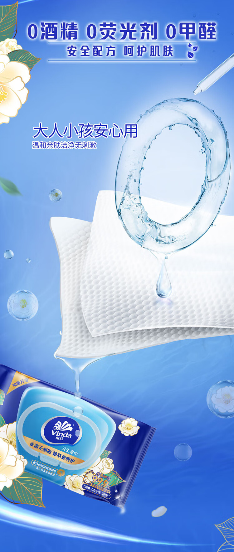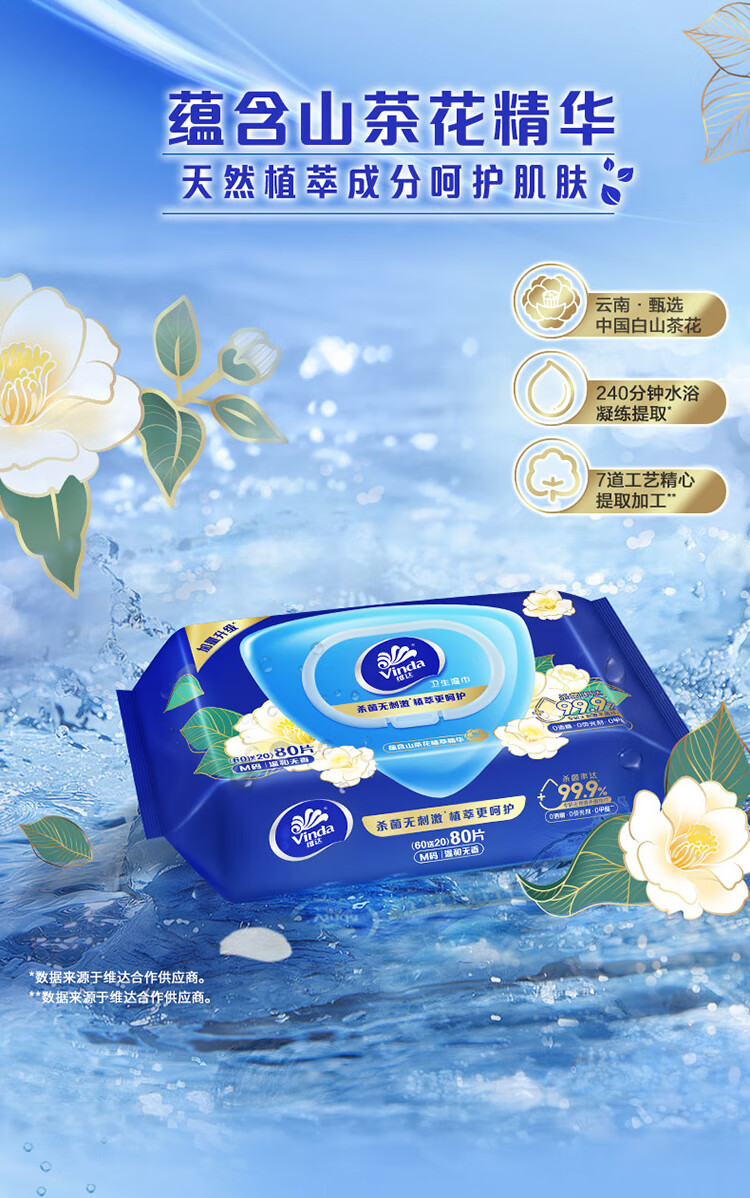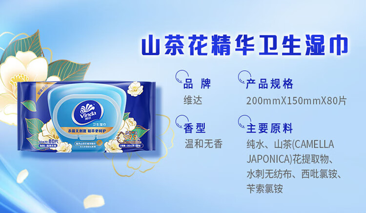 维达(Vinda)杀菌湿巾 80片*单包 山茶花精华湿巾大包湿纸巾杀菌率99.9%无酒精
