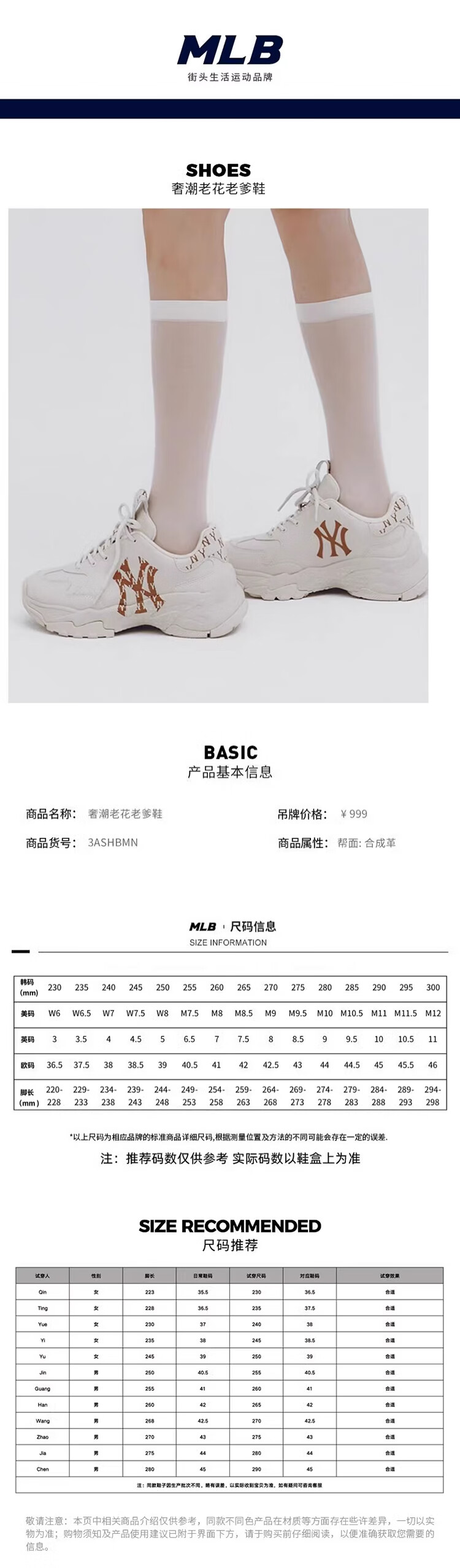 MLB鞋子男秋冬老爹鞋厚底增高女鞋百搭运动鞋3ASHBMN3N-50BKS-250