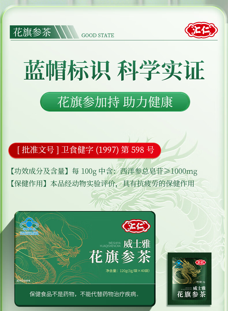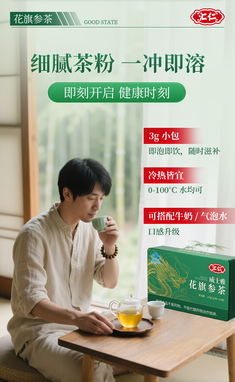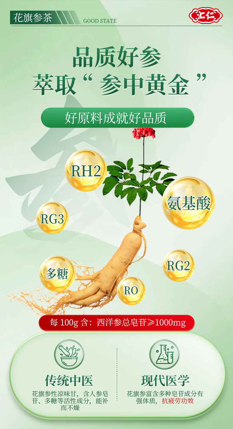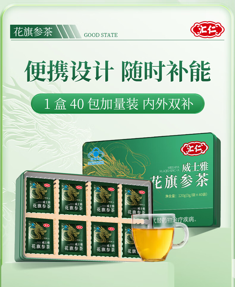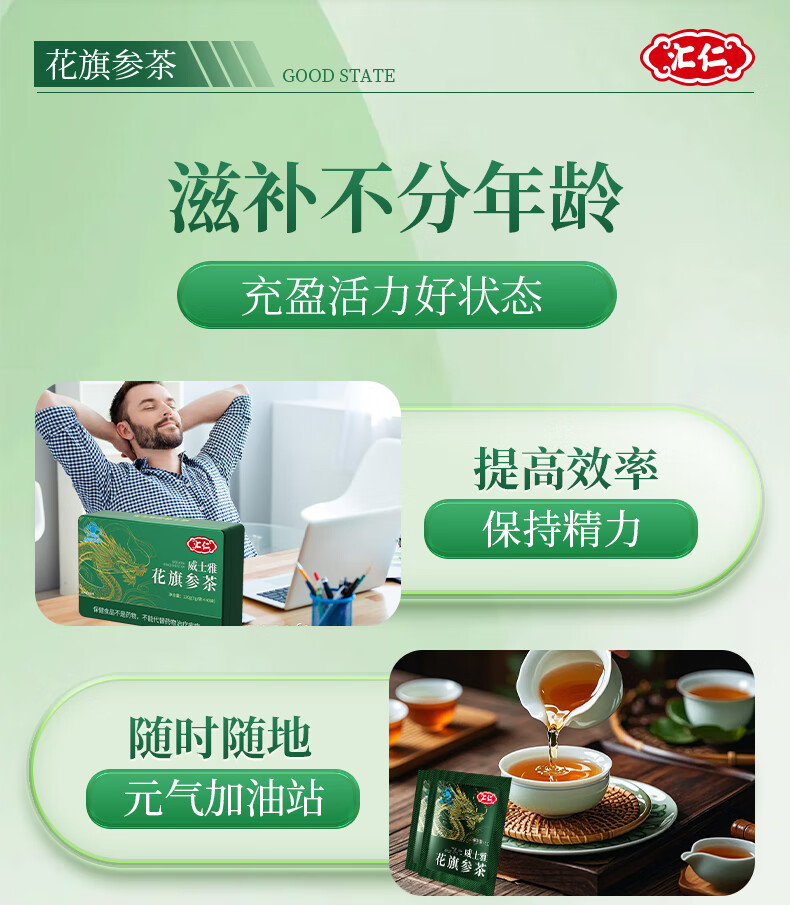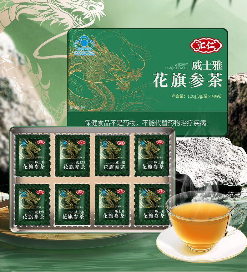 汇仁花旗参茶高含量人参皂苷滋补提神抗疲劳西洋参茶颗粒养生茶送长辈