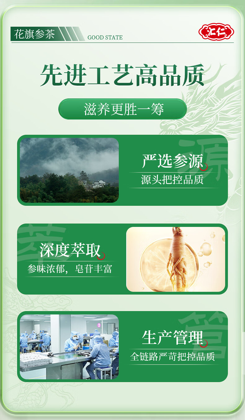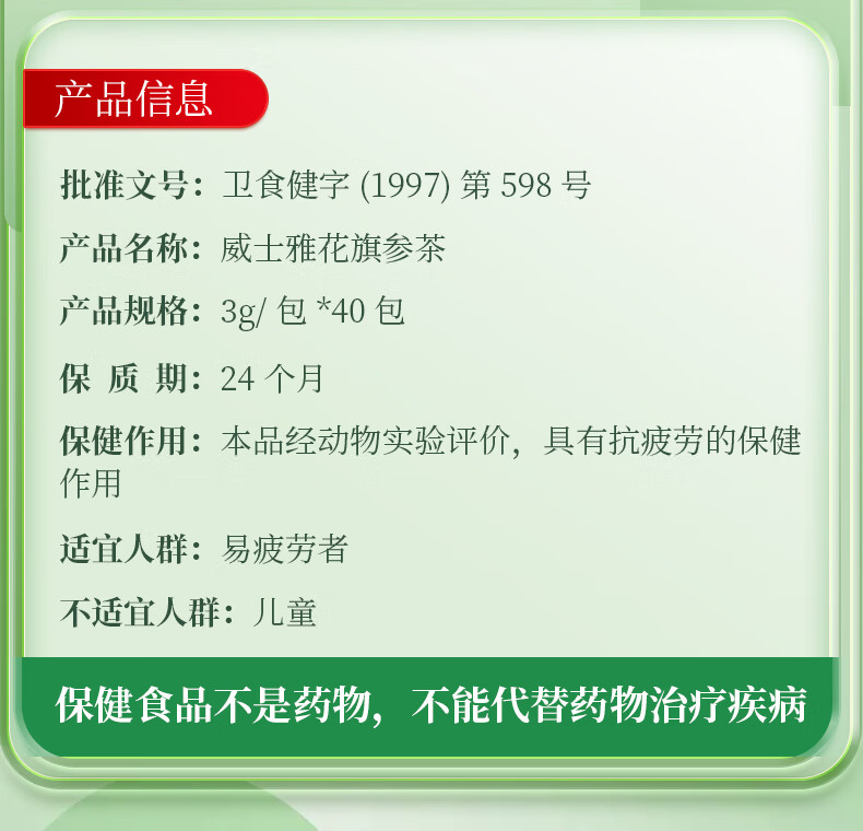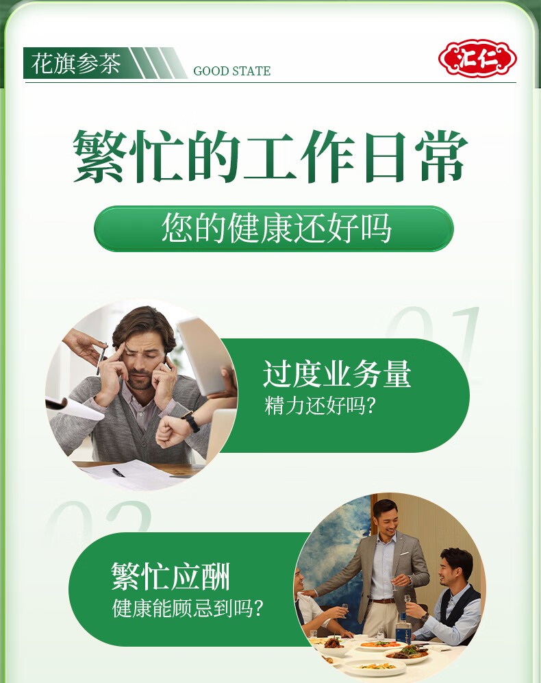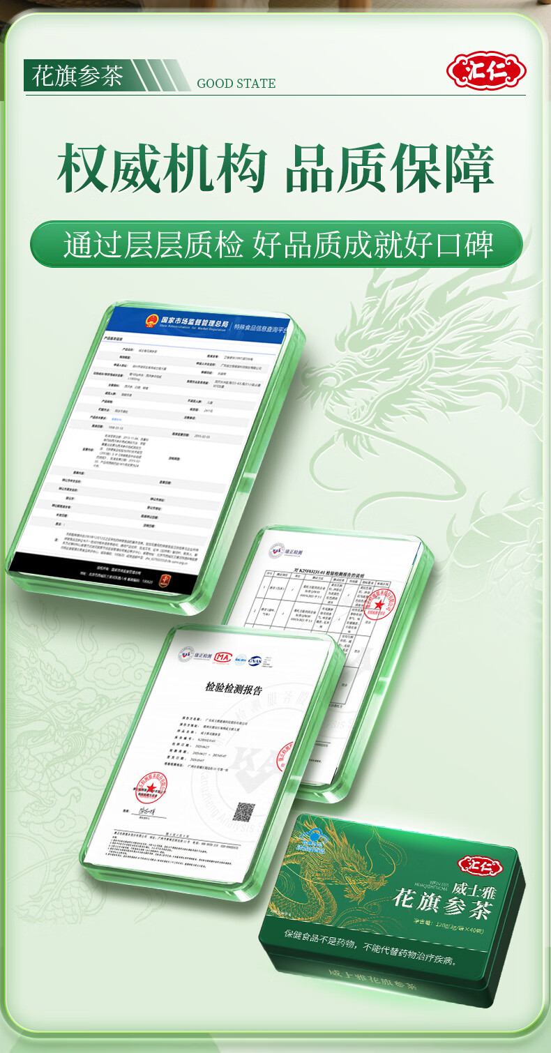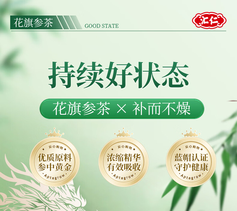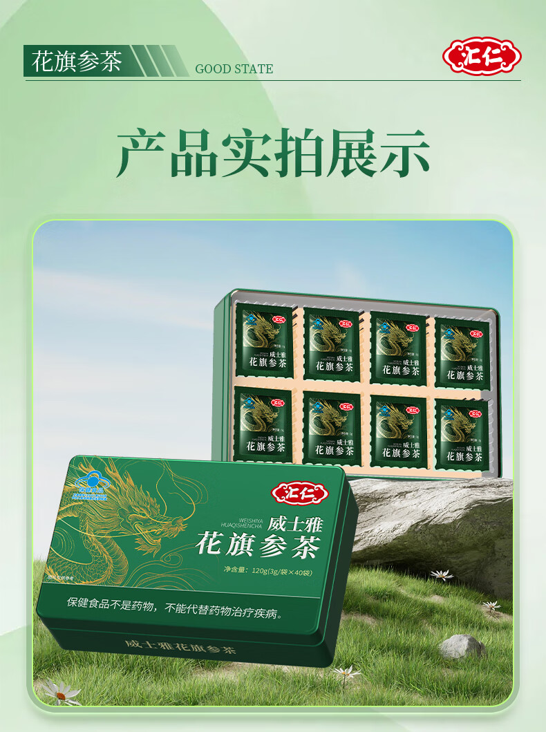 汇仁花旗参茶高含量人参皂苷滋补提神抗疲劳西洋参茶颗粒养生茶送长辈