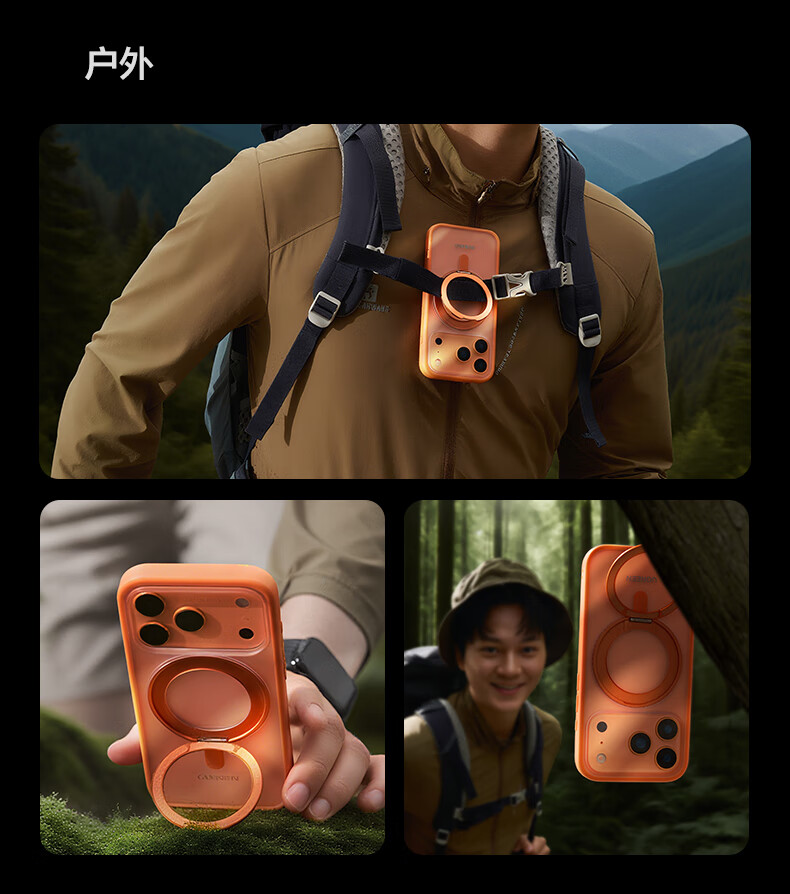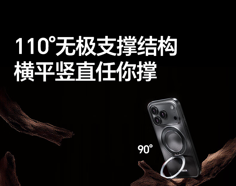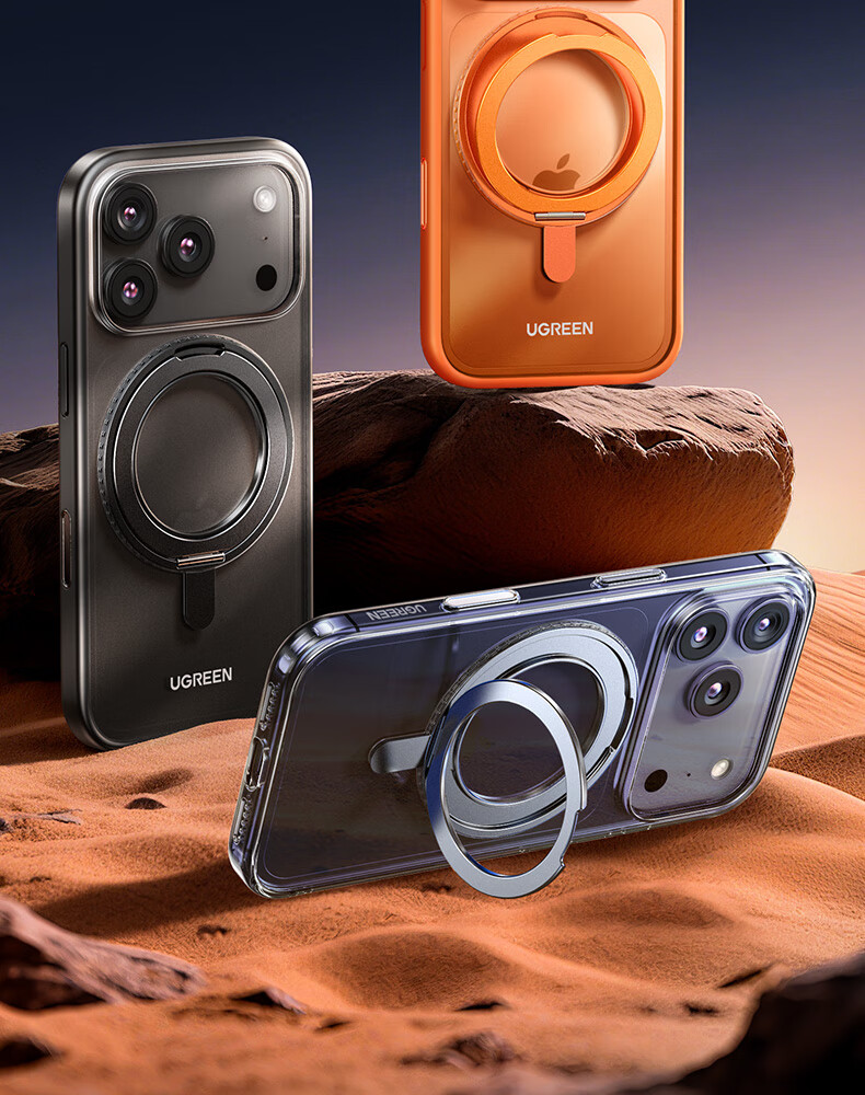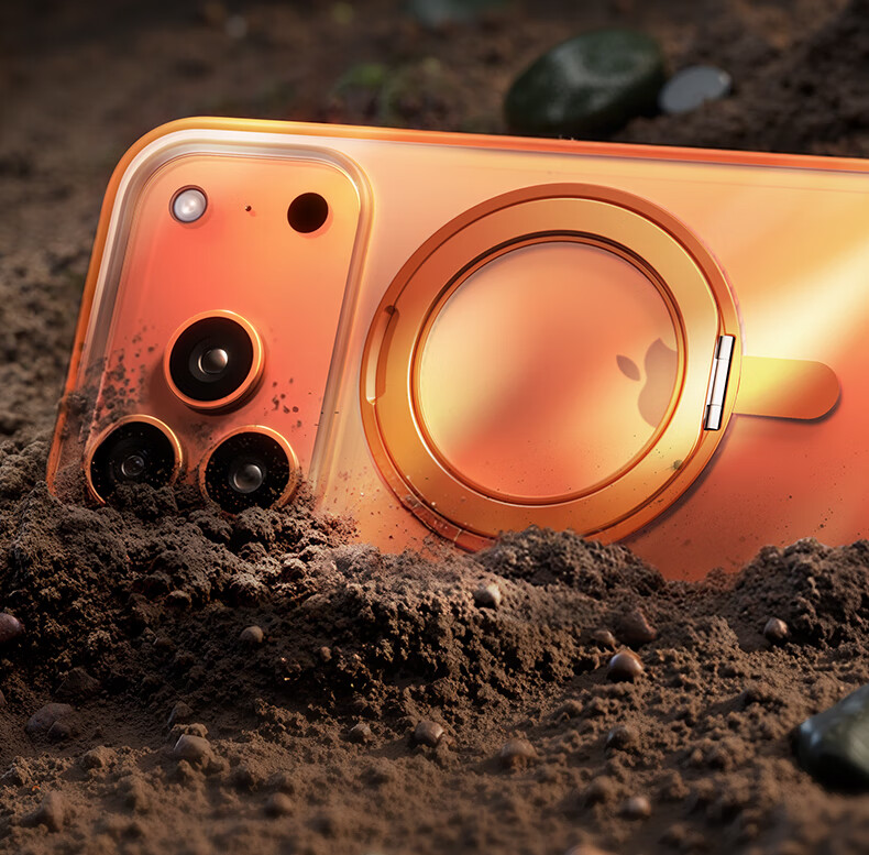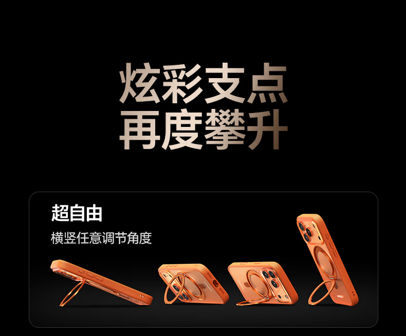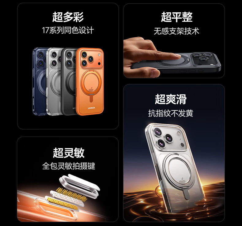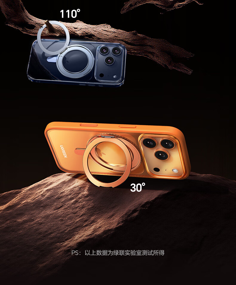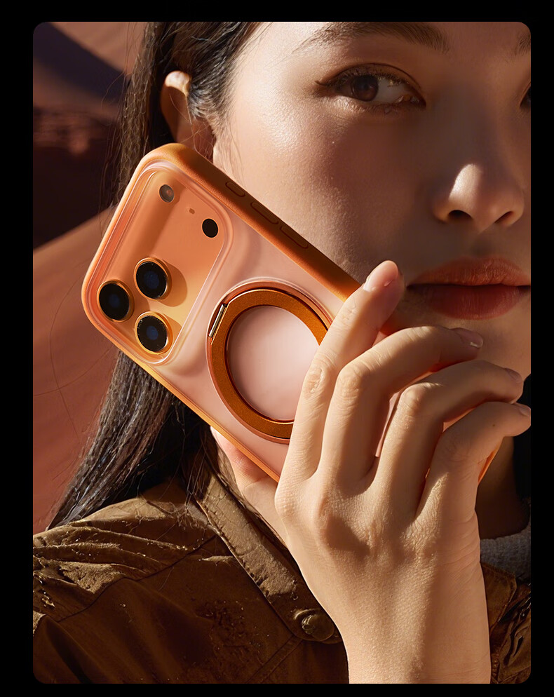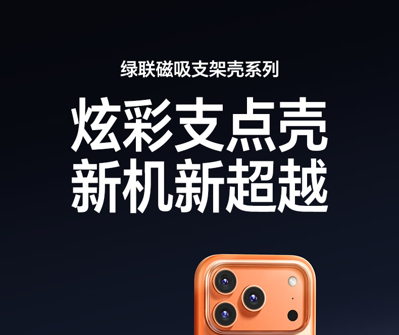 绿联【360°旋转支架|原机橙】适用iPhone17ProMax手机壳磁吸支架苹果17ProMax保护套气囊防摔磨砂抗污