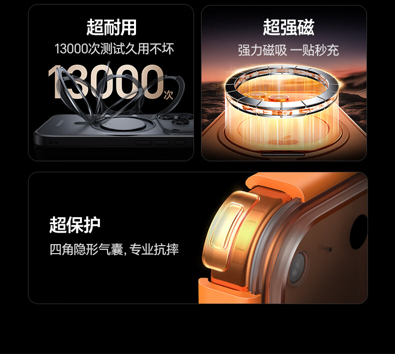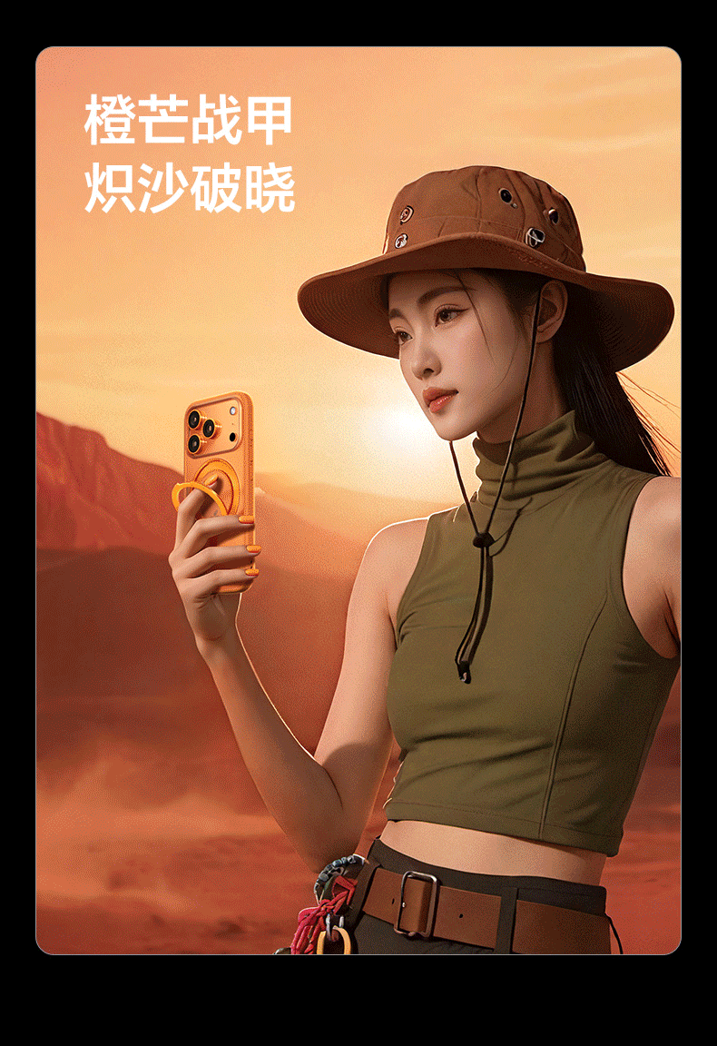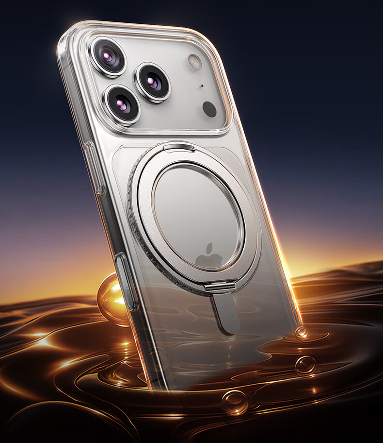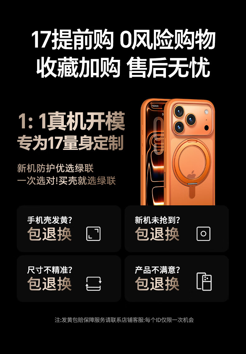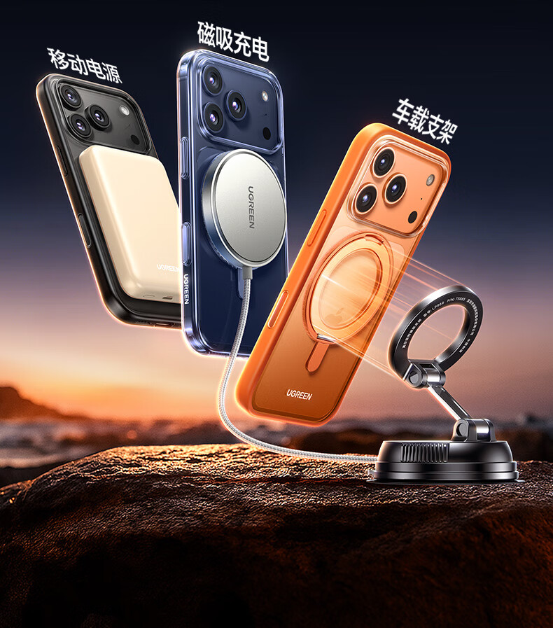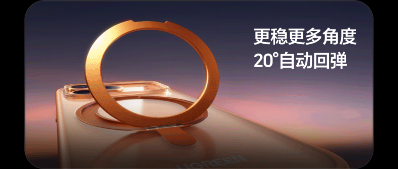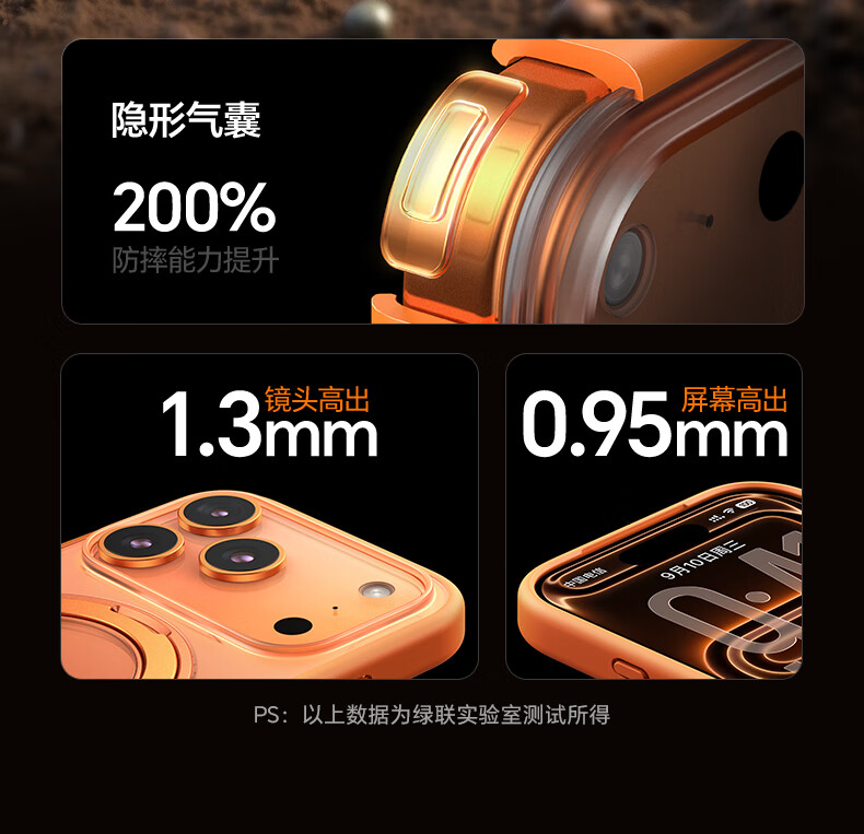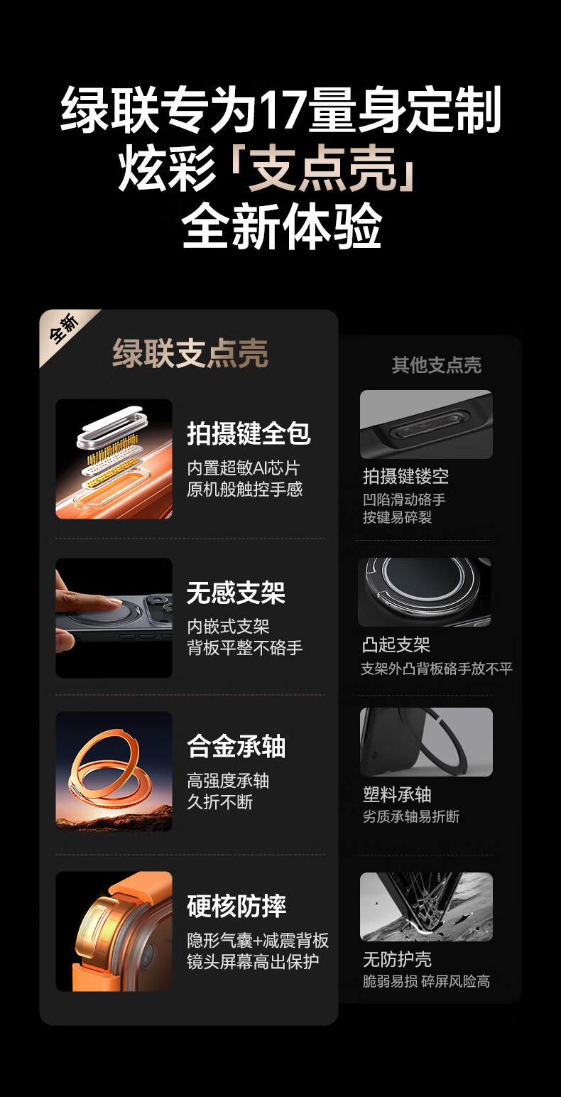绿联【360°旋转支架|原机橙】适用iPhone17ProMax手机壳磁吸支架苹果17ProMax保护套气囊防摔磨砂抗污