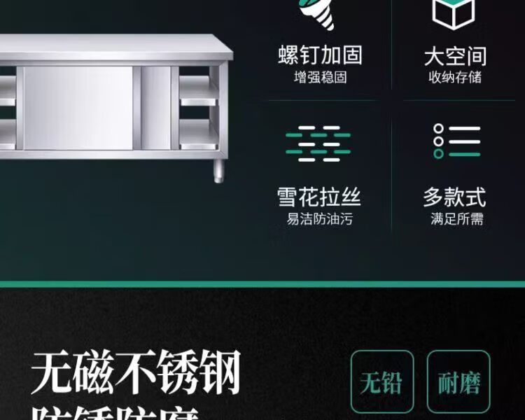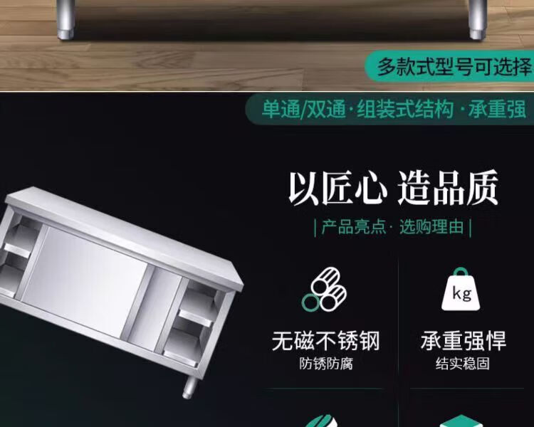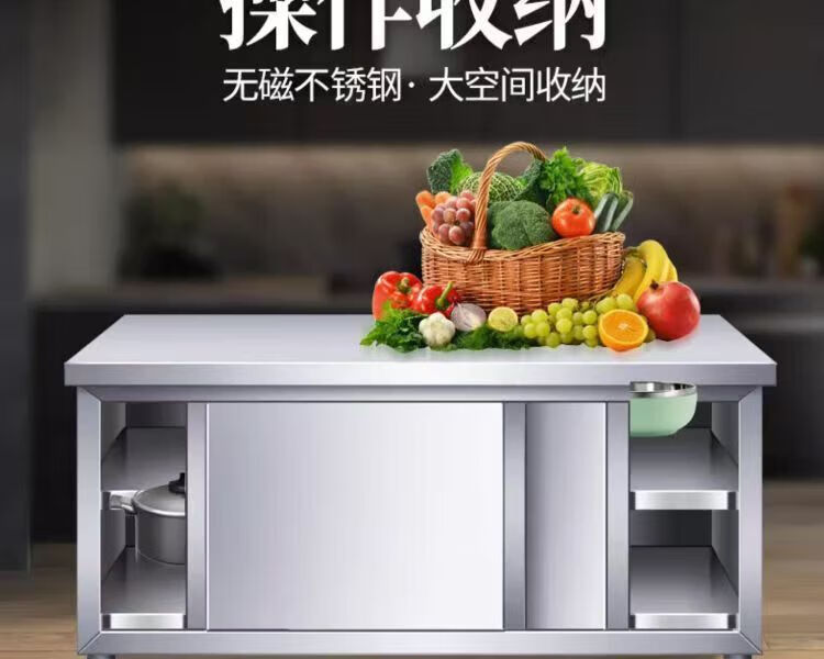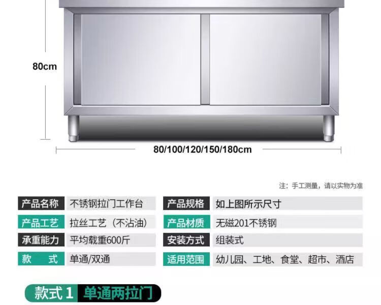 倘然之家不锈钢工作台带拉门厨房操作台加厚耐用厨房橱柜专用烘焙打荷台 长80宽40高80cm单通