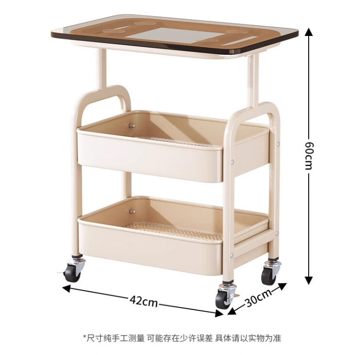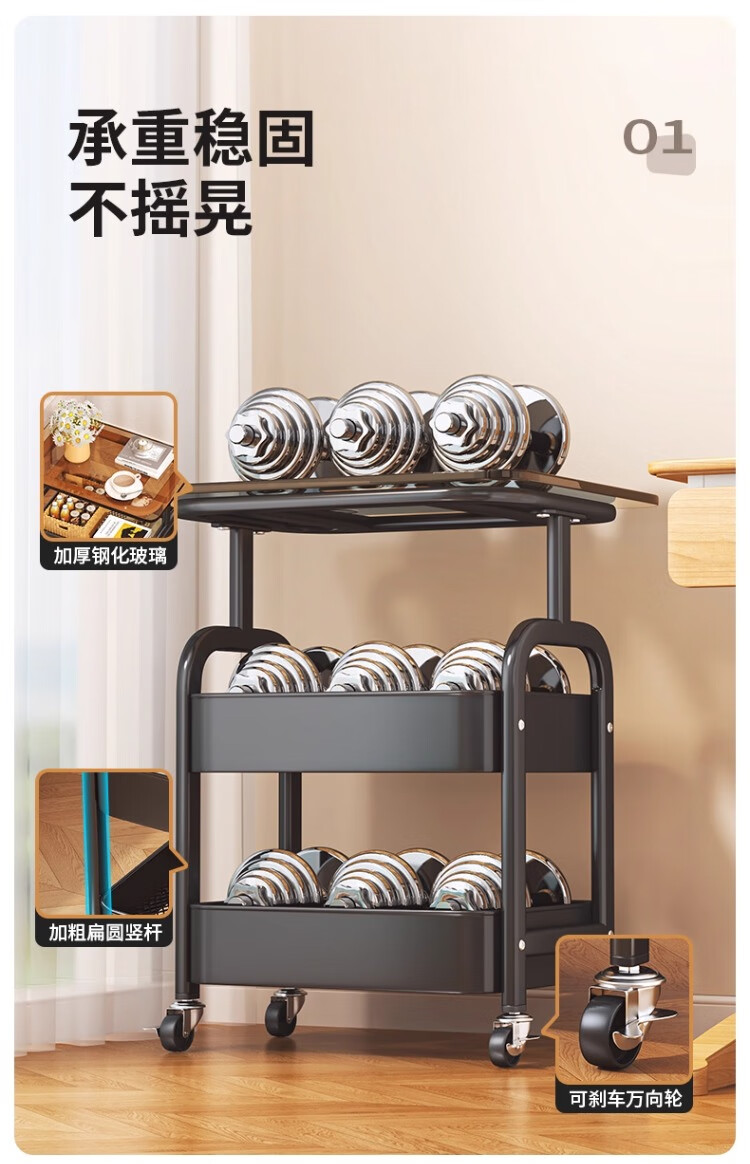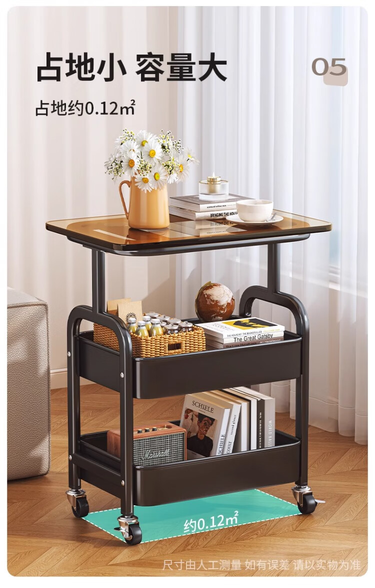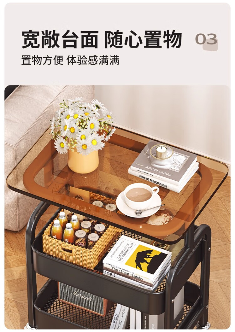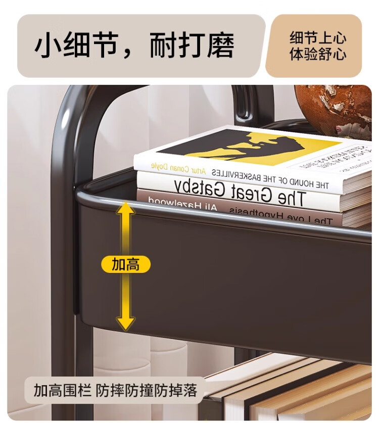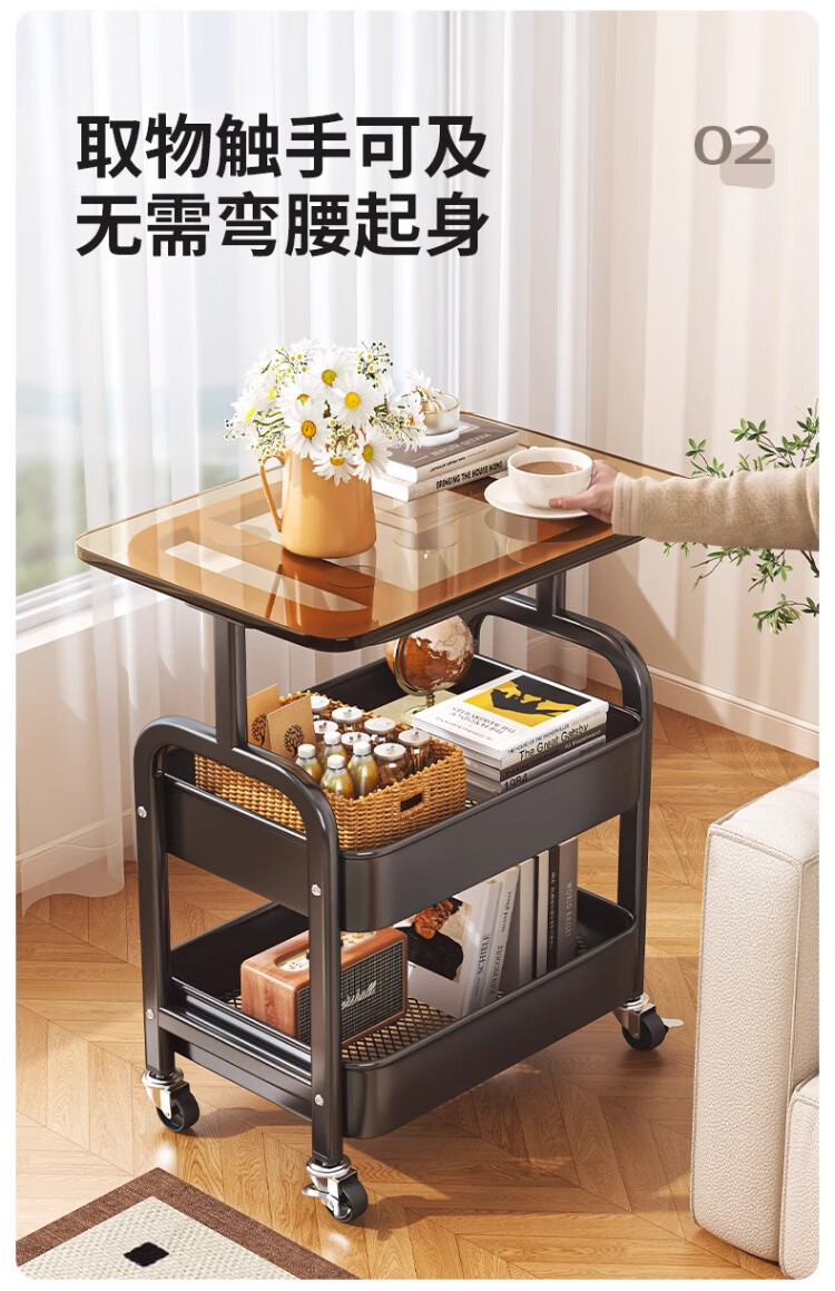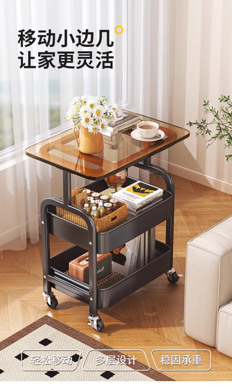 衣炫中古小推车置物架可移动沙发边几收纳柜架子床边桌子零食落地床头 三层黑色【加厚木板】顶部置物+万向轮