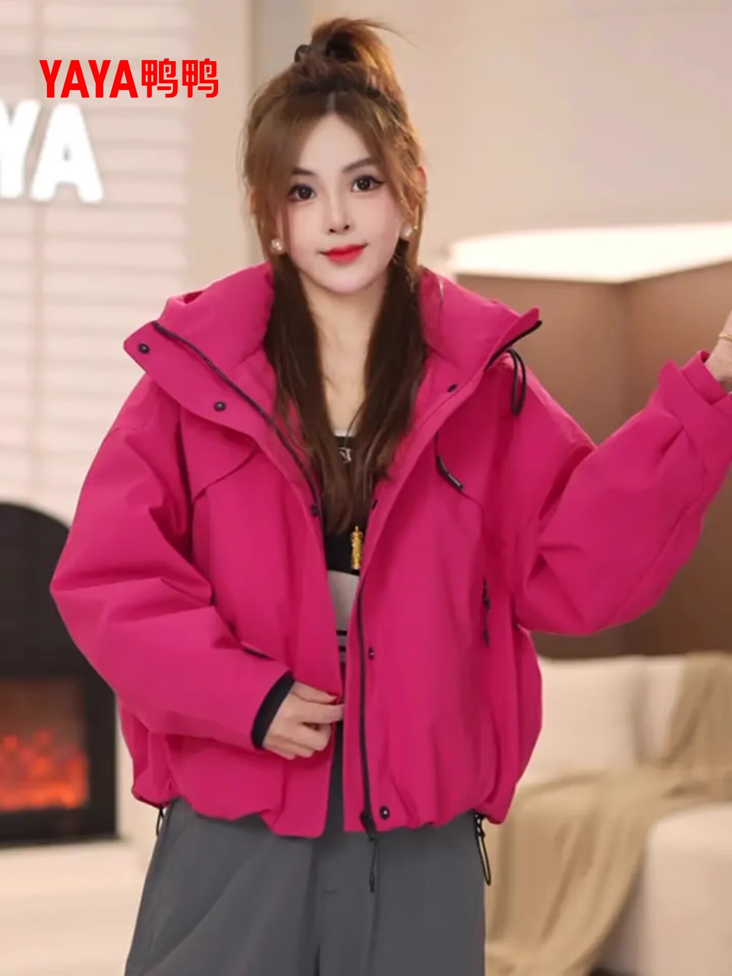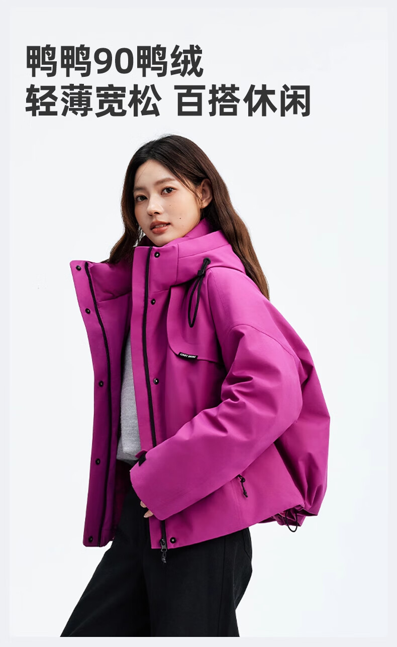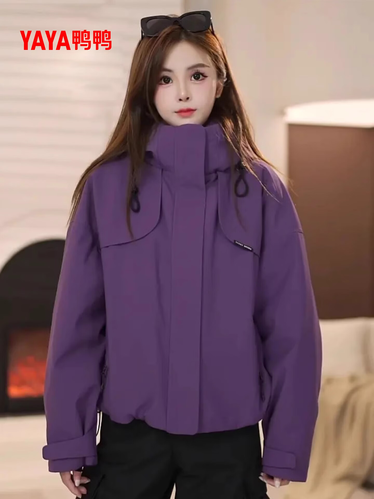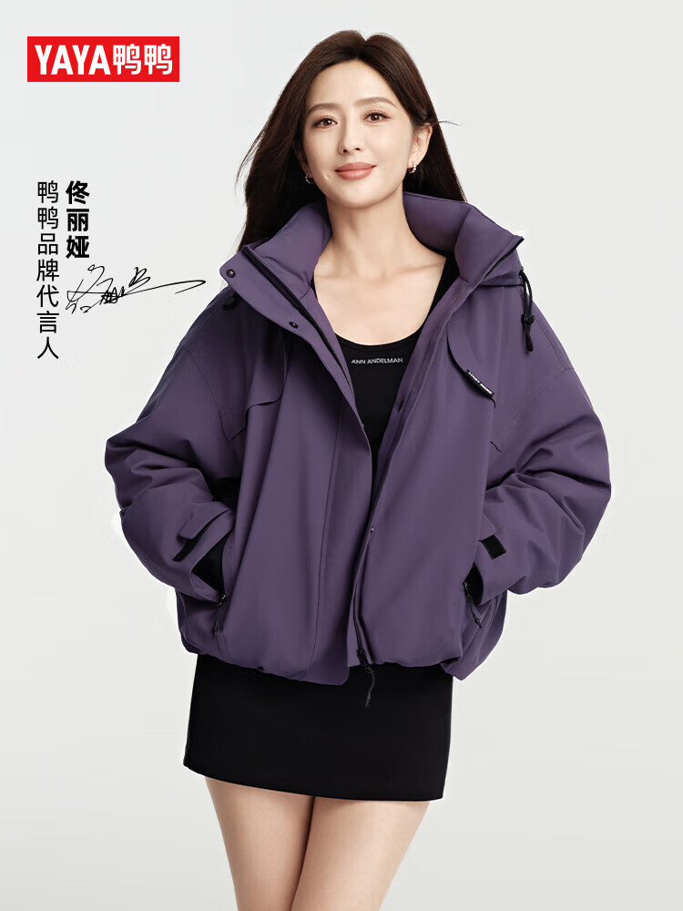 鸭鸭(YAYA)佟丽娅同款短款羽绒服女2025秋冬新款时尚休闲复古工装派克服外套 紫色 M (160)