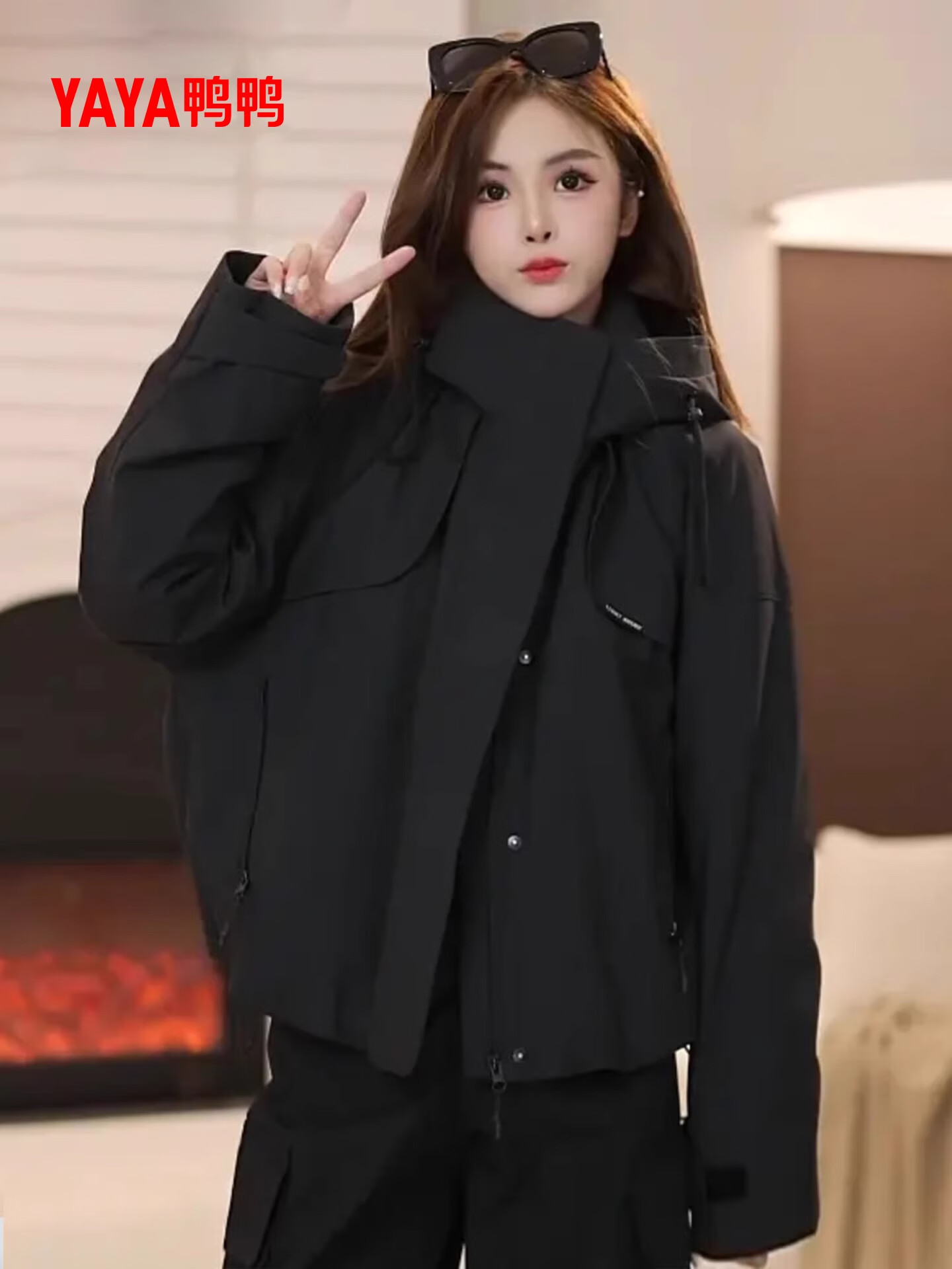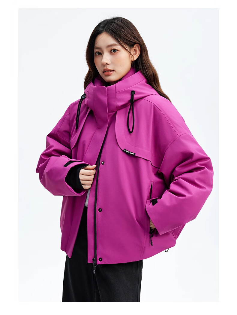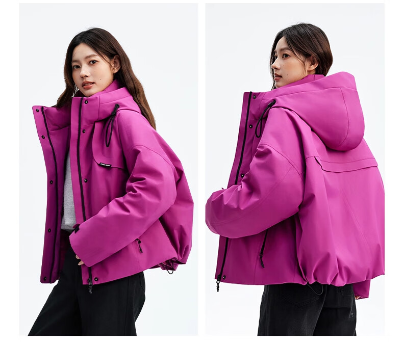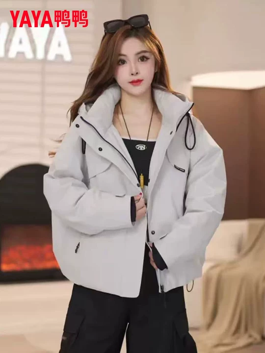 鸭鸭(YAYA)佟丽娅同款短款羽绒服女2025秋冬新款时尚休闲复古工装派克服外套 紫色 M (160)