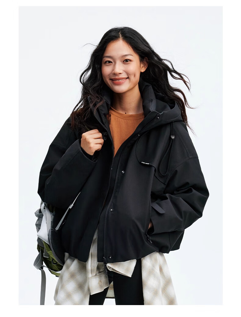 真维斯(Jeanswest)男士冬季羽绒服美式复古立领上衣青少年加绒加厚宽松大码短款外套