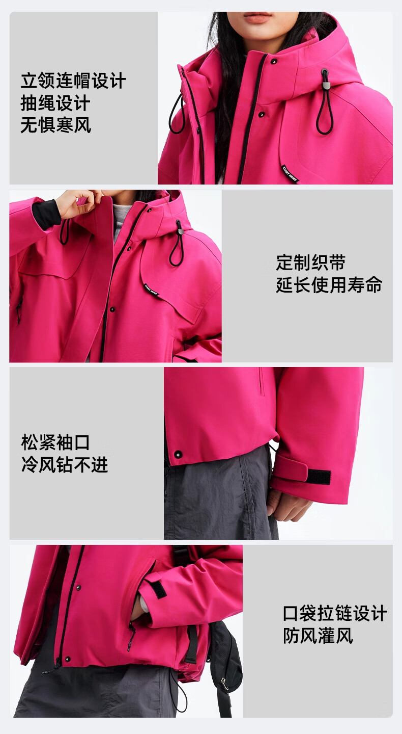 雪中飞山系羽绒内胆冲锋衣女25冬季中长款三合一连帽户外外套3606 云雾白 S (165/84A)