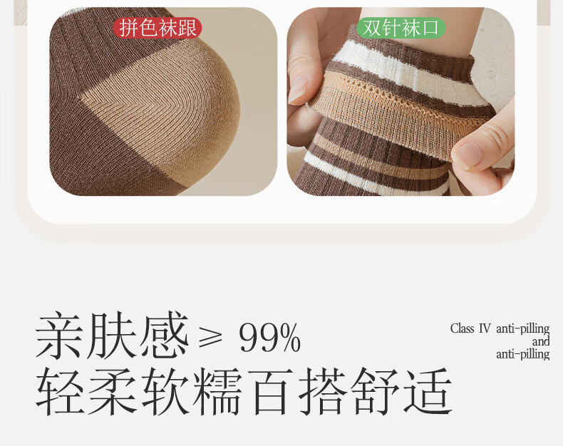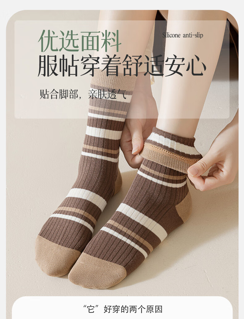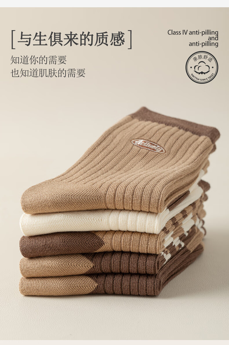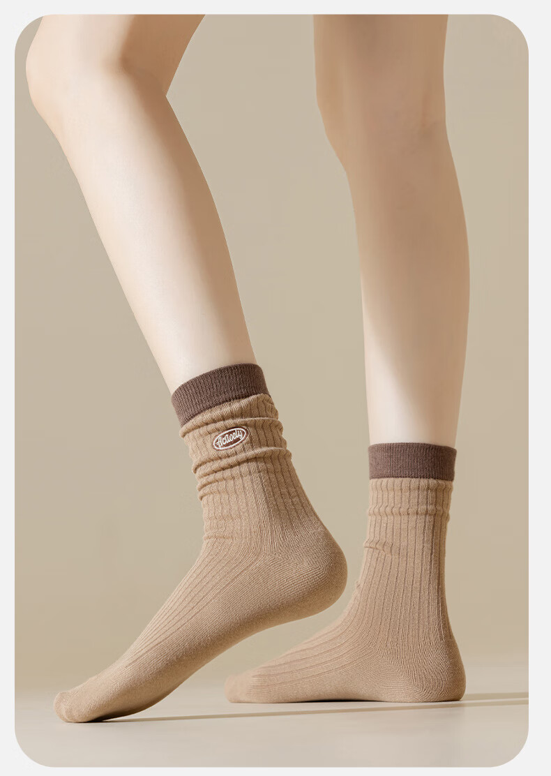 宜而爽美拉德堆堆袜子女中筒袜秋冬款韩系可爱女士长筒袜 款式一 5双