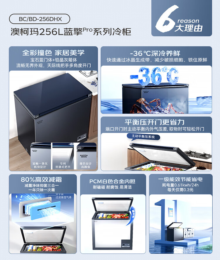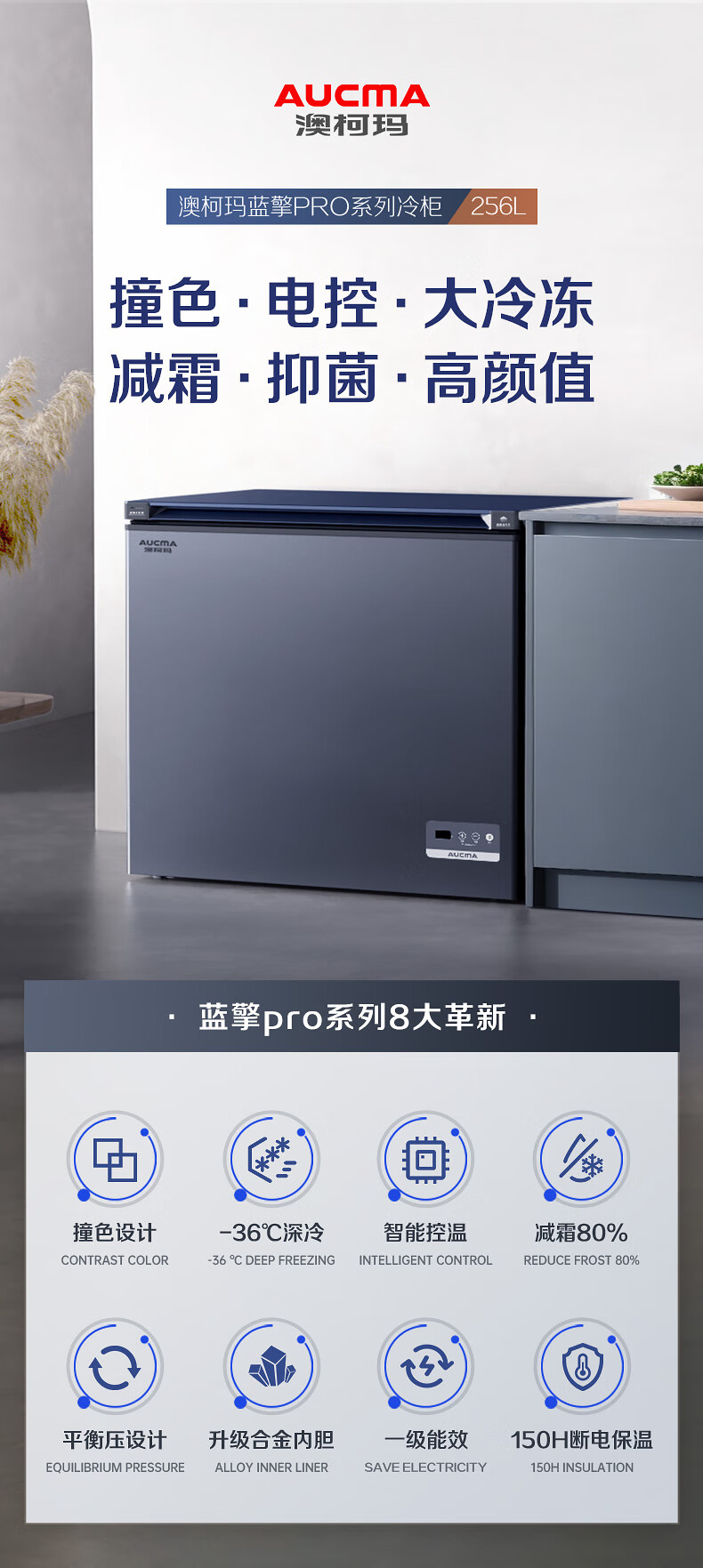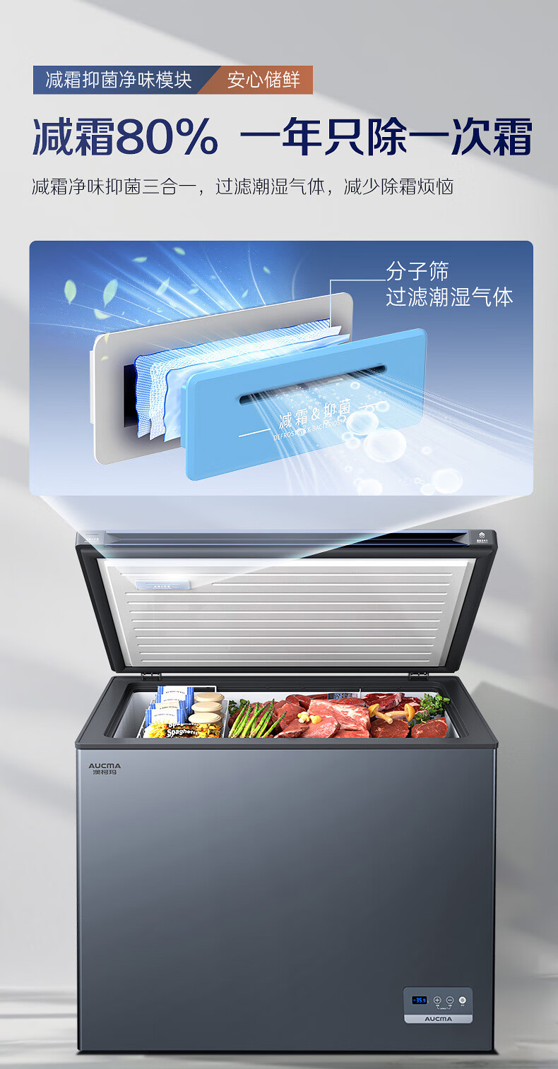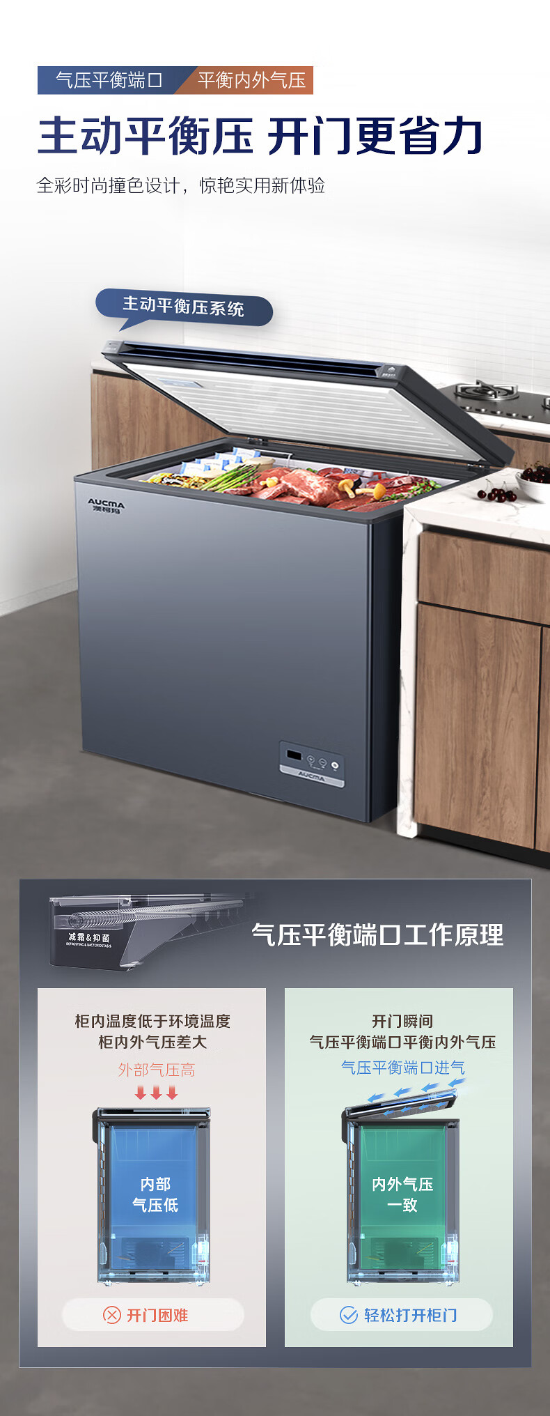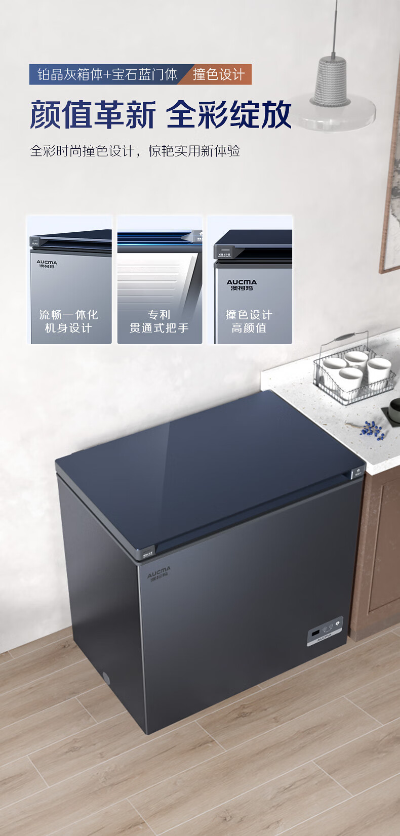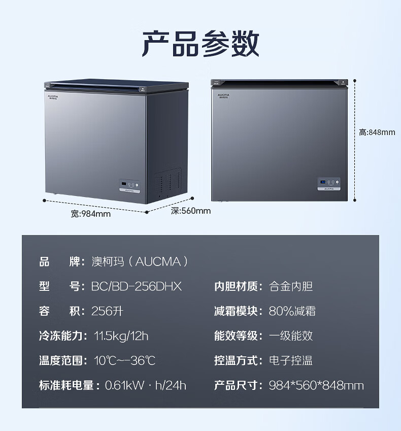 澳柯玛(AUCMA)蓝擎系列256升单温家用减霜小冰柜冷藏柜冷冻柜超低温电控卧式冰箱一级能效 BC/BD-256DHX国家补贴