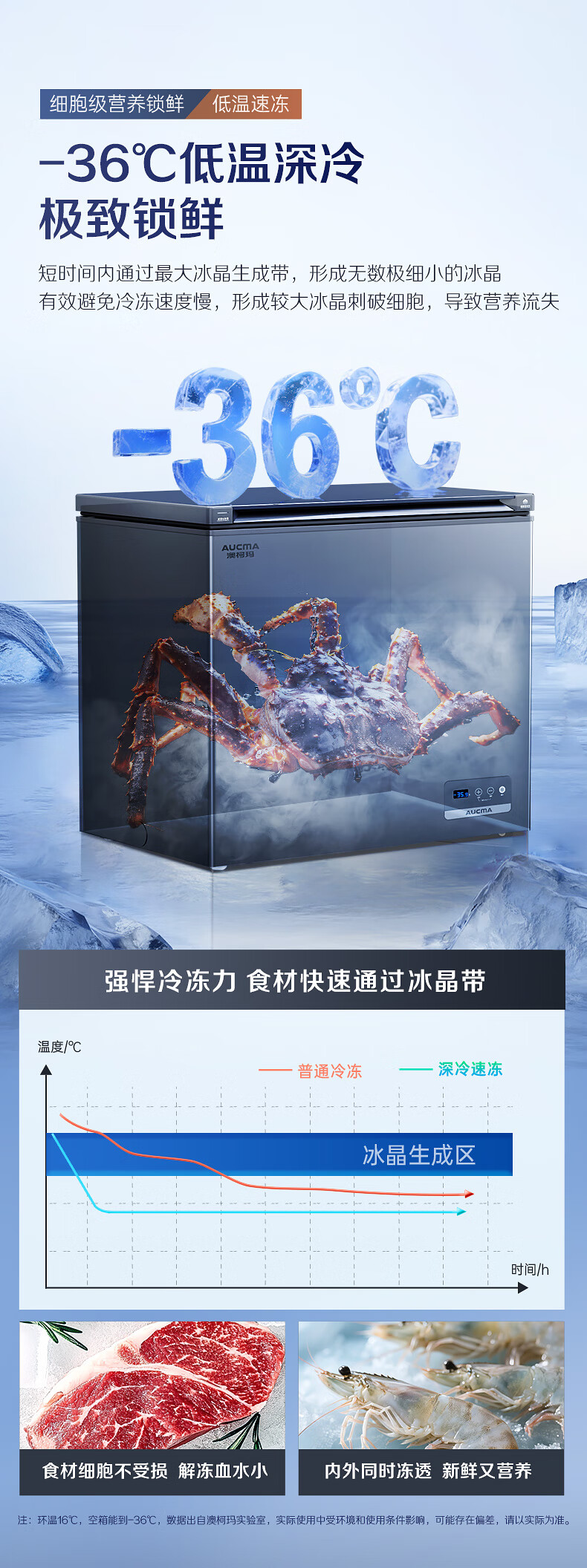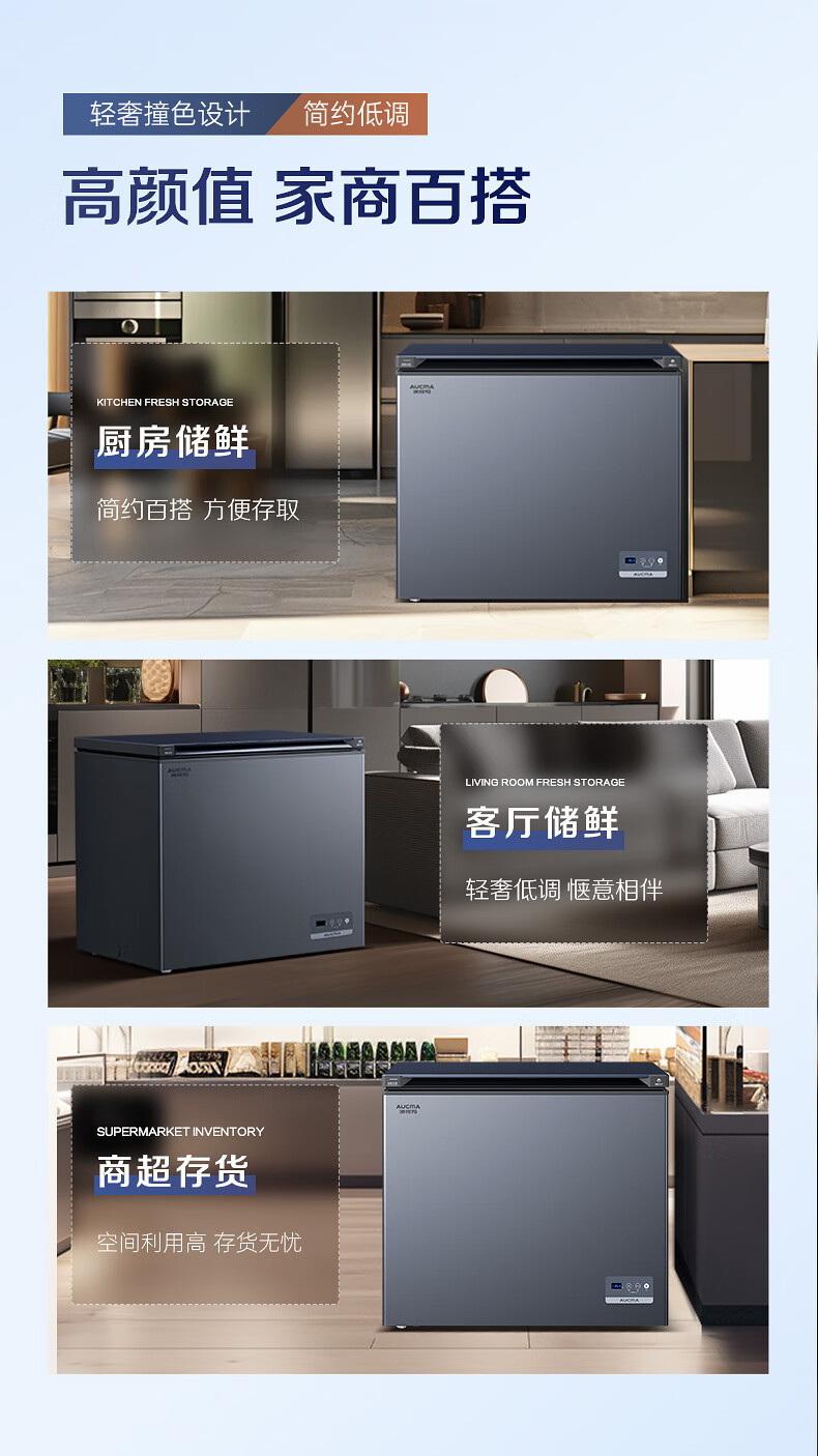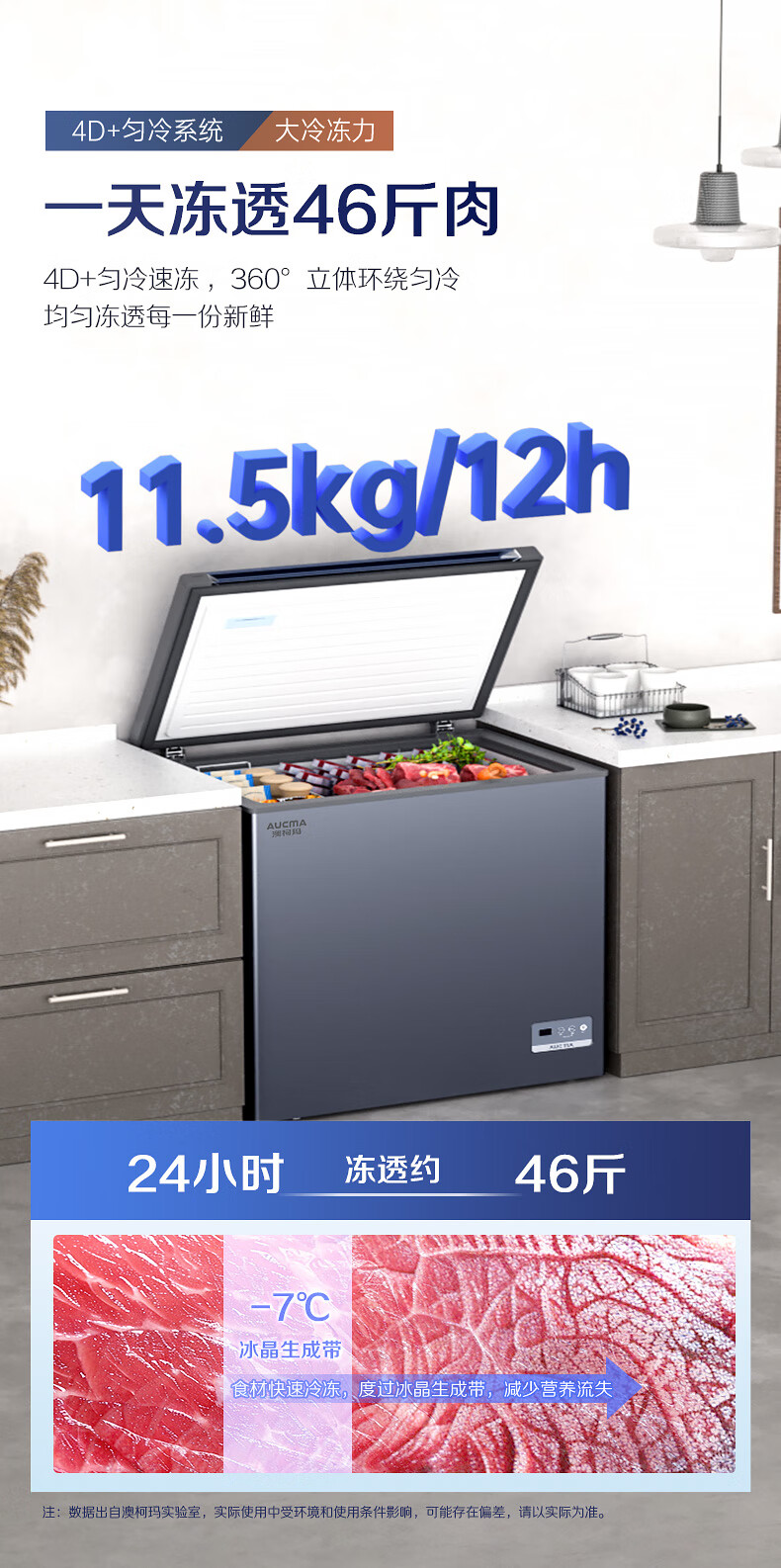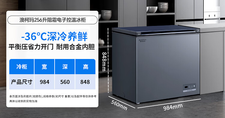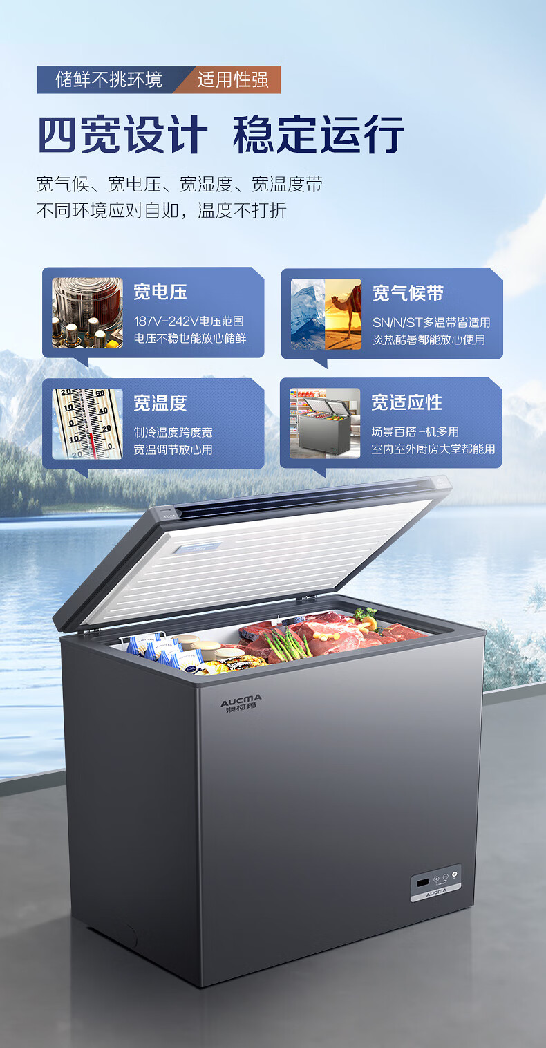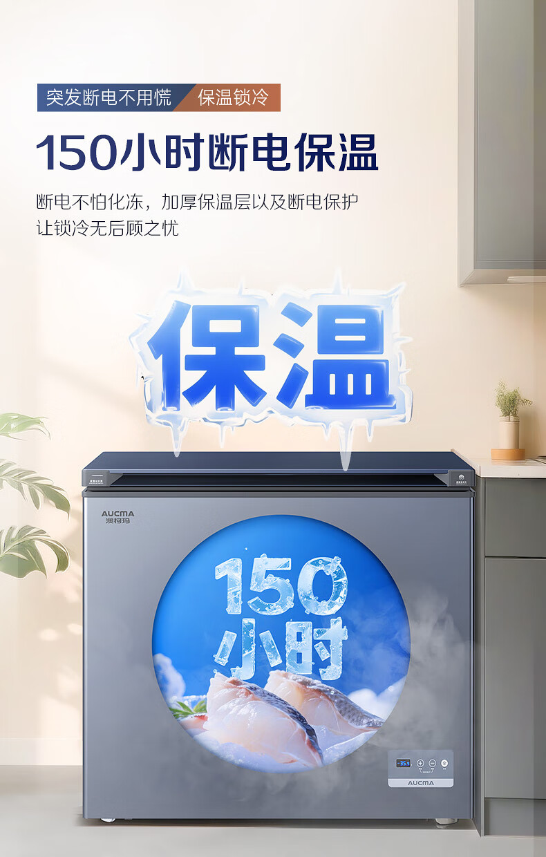 澳柯玛(AUCMA)蓝擎系列256升单温家用减霜小冰柜冷藏柜冷冻柜超低温电控卧式冰箱一级能效 BC/BD-256DHX国家补贴