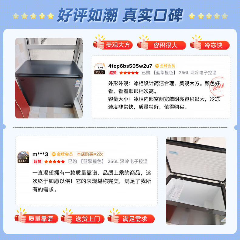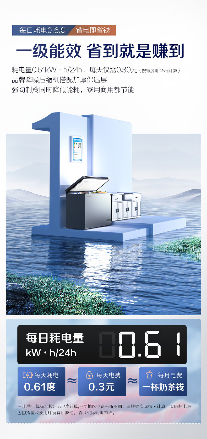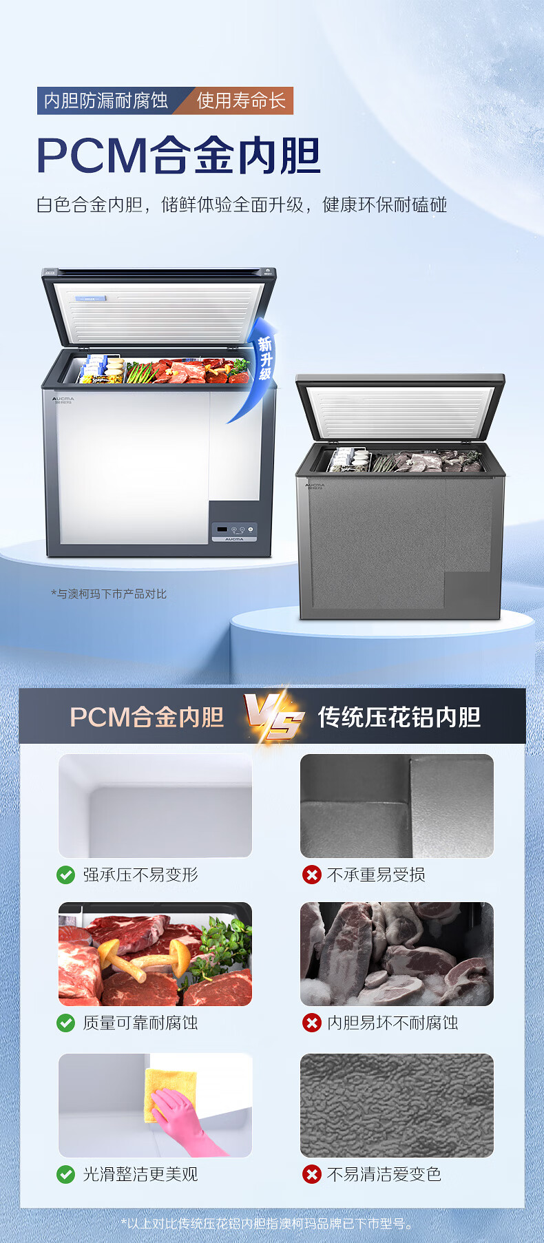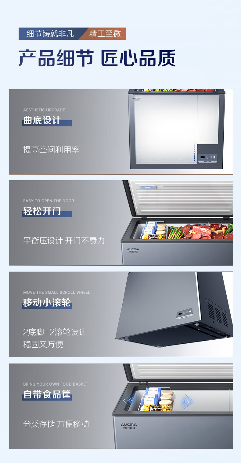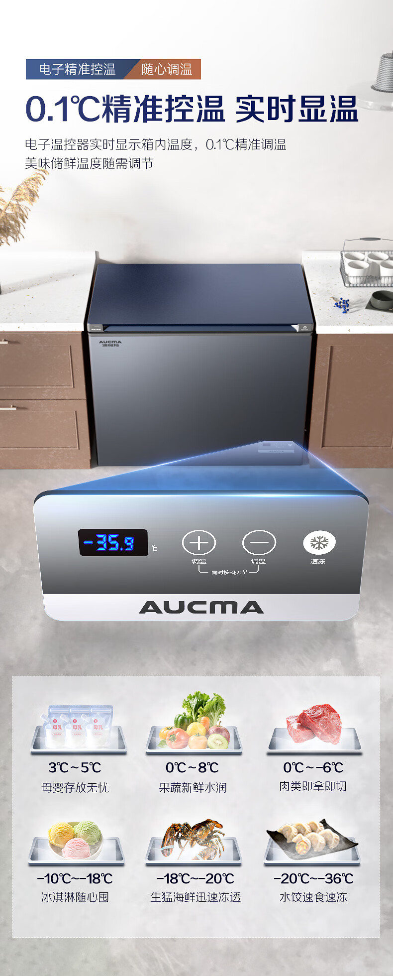 澳柯玛(AUCMA)蓝擎系列256升单温家用减霜小冰柜冷藏柜冷冻柜超低温电控卧式冰箱一级能效 BC/BD-256DHX国家补贴