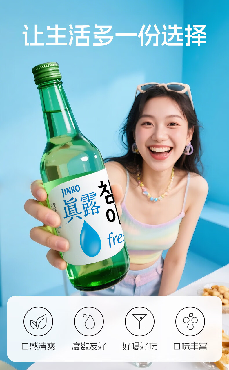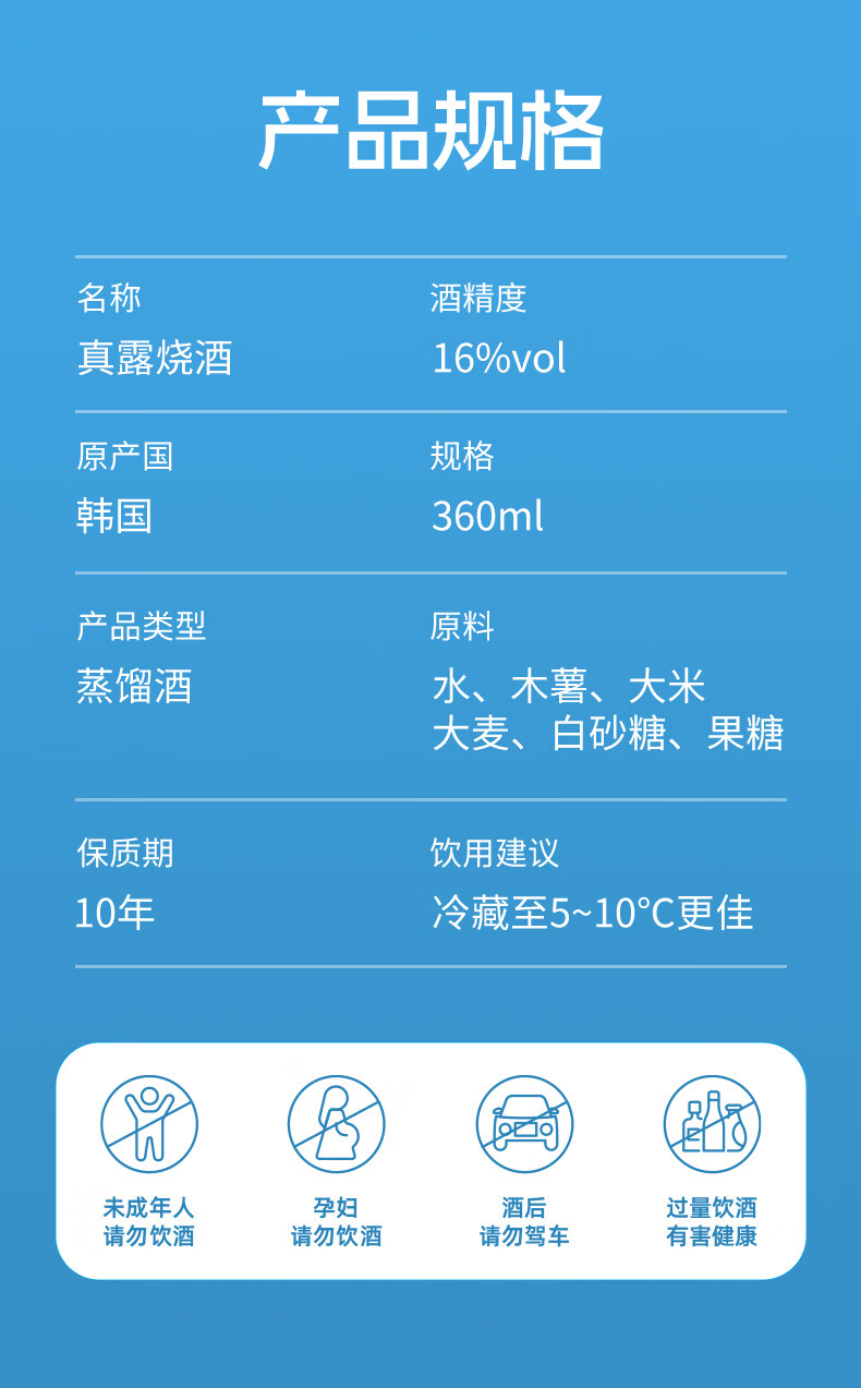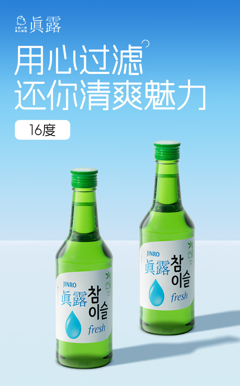 真露(JINRO)韩国烧酒 16度 360ml*20瓶 进口洋酒 清爽 低度微醺