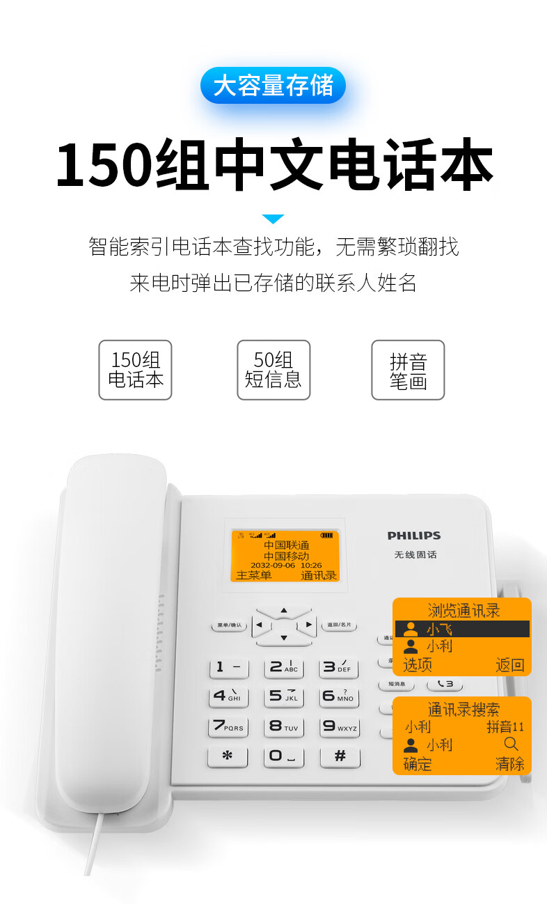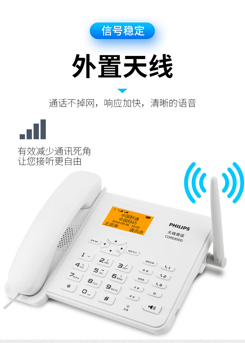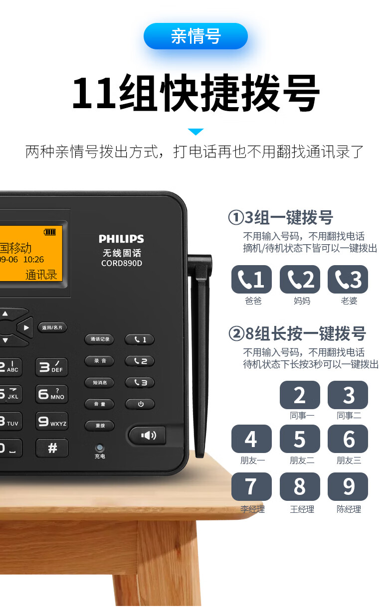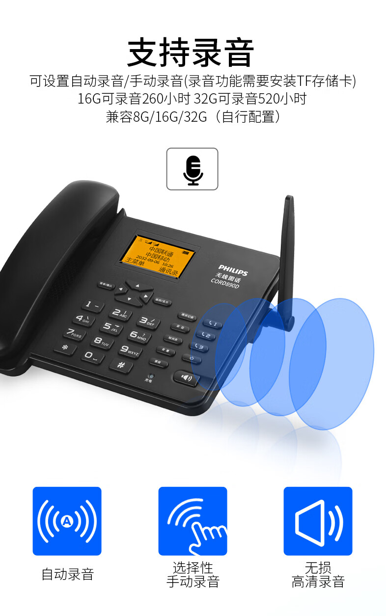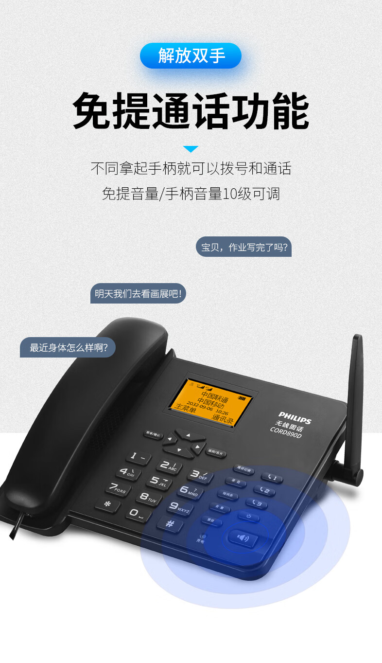 飞利浦(PHILIPS)全网通4G5G无线插卡固话电话座机电信移动联通广电4G网高清免提CORD890D 黑色
