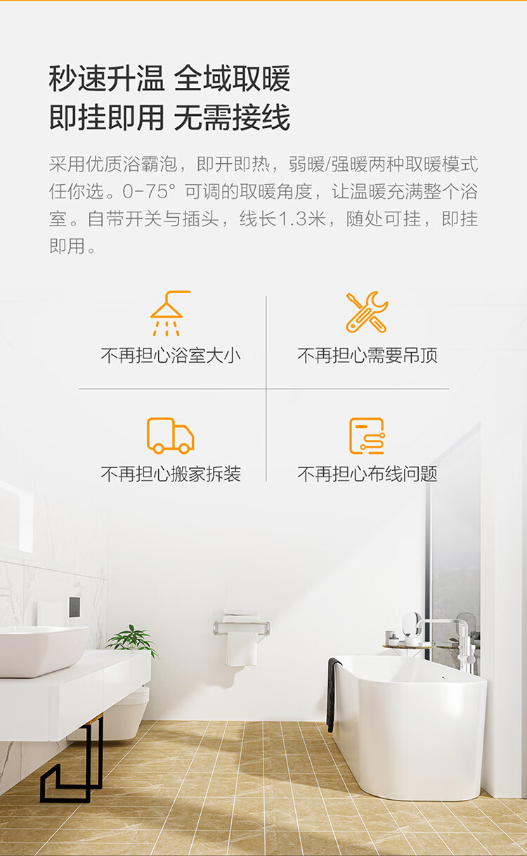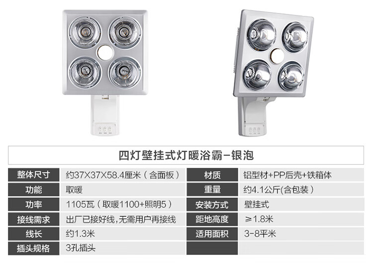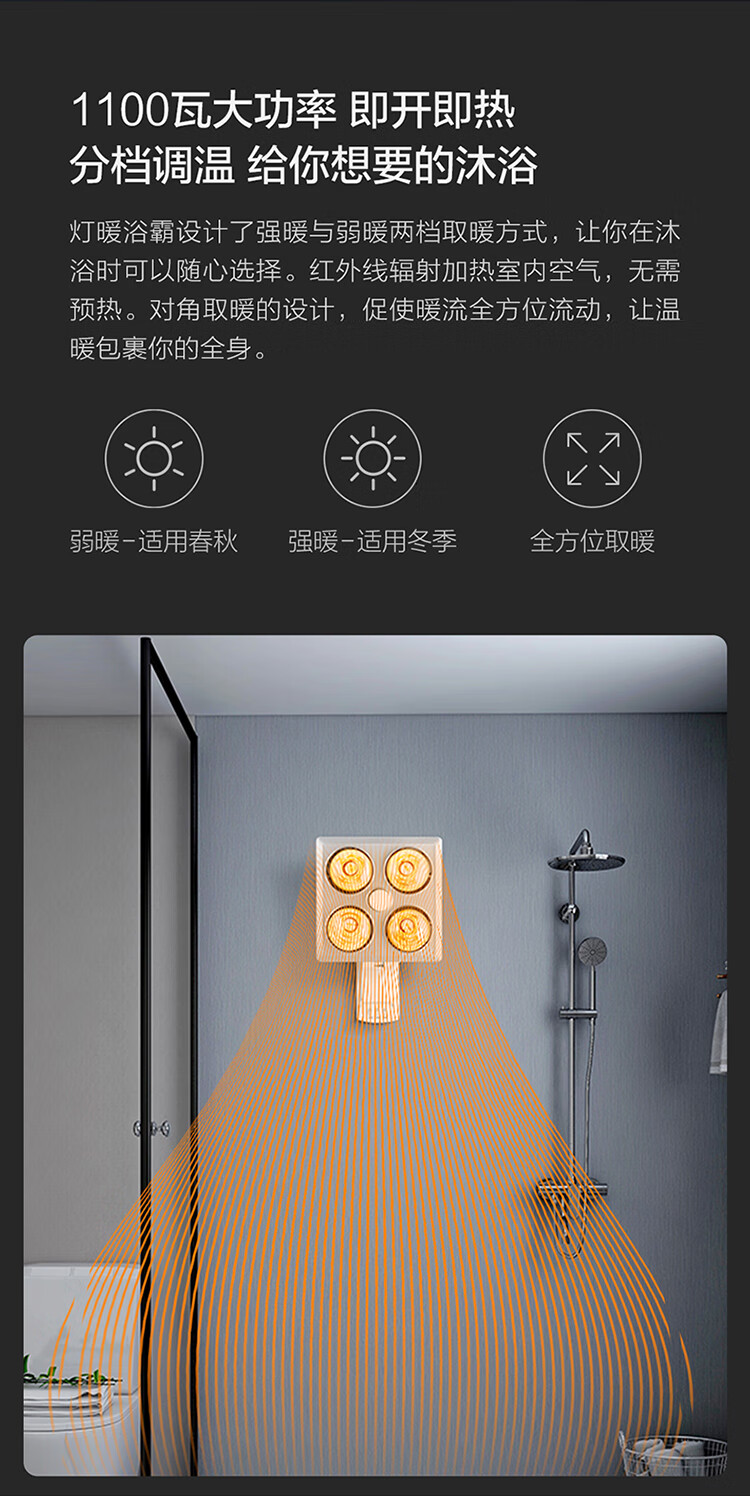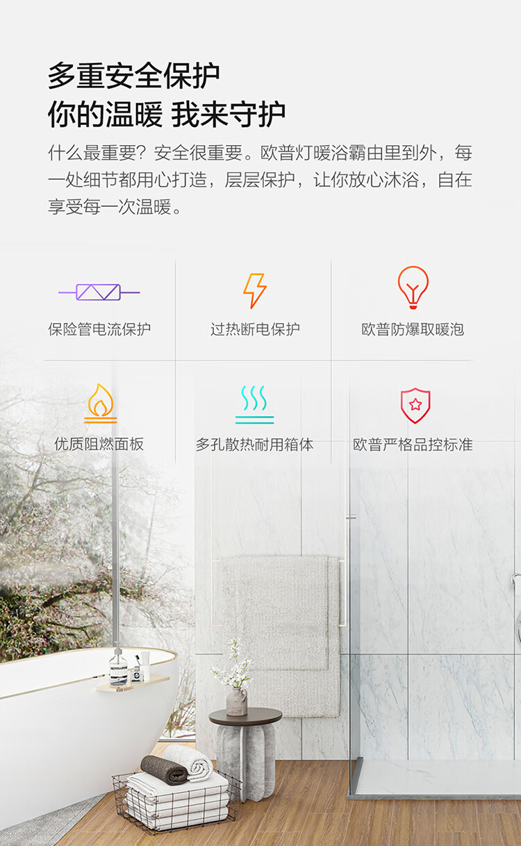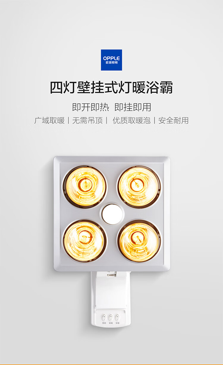 欧普(OPPLE)浴霸灯暖壁挂式暖灯卫生间浴室挂墙 壁挂四灯暖 MDR401