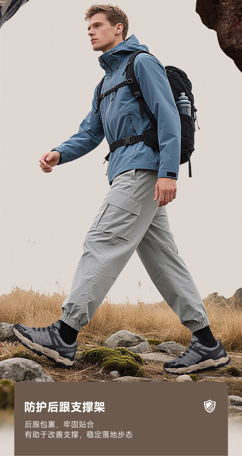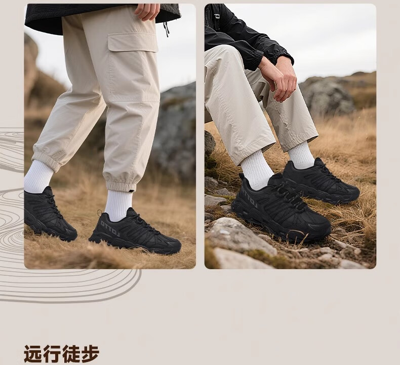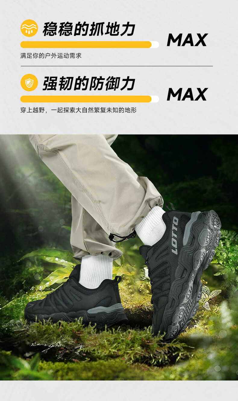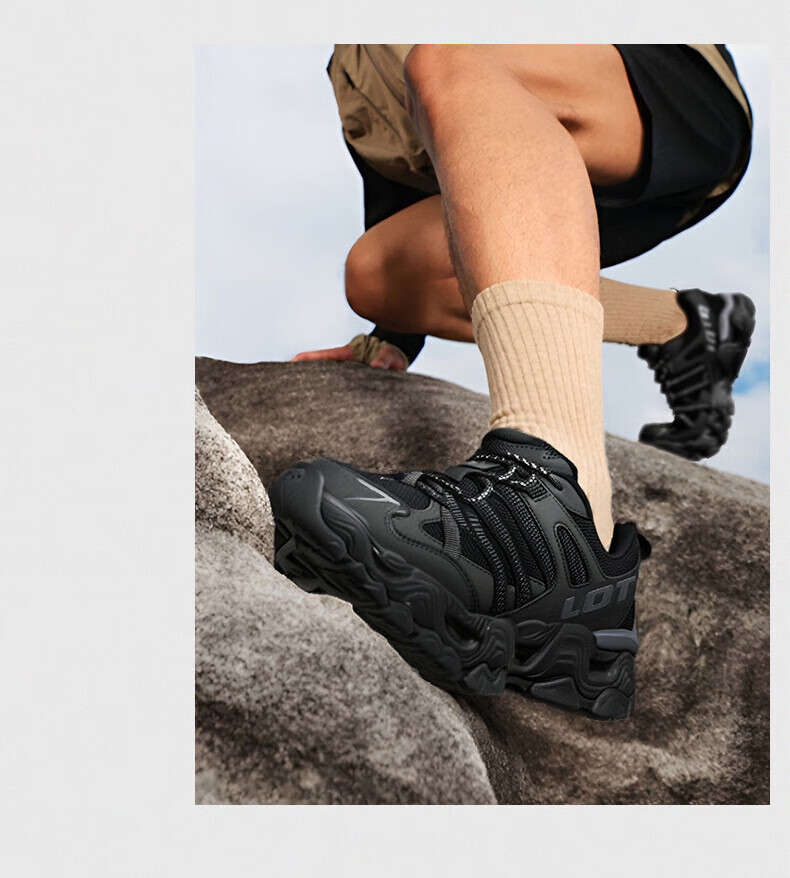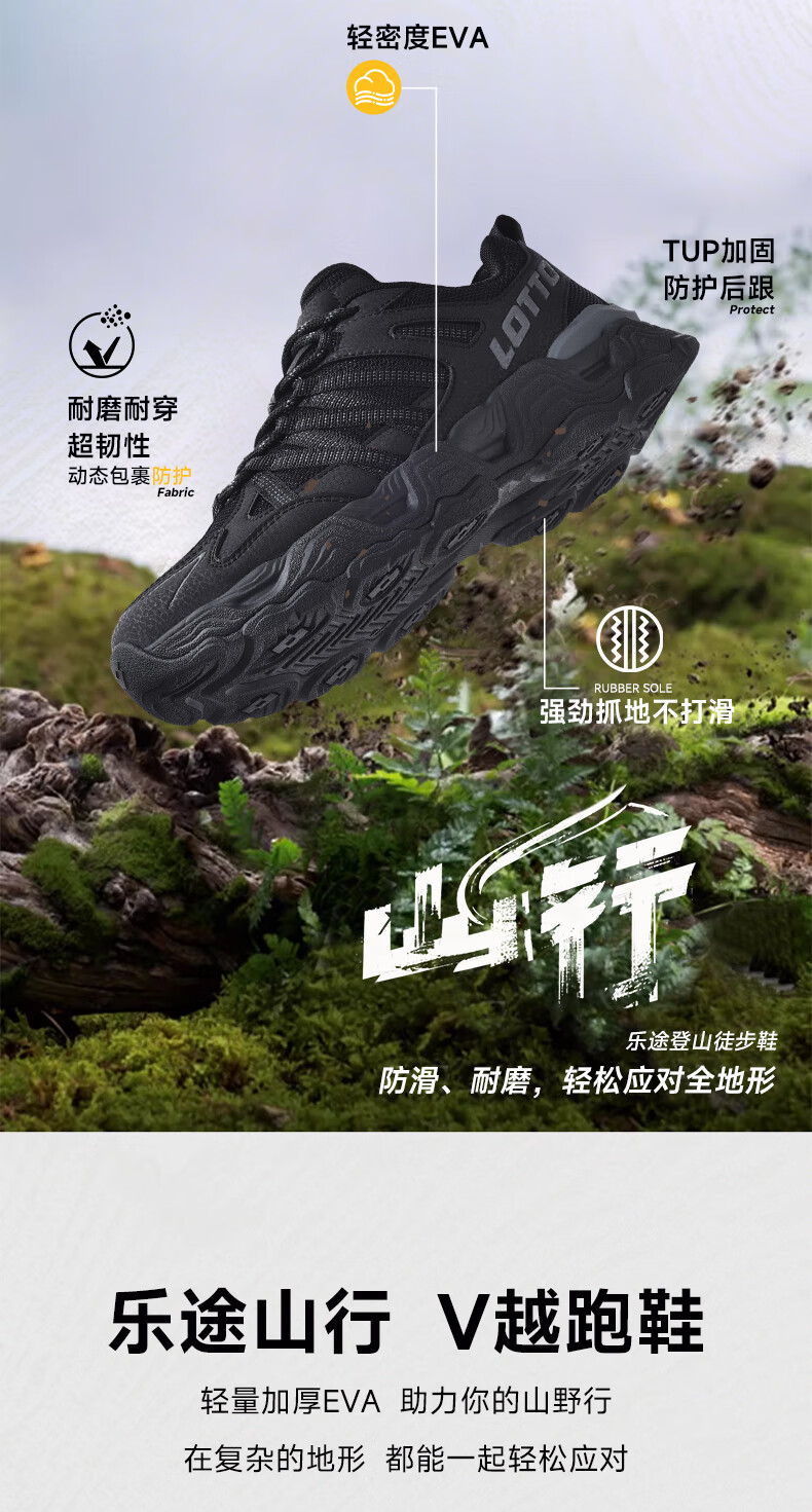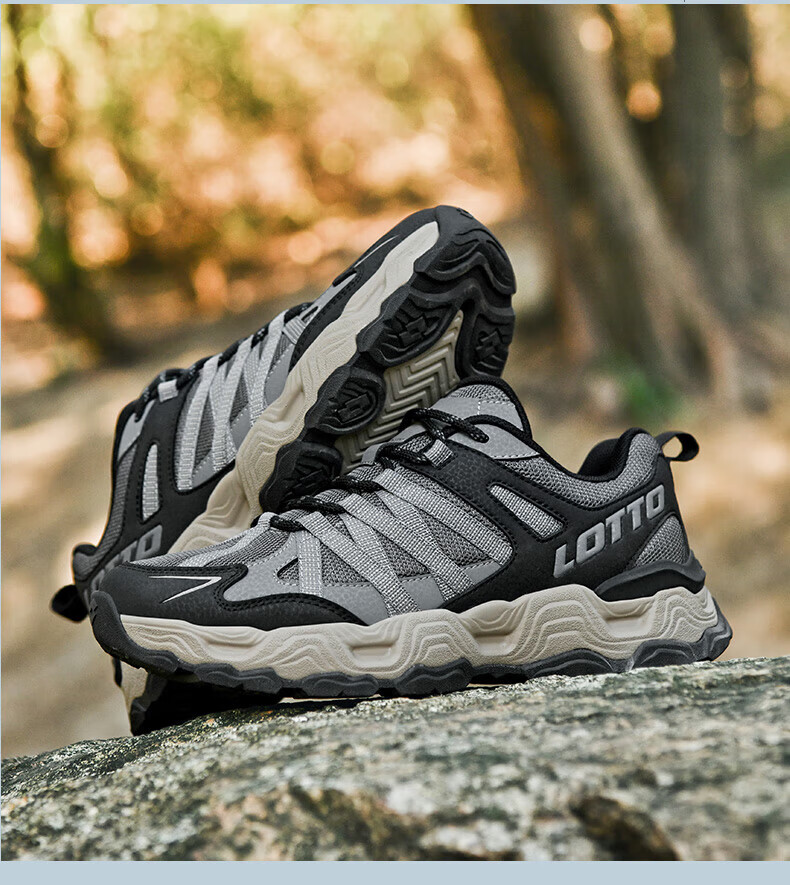 乐途登山鞋男鞋秋季皮面户外运动鞋防滑耐磨越野徒步鞋子男黑色43