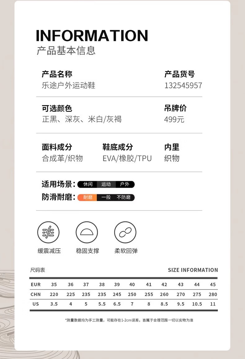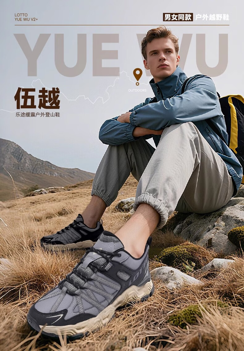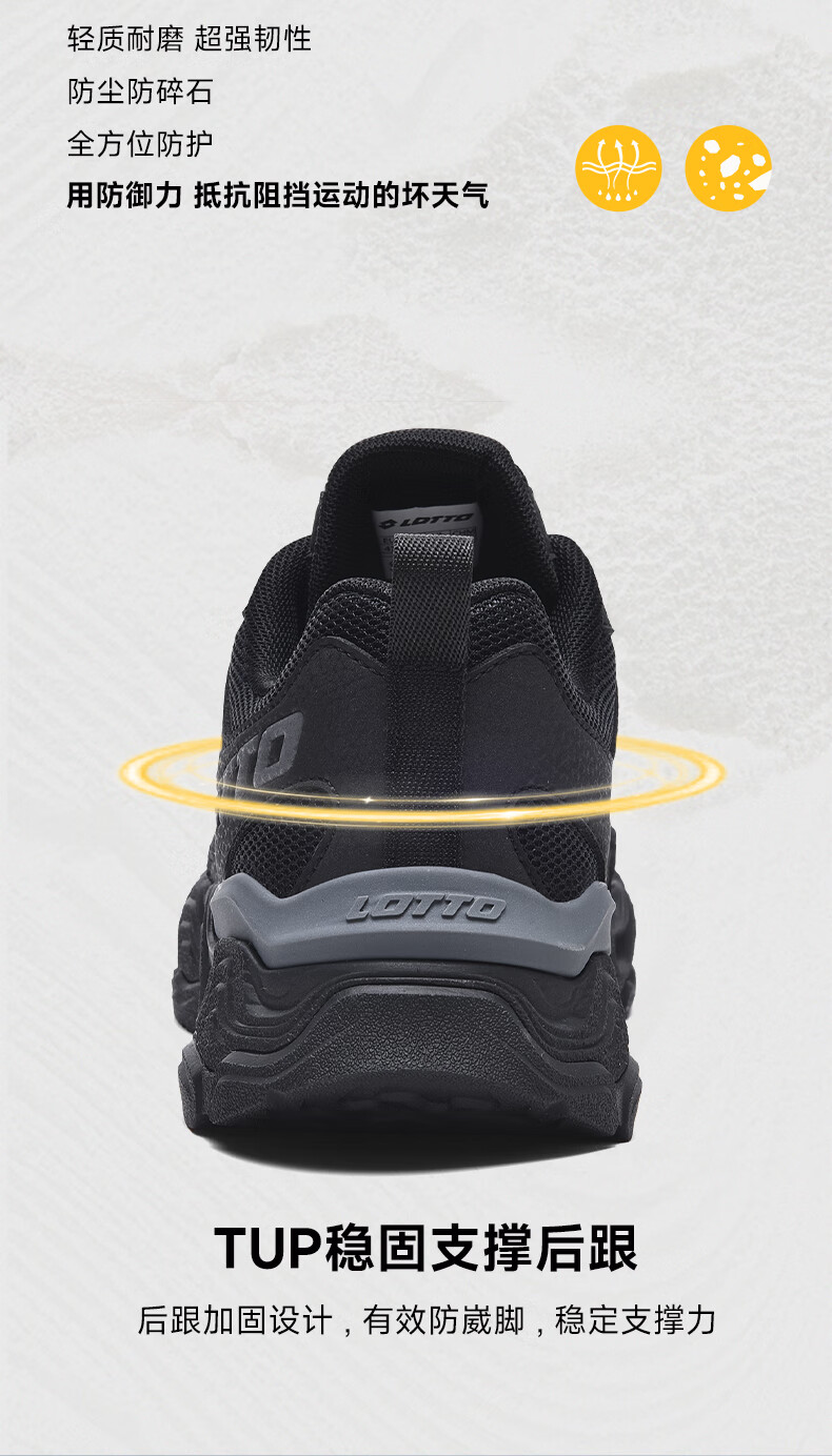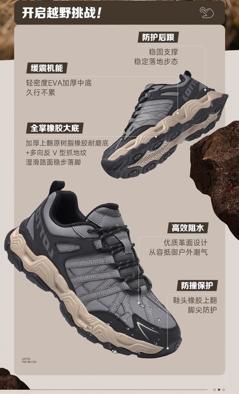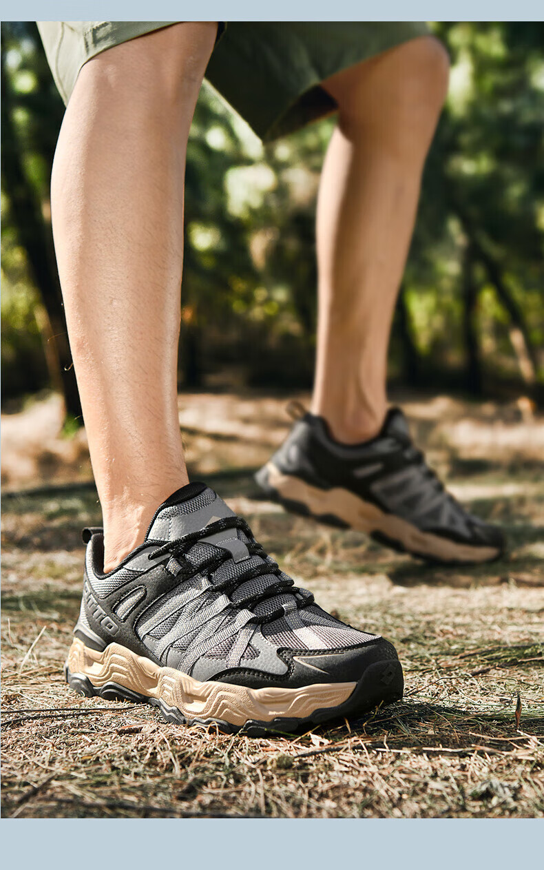 乐途登山鞋男鞋秋季皮面户外运动鞋防滑耐磨越野徒步鞋子男黑色43