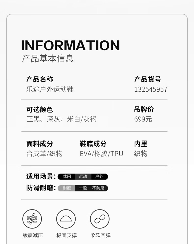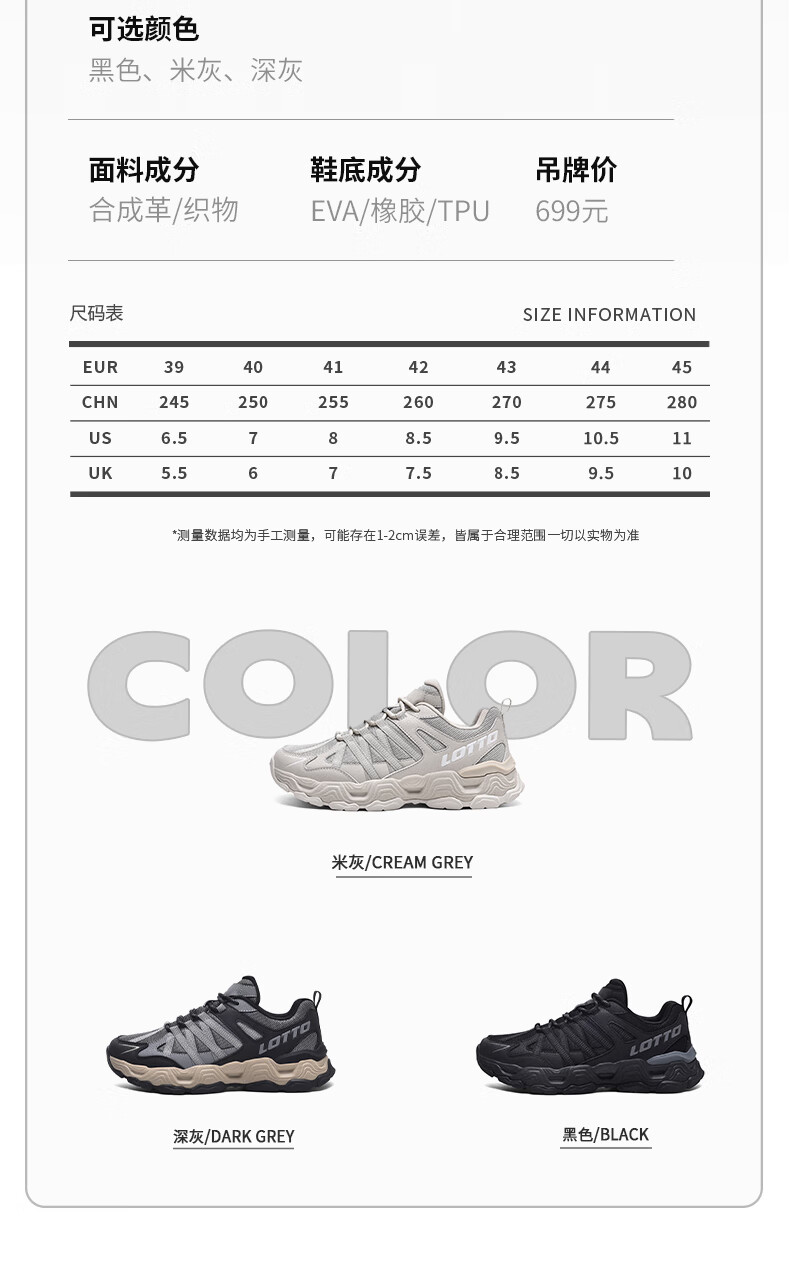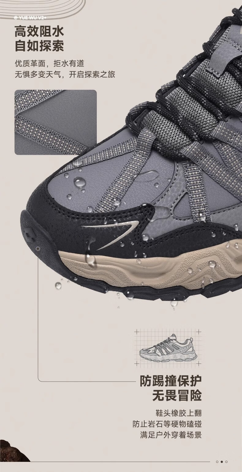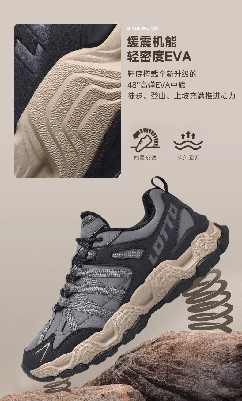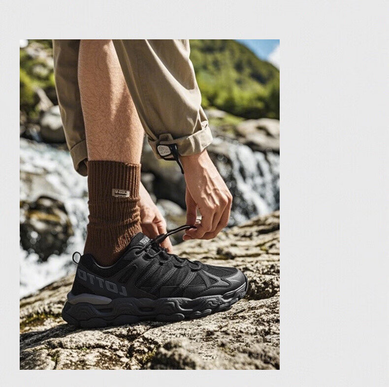 乐途登山鞋男鞋秋季皮面户外运动鞋防滑耐磨越野徒步鞋子男黑色43