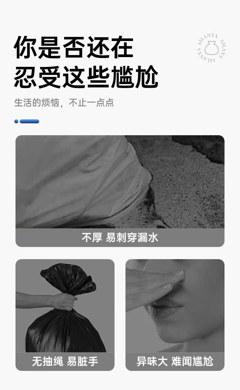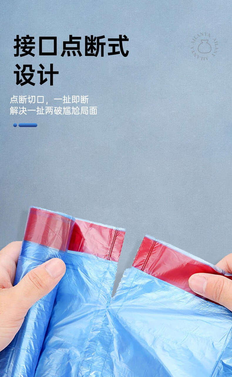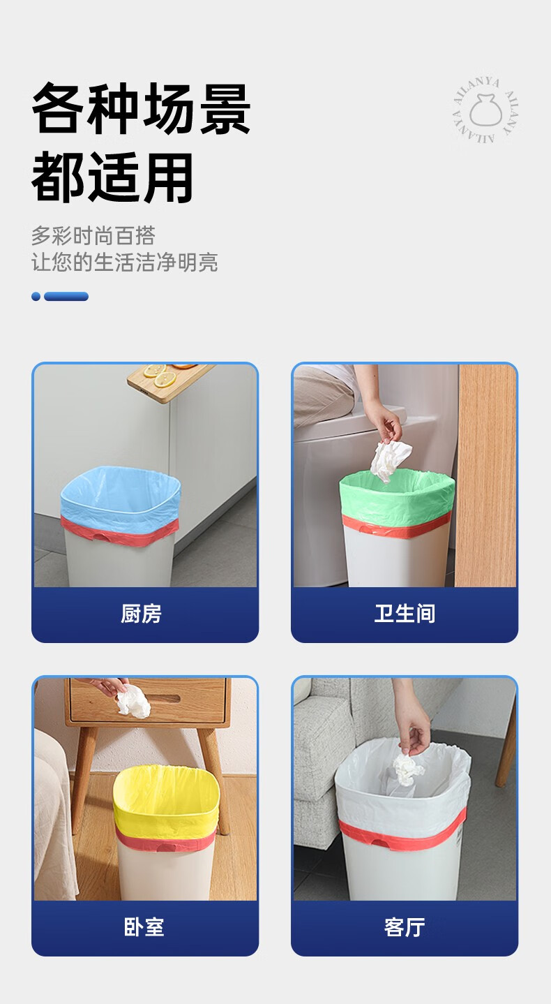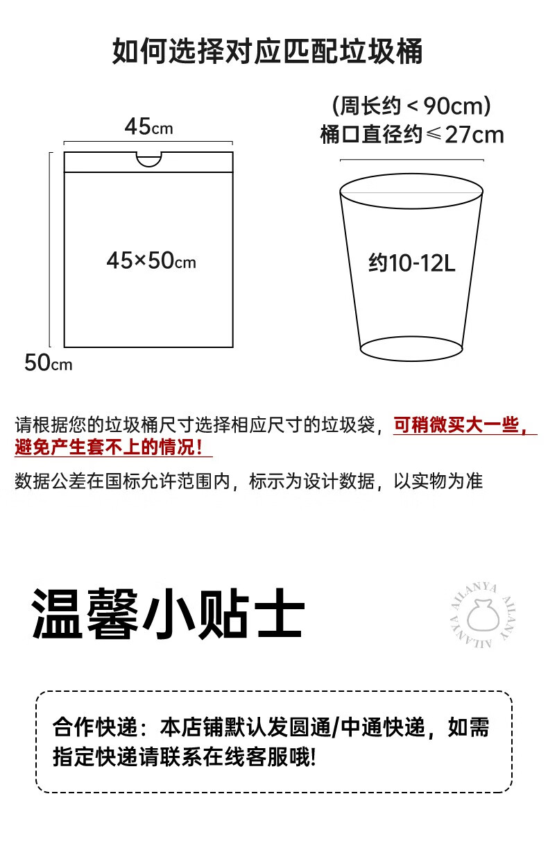 爱兰雅 垃圾袋抽绳自动收口塑料袋 家用办公厨房 加厚彩色混装随机发货 45*50抽绳150个装(10卷)