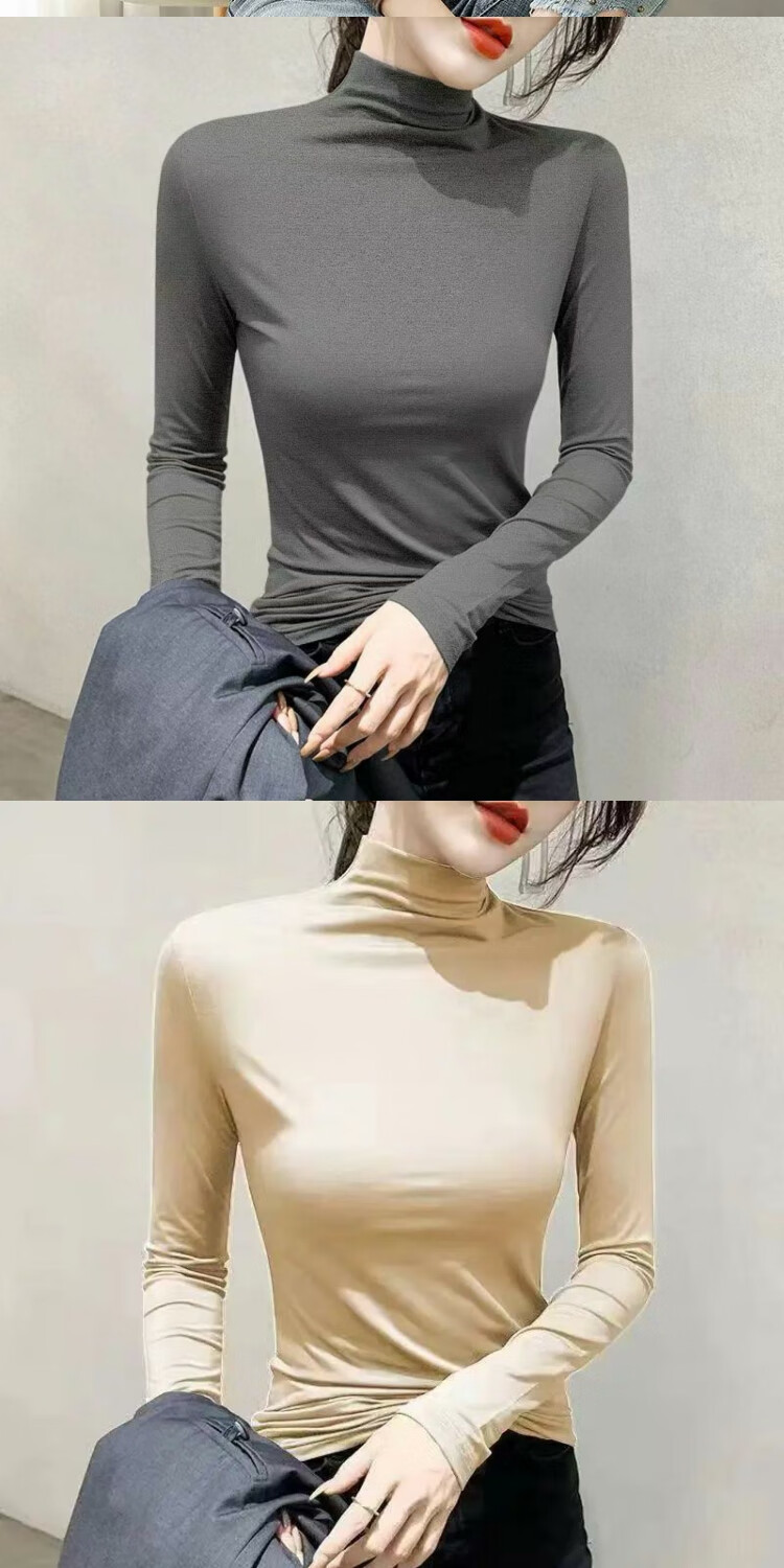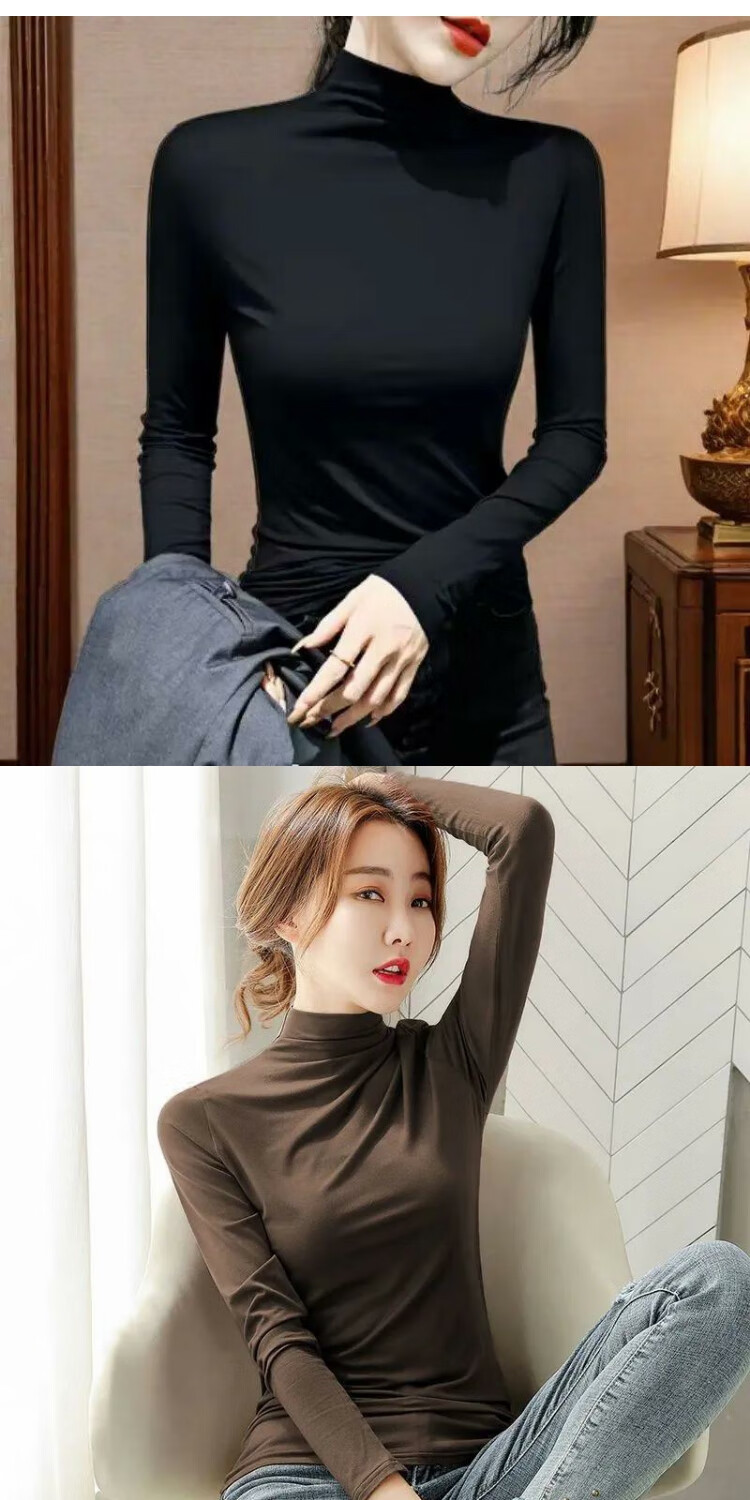 打底衫女秋冬薄款内搭保暖百搭紧身半高领上衣短款长袖 春秋薄款面膜衣打底衫【黑色】 均码 (适合80-120斤)