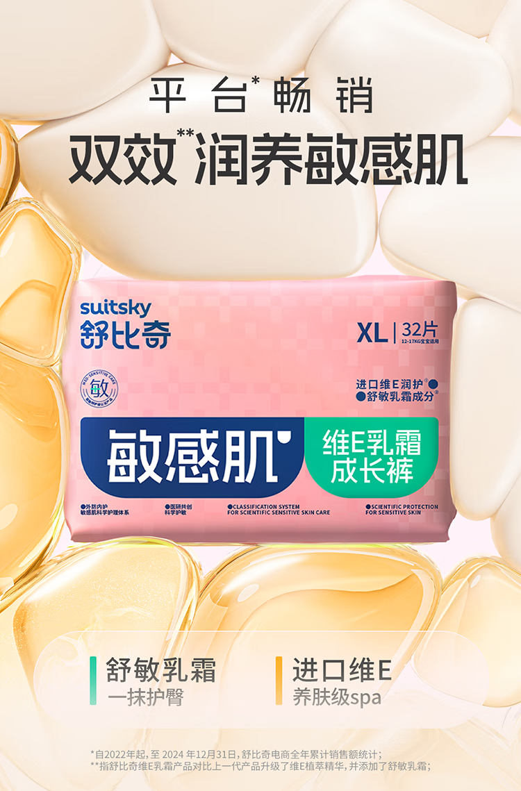舒比奇维E鲜润柔软拉拉裤XXL28片加加大码成长裤【品牌直供 安心品质】