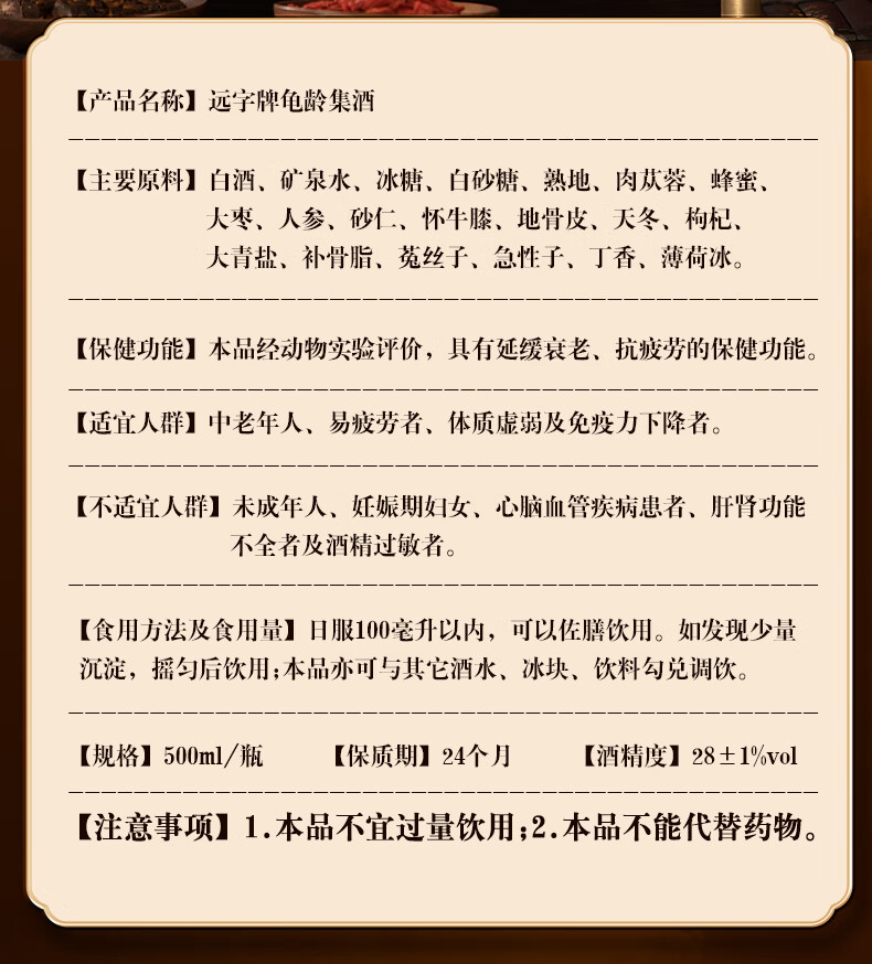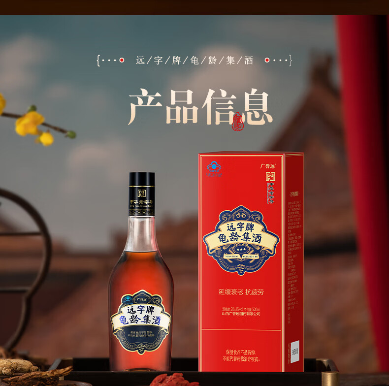 广誉远远字牌龟龄集酒保健酒中秋礼品 红宝石500ml*1瓶