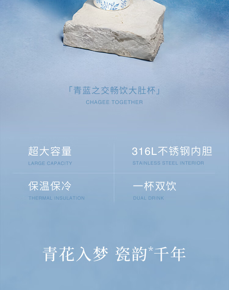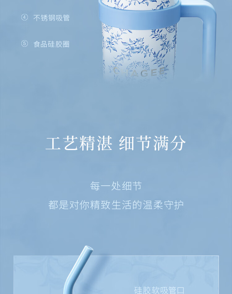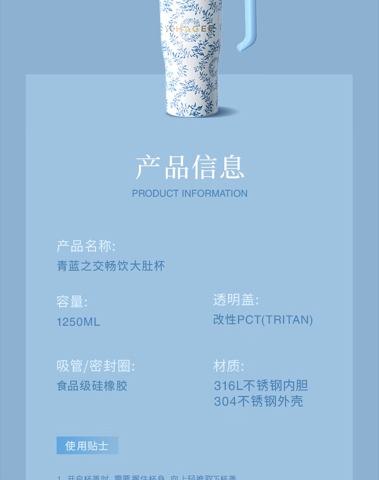 霸王茶姬(CHAGEE)冰霸杯保温杯咖啡杯水杯子茶杯吸管杯超大容量伴手礼物青蓝之交