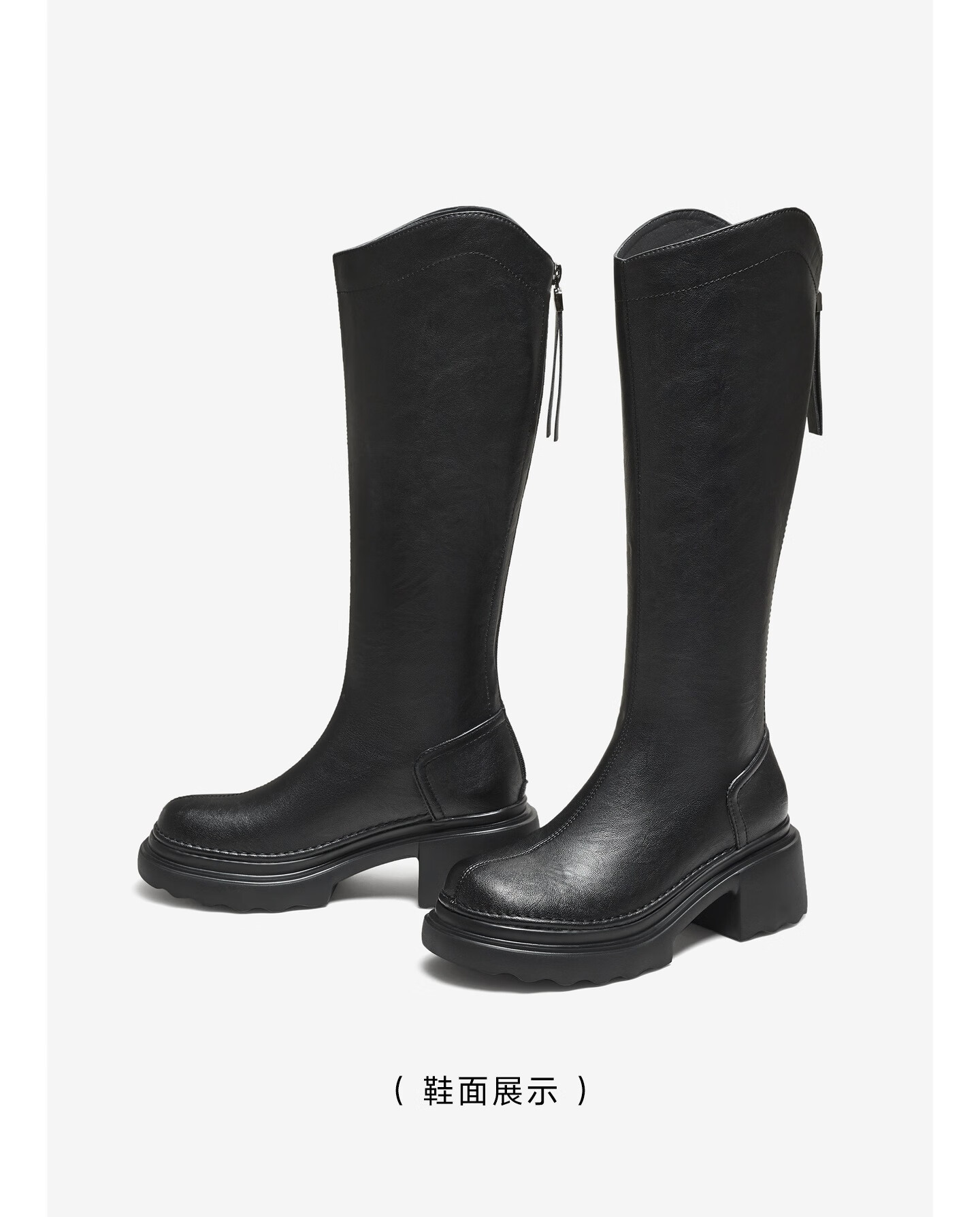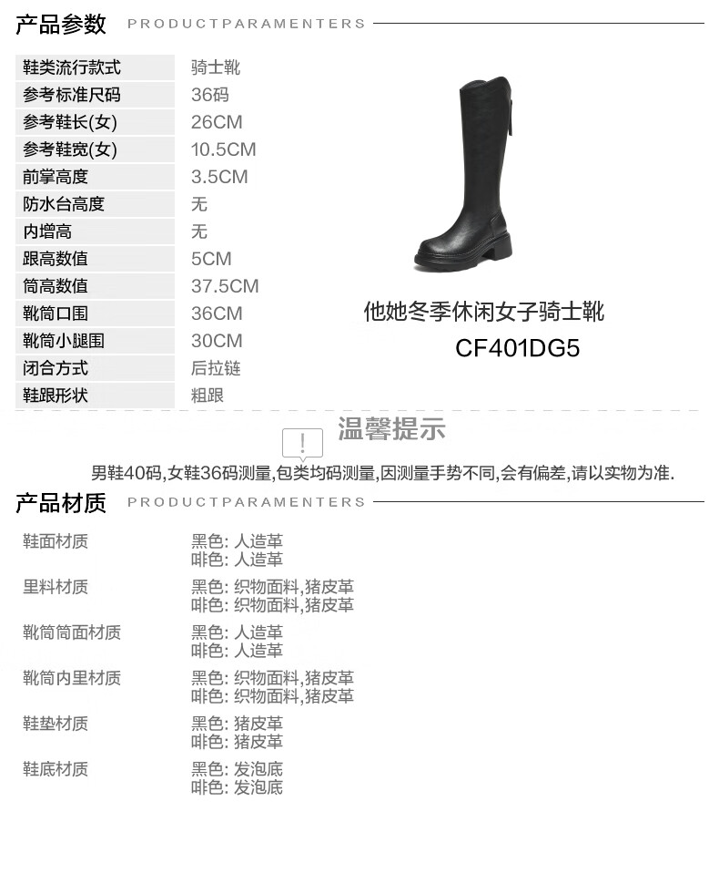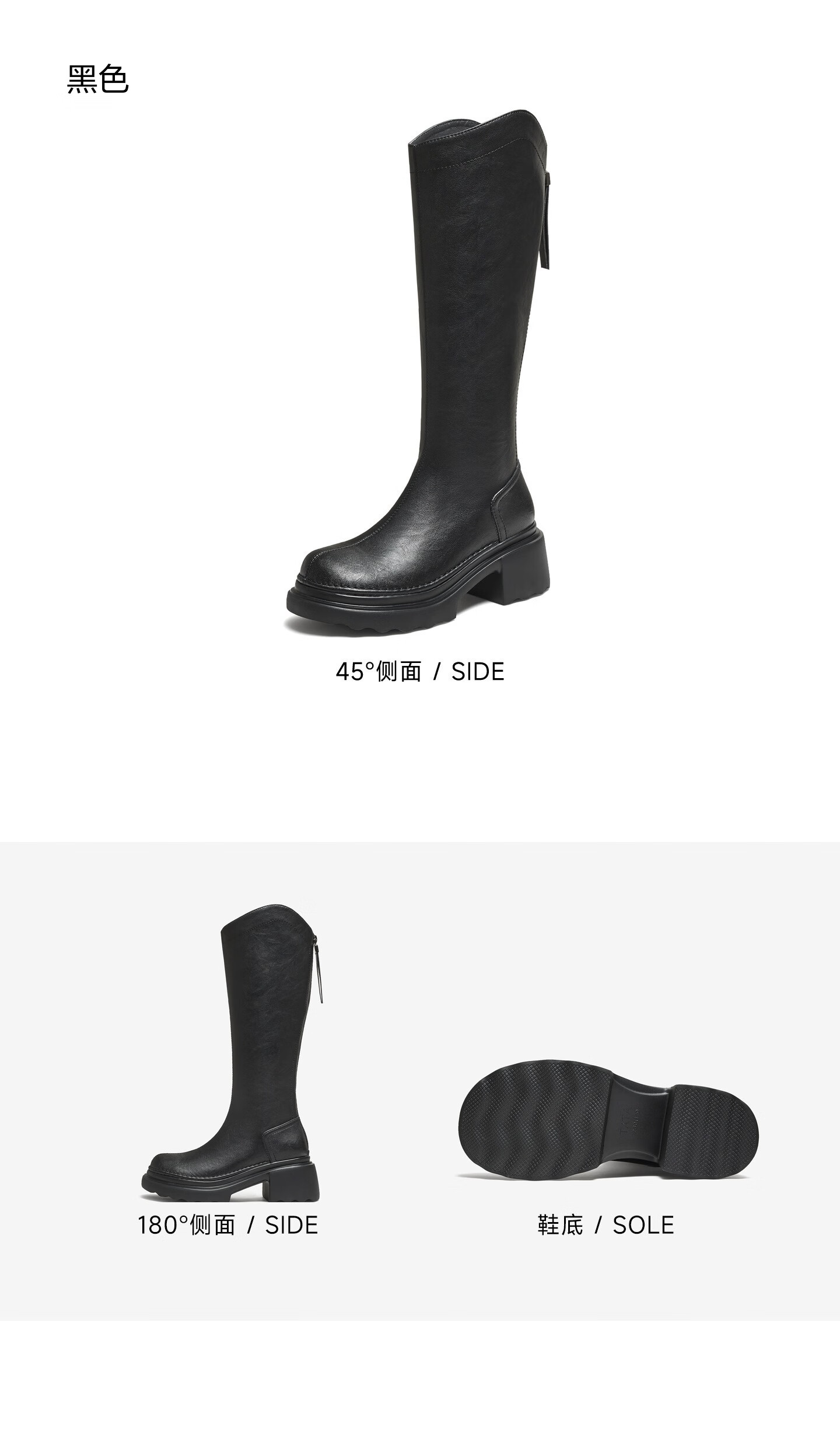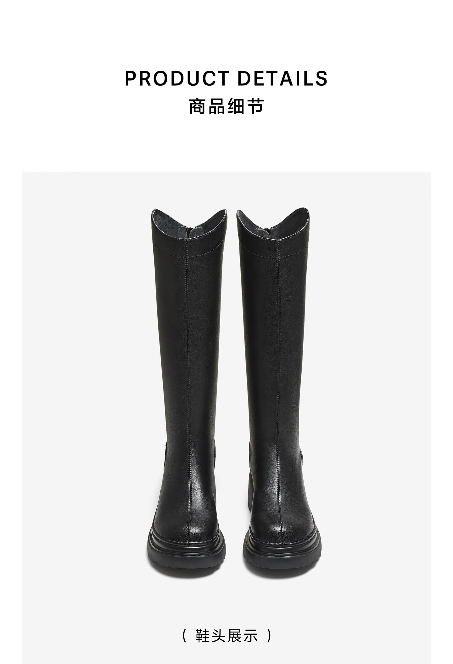 他她(TATA)长靴2025秋黑色靴子女骑士靴厚底显瘦增高长筒靴CF401DG5 黑色 34