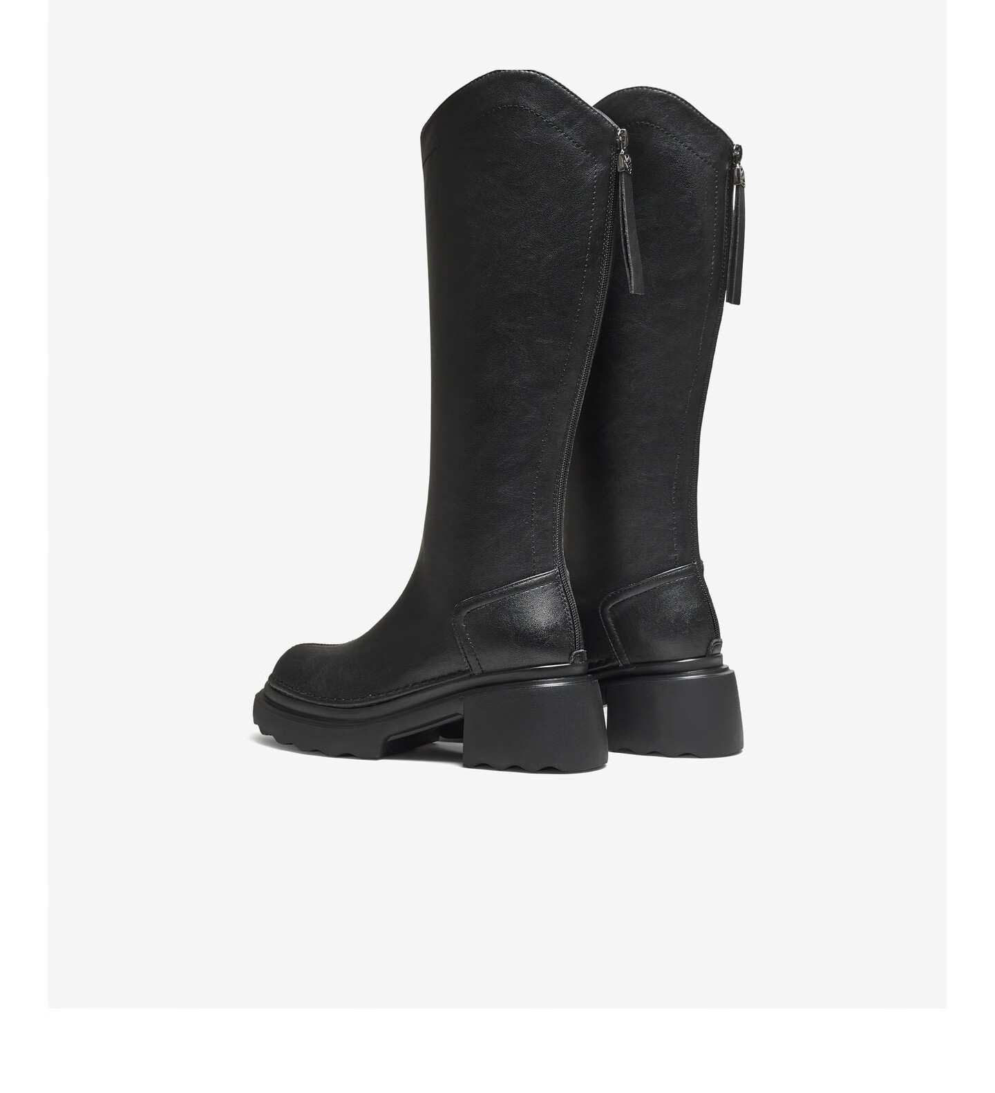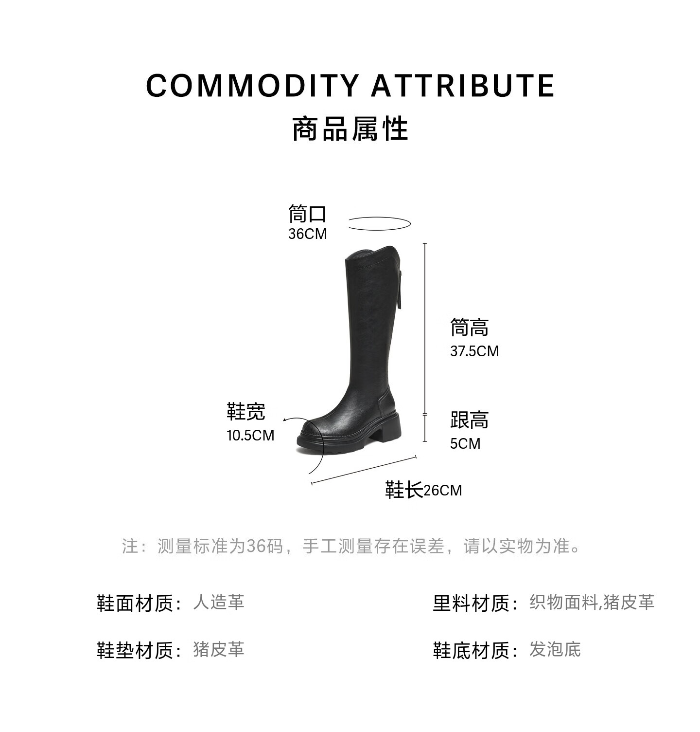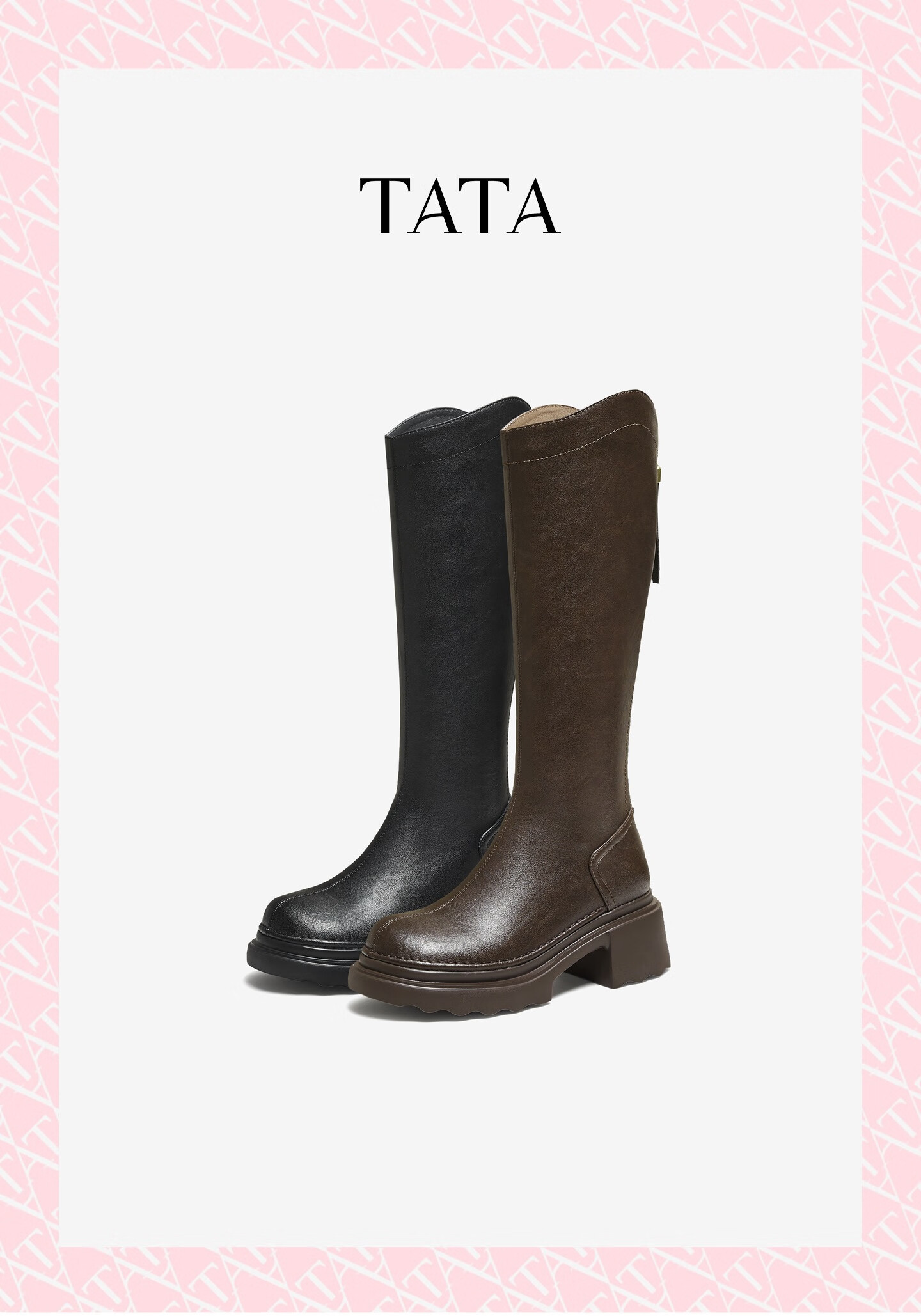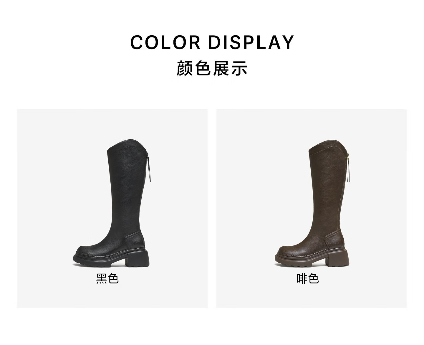 他她(TATA)长靴2025秋黑色靴子女骑士靴厚底显瘦增高长筒靴CF401DG5 黑色 34