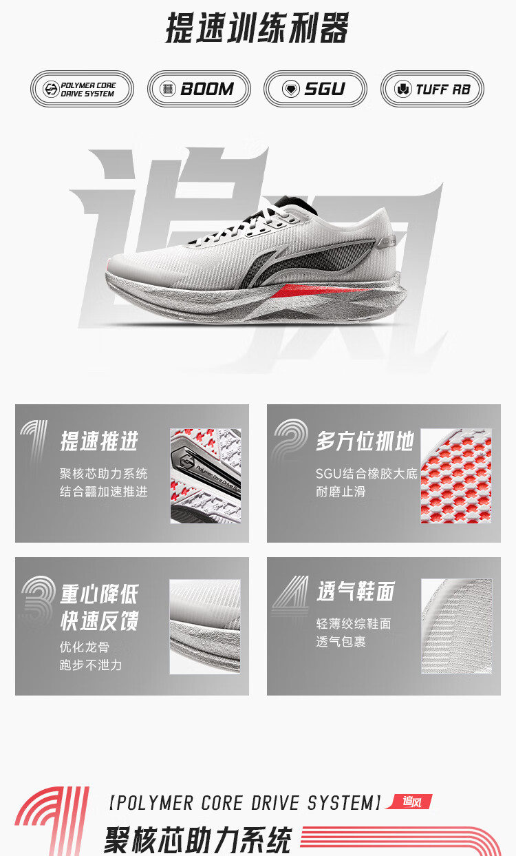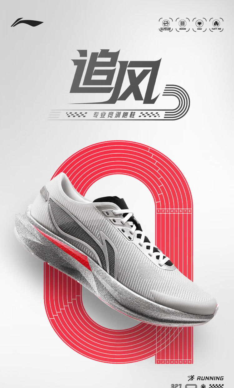 李宁追风|专业竞速训练跑鞋25新款男鞋透气体测跳绳运动鞋ARPV007