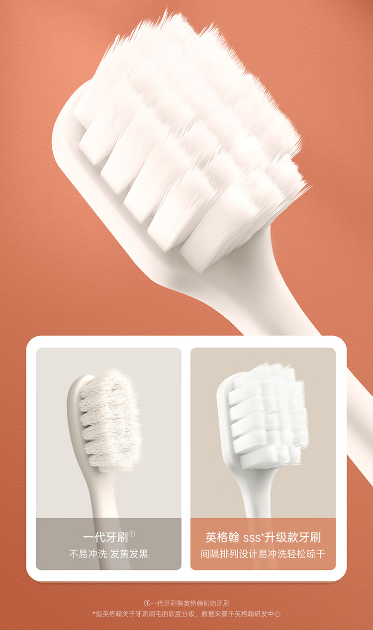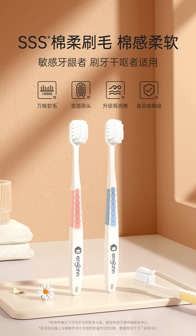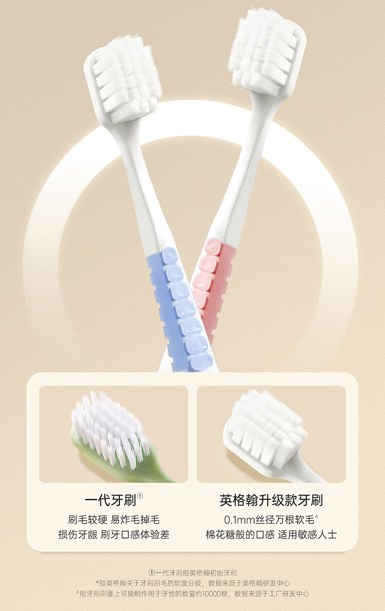 英格翰牙刷软毛成人万毛宽头月子孕妇专用超软家庭装家用2支(粉+蓝)