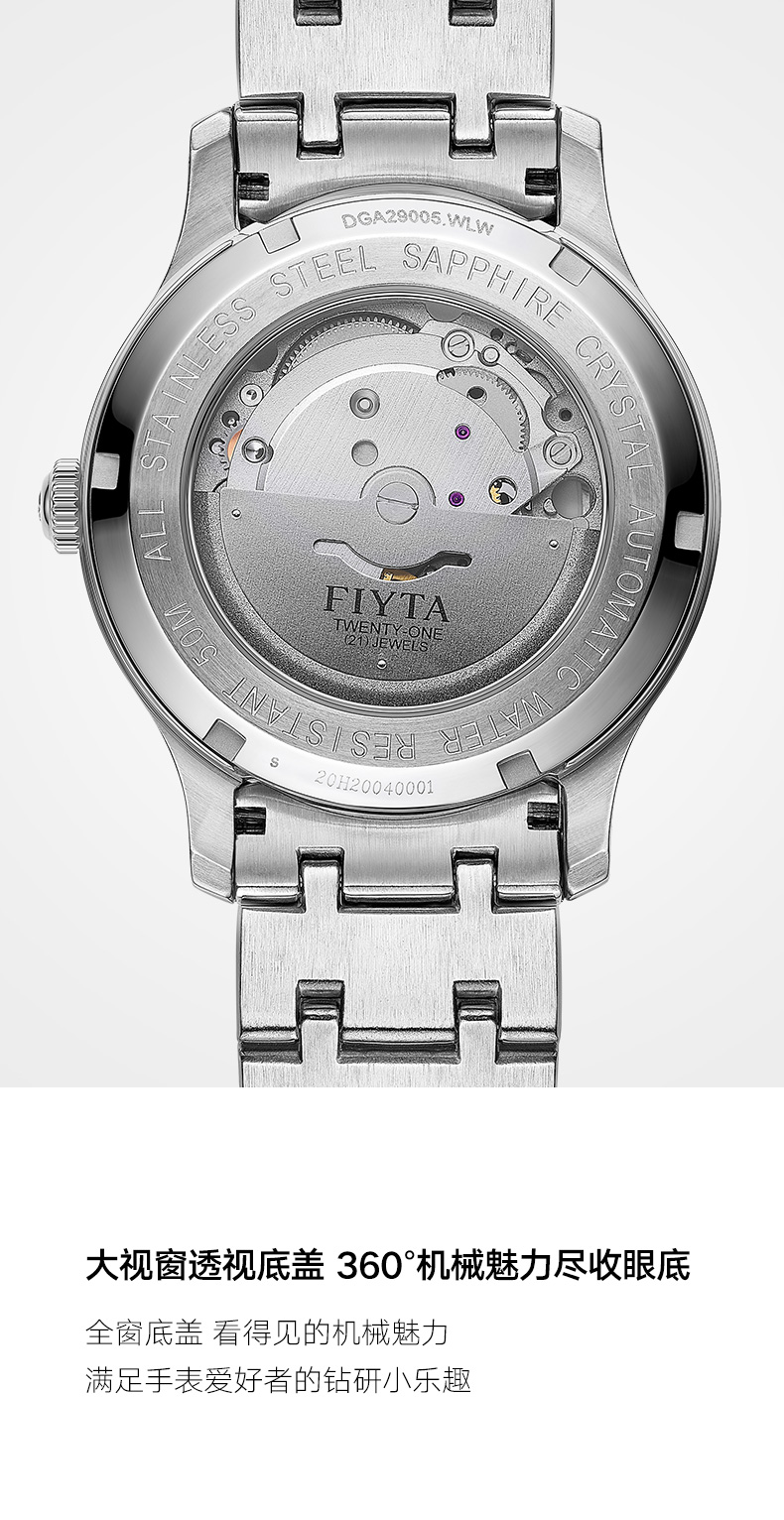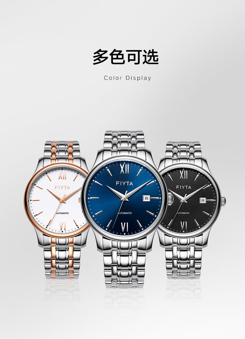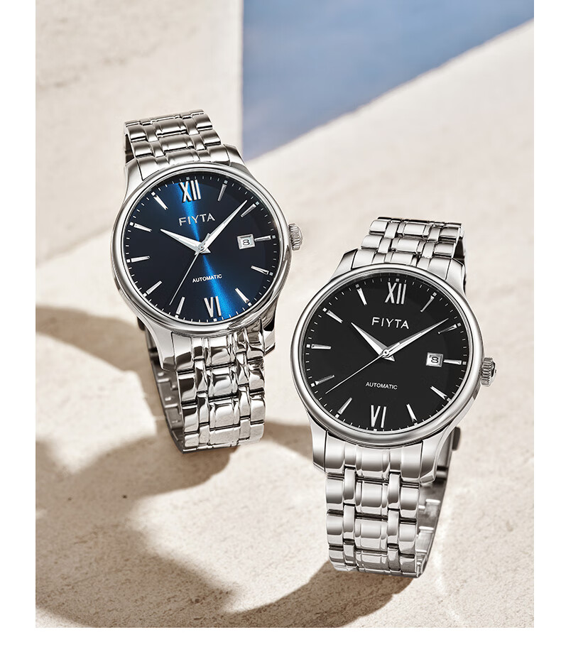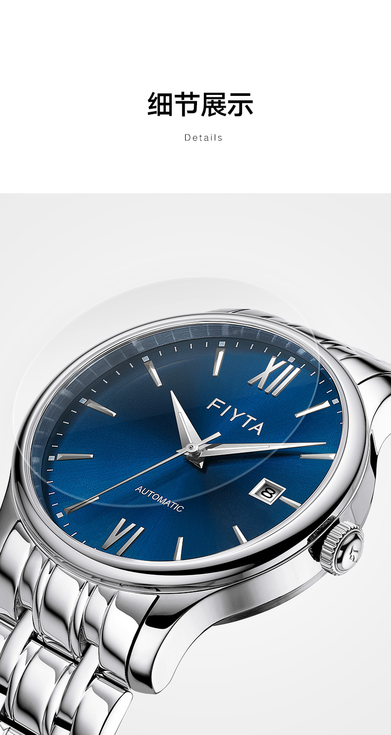 飞亚达(FIYTA)手表男 经典系列带日历蓝盘钢带自动机械男表 节日生日礼物