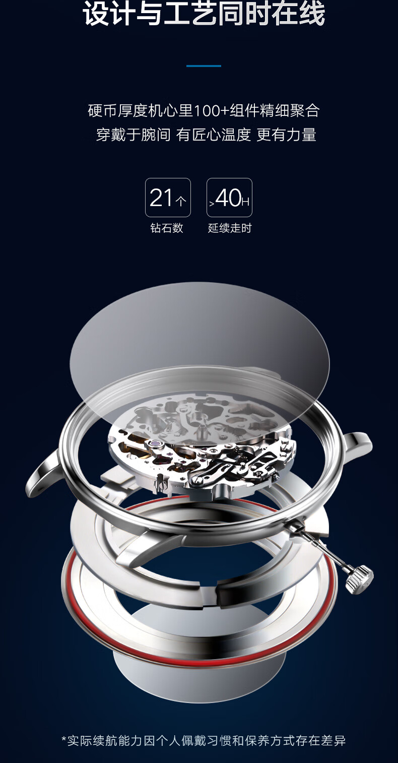 梅花(Titoni)瑞士手表宇宙系列自动机械进口男士腕表蓝盘橡胶表带 40mm