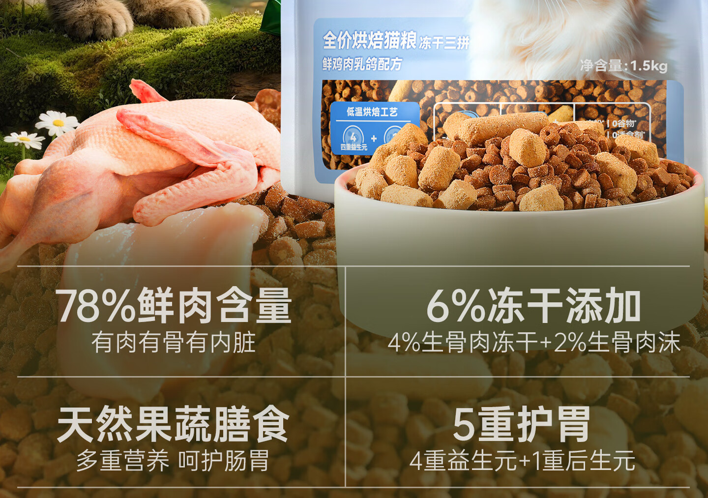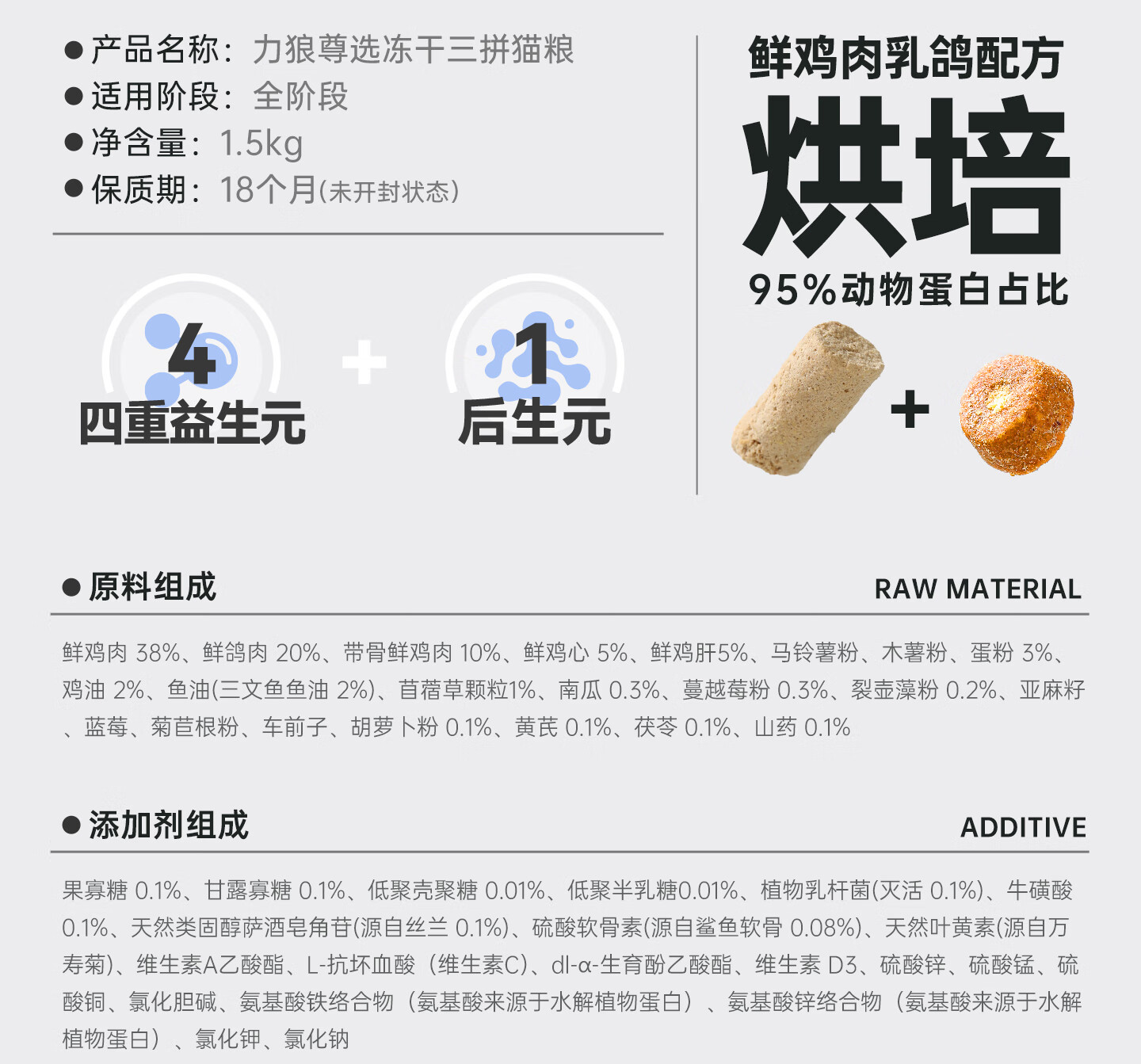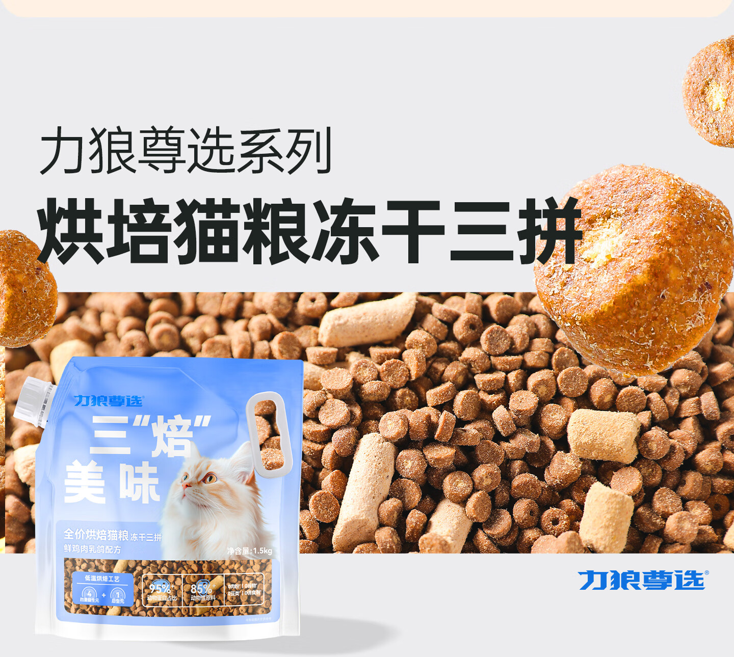 力狼(LILANG)低温烘焙猫粮无谷冻干三拼幼猫成猫全价通用猫粮 鲜鸡肉乳鸽1.5kg