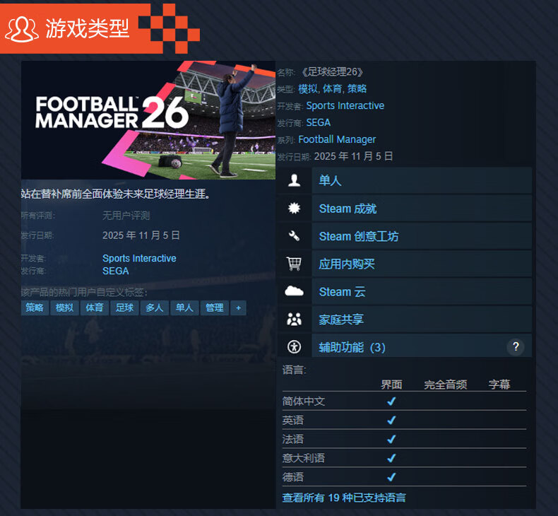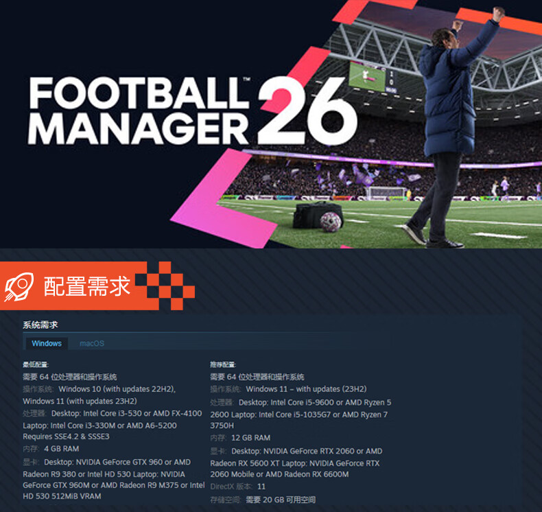 steam 足球经理26 激活码CDKey FM26 Football Manager 26 国区 PC正版游戏/预售 多人足球策略模拟 足球经理26 标准版