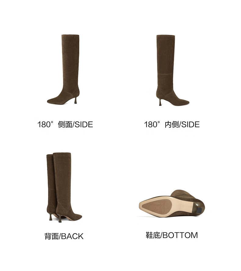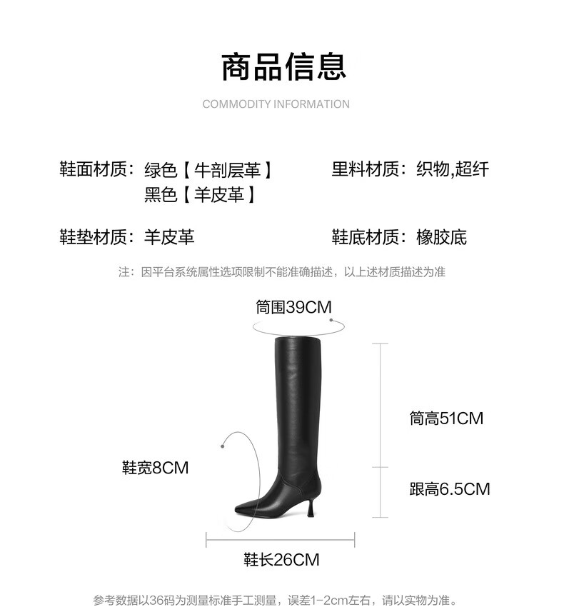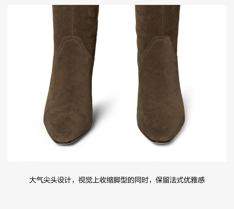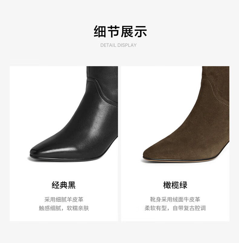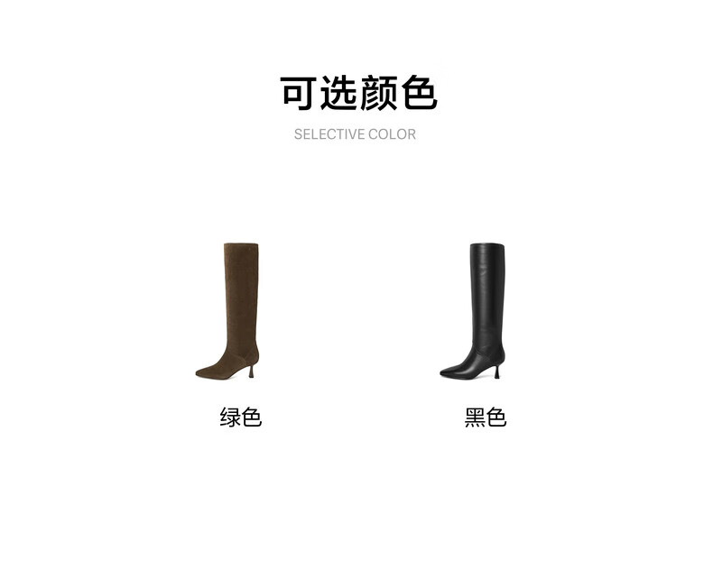 真美诗(Joy&peace)回头率2025冬新款羊皮及膝高跟堆堆靴弹力瘦瘦靴时装长靴女 绿色(瘦脚拍小一码) 34