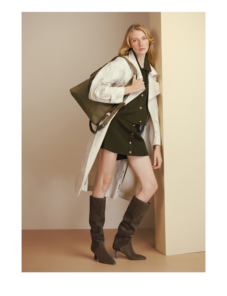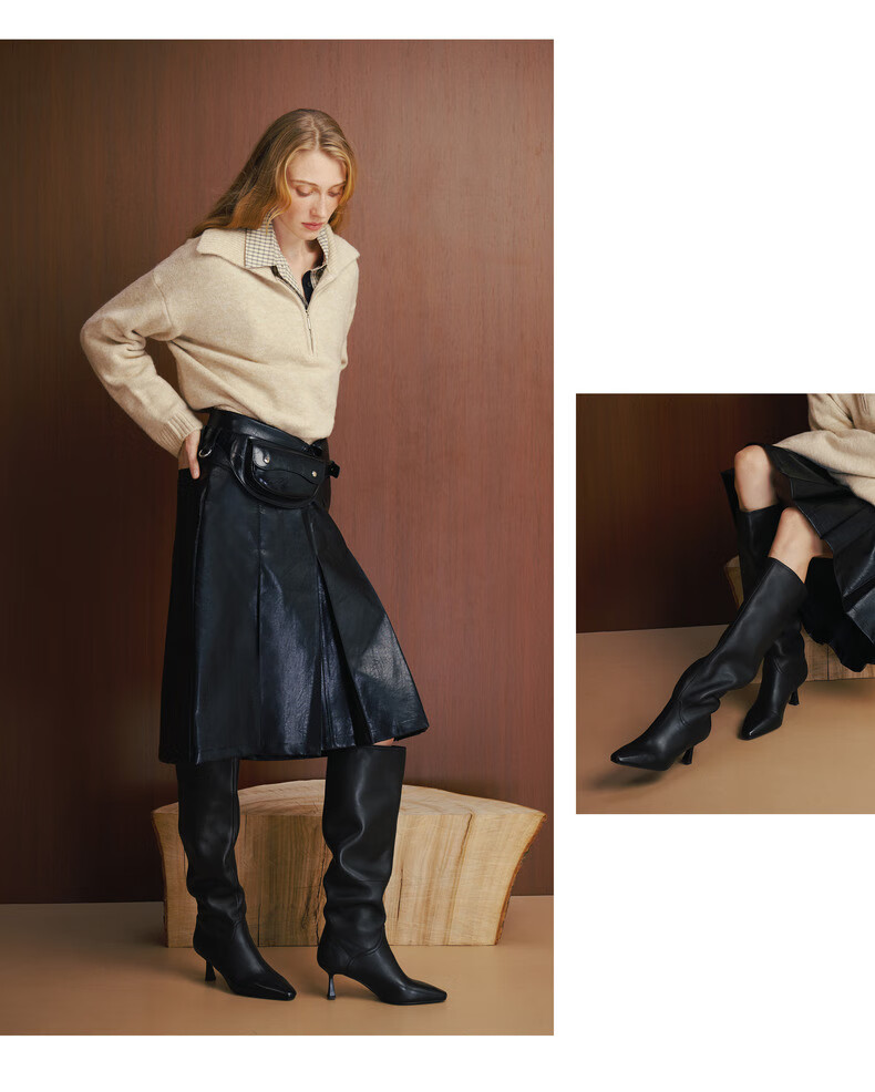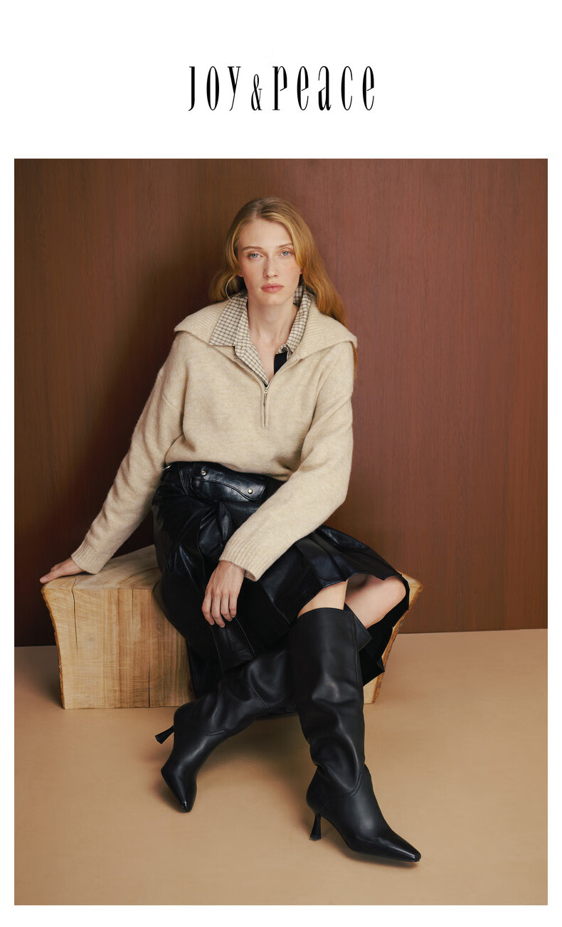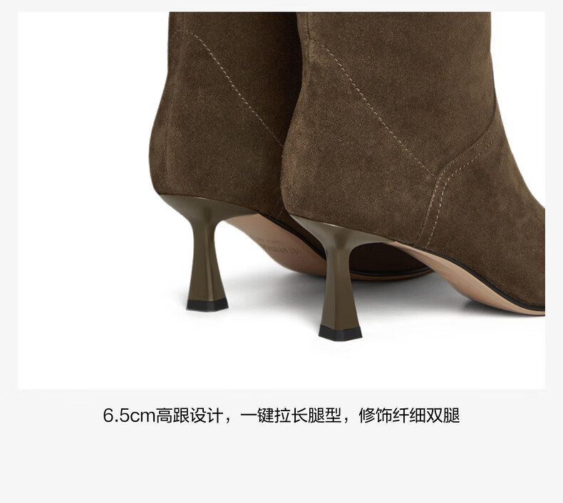 真美诗(Joy&peace)回头率2025冬新款羊皮及膝高跟堆堆靴弹力瘦瘦靴时装长靴女 绿色(瘦脚拍小一码) 34